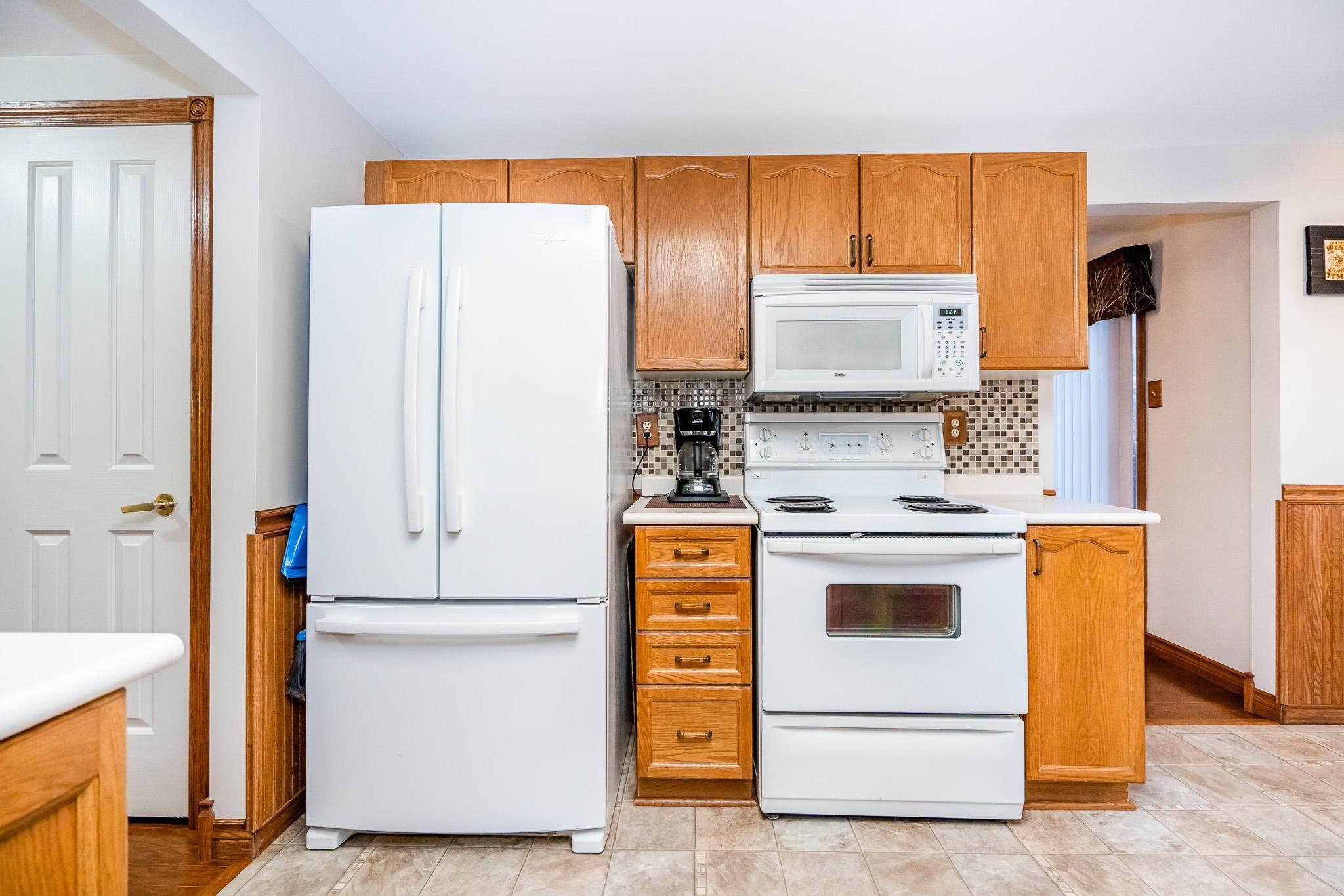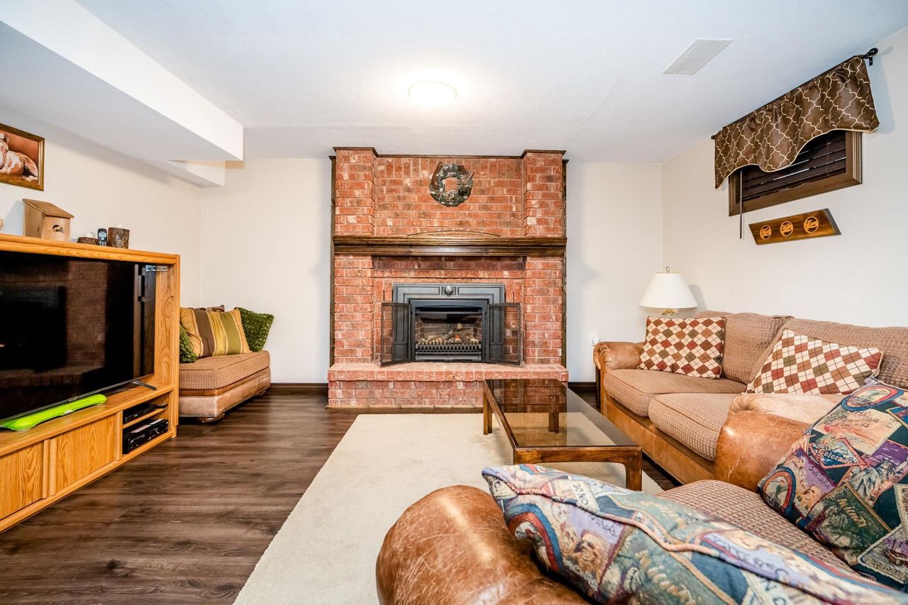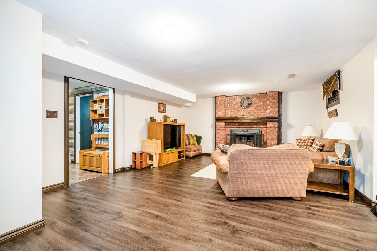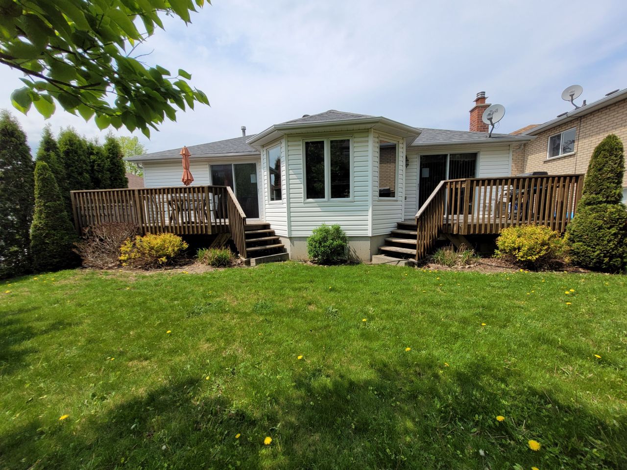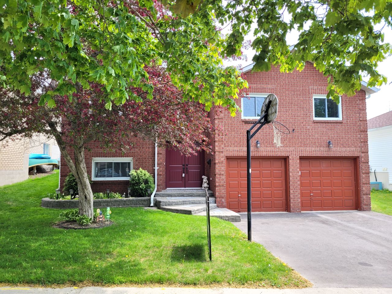 In a great location, sits this raised bungalow that is finished top to bottom with landscaped yard, double car garage and inside entry to the lower level! There are 4 bedrooms, 2 full baths and one half bath, open concept living room/dining room with patio door to back deck, large kitchen, and ideal breakfast nook boasting 3 large windows looking out to the backyard as well as the door to the back deck. Primary bedroom offers a walk-in closet, ensuite and patio door to deck looking into the backyard. Lower level gives you that space you have been longing for! Huge rec room, laundry room /utility room with ample storage and the 4th bedroom which can be converted into your craft or games room. Driveway paved 2022; fireplace 2021; 3 toilets 2020; furnace and A/C 2013 approximately. Utilities approximately: Gas $1,200; Hydro $955; Water/Sewer $750Basketball net is cemented into ground & will remain. East side of backyard - is a flower garden belonging to a neighbour. The seller installed steps towards the tree so that the neighbour can access their flower garden to maintain it.