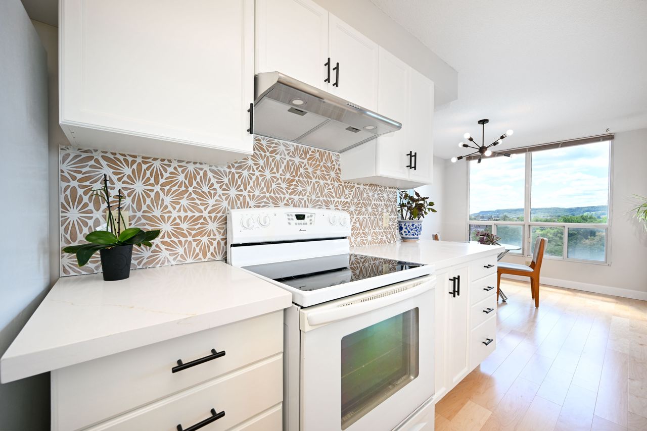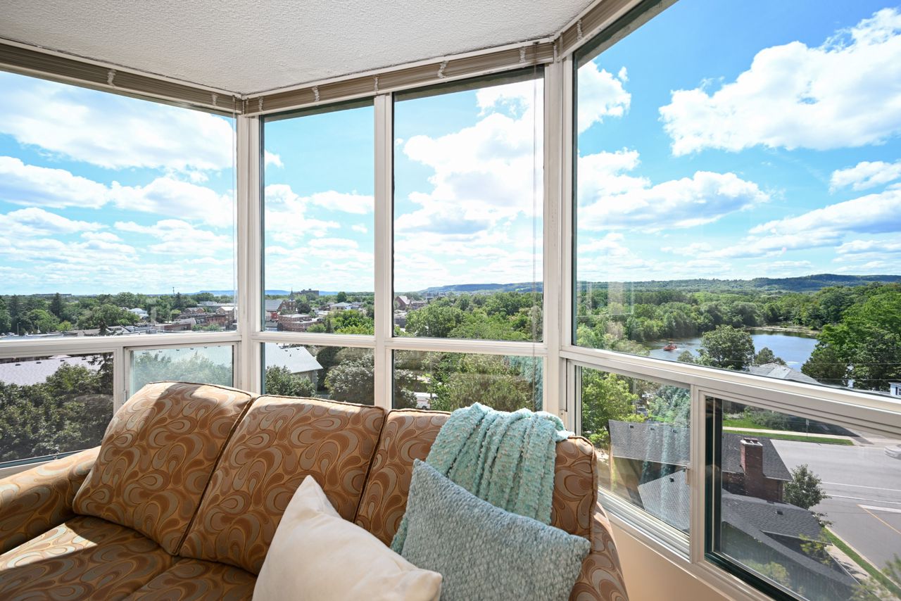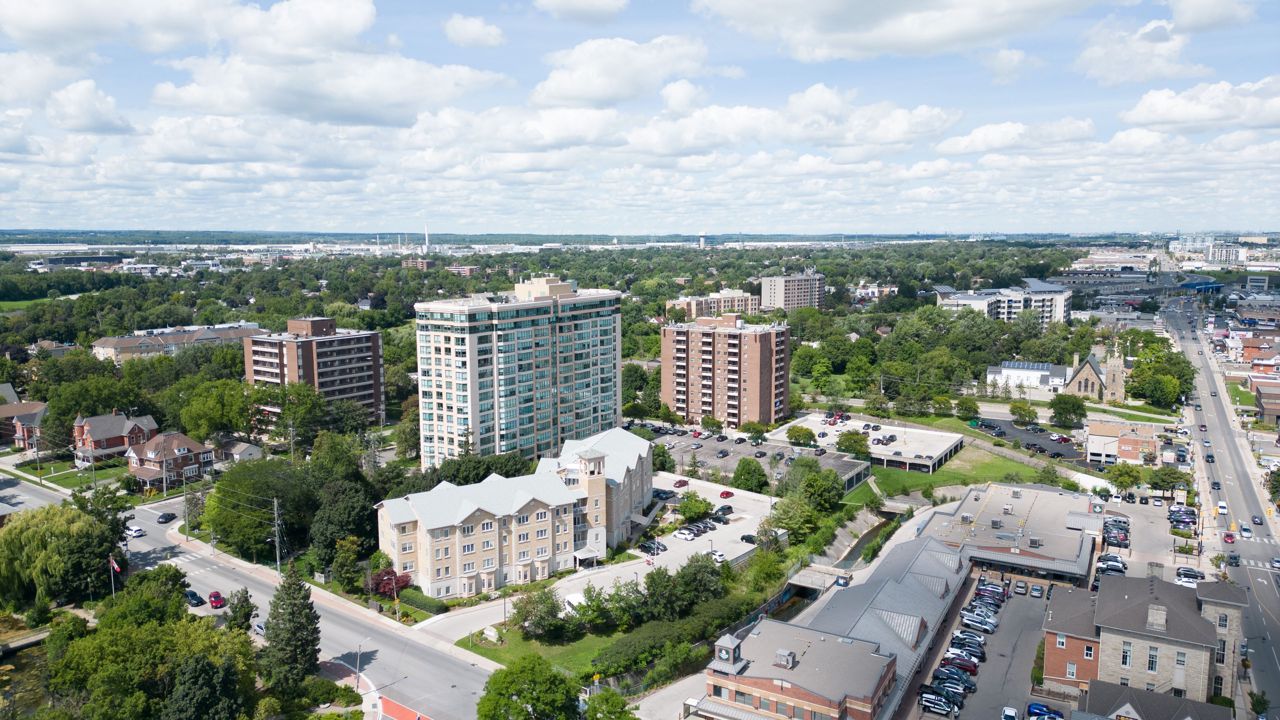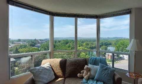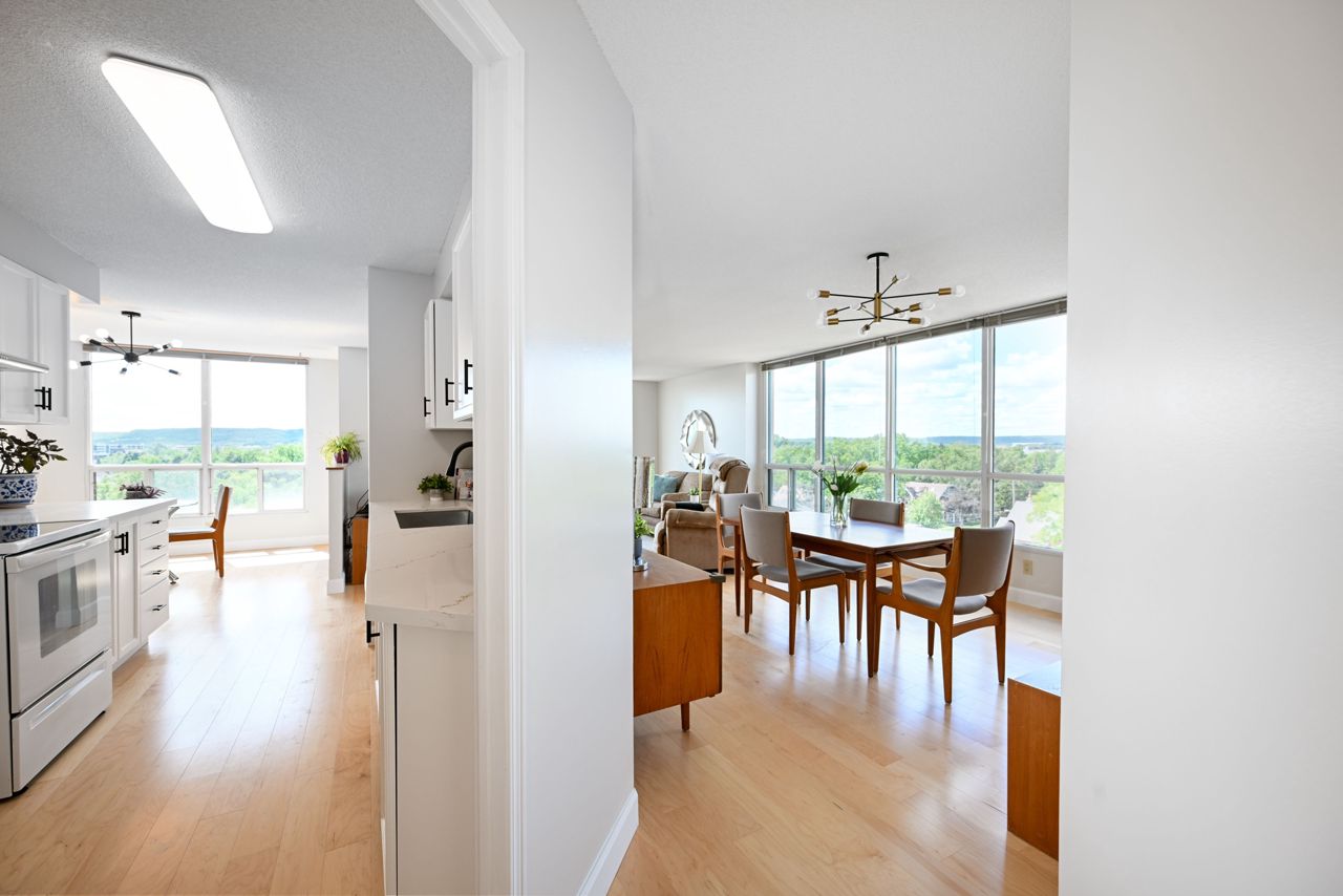 Experience the best of Milton living in this bright and spacious 2-bedroom, 2-bathroom unit. With unobstructed 180-degree views, you'll enjoy breathtaking panoramas of downtown, Niagara Escarpment, and the serene pond. This upgraded gem boasts hardwood floors throughout, complemented by new, sustainable, durable, engineered quartz countertops and tile accents. The living room features large floor-to-ceiling windows all around. The well-appointed kitchen includes a large sink and upgraded quartz countertops. Two large bedrooms with Upgraded main bathroom Italian ceramic tile floor and vanity. The primary bedroom impresses with two double-door closets and an ensuite. Building amenities like a pool, sauna, jacuzzi, and guest suite, coupled with its prime location near downtown, trails, and public transit, make this property a true gem. Don't miss out on this exceptional opportunity for comfortable and luxurious living.Utilities included: Building Maintenance, C.A.M., Cable TV, Central Air Conditioning, Common Elements, Ground Maintenance/Landscaping, Heat, High Speed Internet, Hydro, Parking, Private Garbage Removal, Property Management Fees, Water,