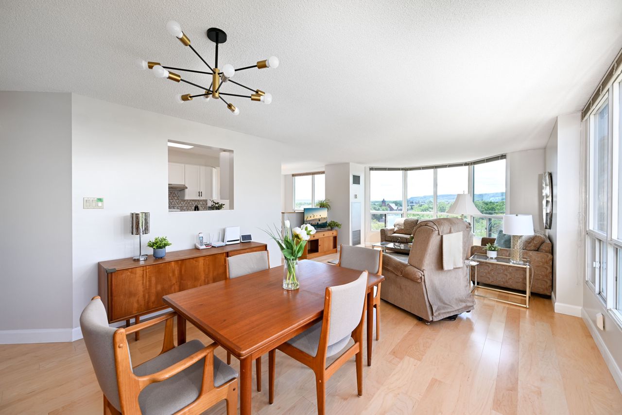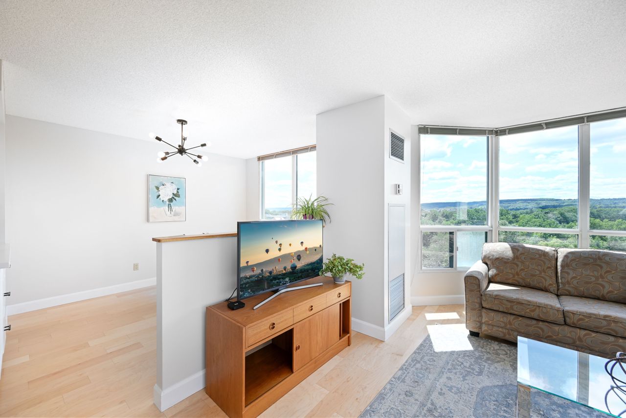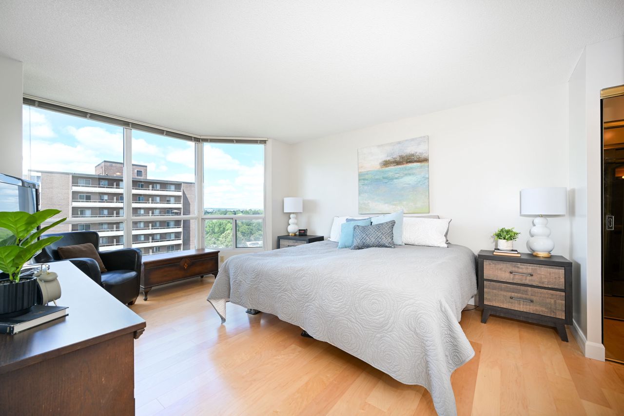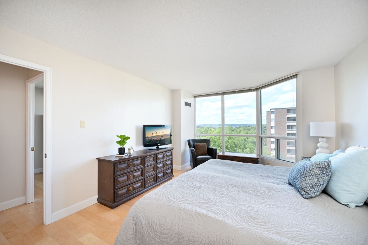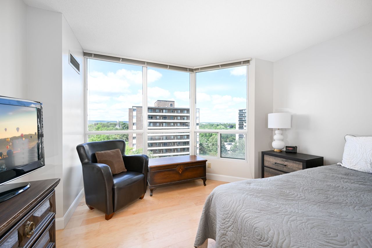 Experience the best of Milton living in this bright and spacious 2-bedroom, 2-bathroom unit. With unobstructed 180-degree views, you'll enjoy breathtaking panoramas of downtown, Niagara Escarpment, and the serene pond. This upgraded gem boasts hardwood floors throughout, complemented by new, sustainable, durable, engineered quartz countertops and tile accents. The living room features large floor-to-ceiling windows all around. The well-appointed kitchen includes a large sink and upgraded quartz countertops. Two large bedrooms with Upgraded main bathroom Italian ceramic tile floor and vanity. The primary bedroom impresses with two double-door closets and an ensuite. Building amenities like a pool, sauna, jacuzzi, and guest suite, coupled with its prime location near downtown, trails, and public transit, make this property a true gem. Don't miss out on this exceptional opportunity for comfortable and luxurious living.Utilities included: Building Maintenance, C.A.M., Cable TV, Central Air Conditioning, Common Elements, Ground Maintenance/Landscaping, Heat, High Speed Internet, Hydro, Parking, Private Garbage Removal, Property Management Fees, Water,