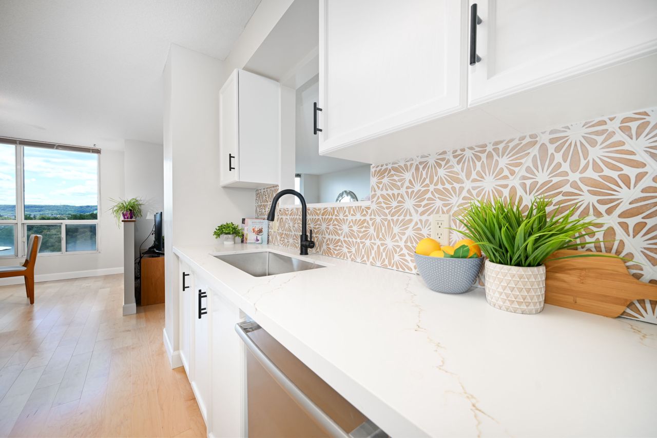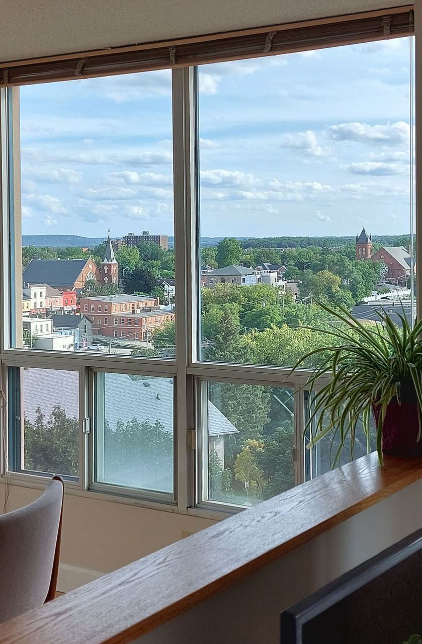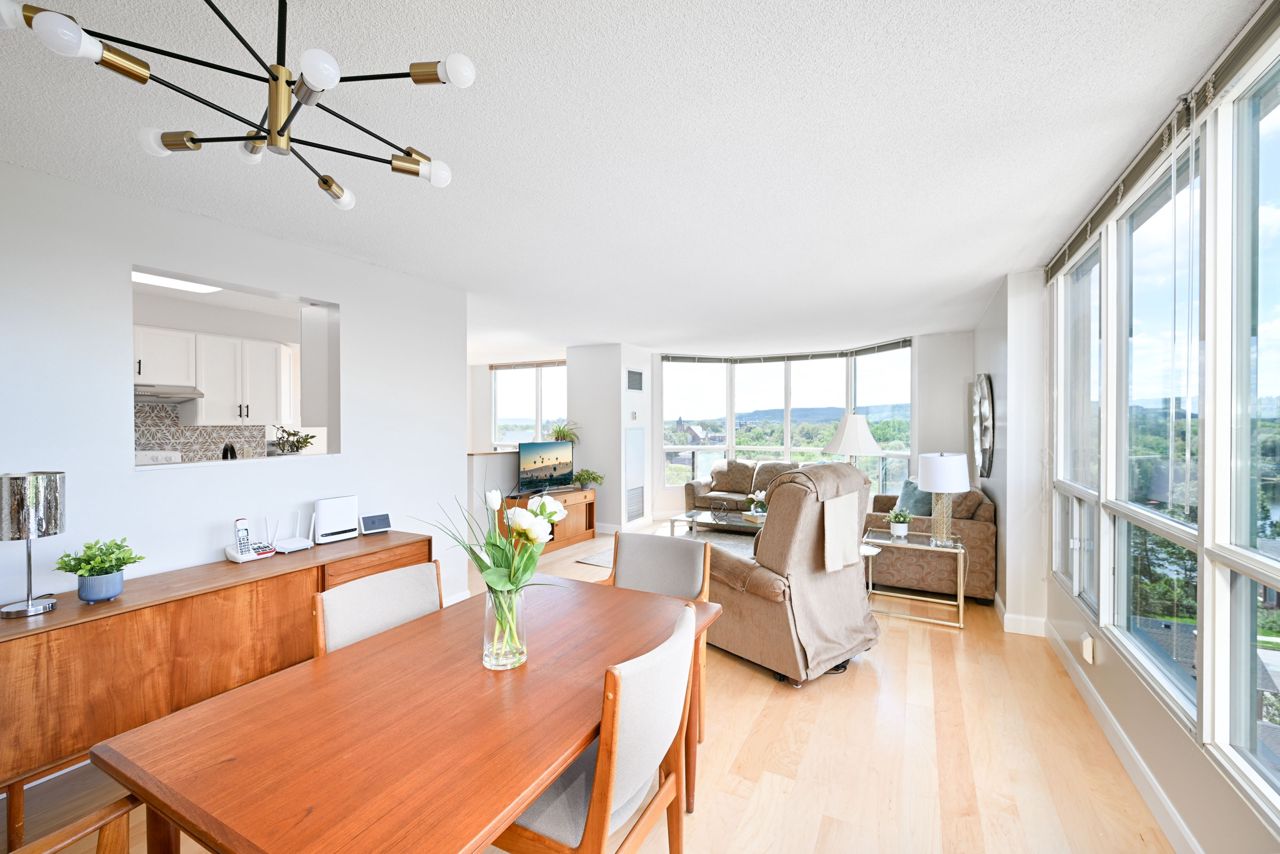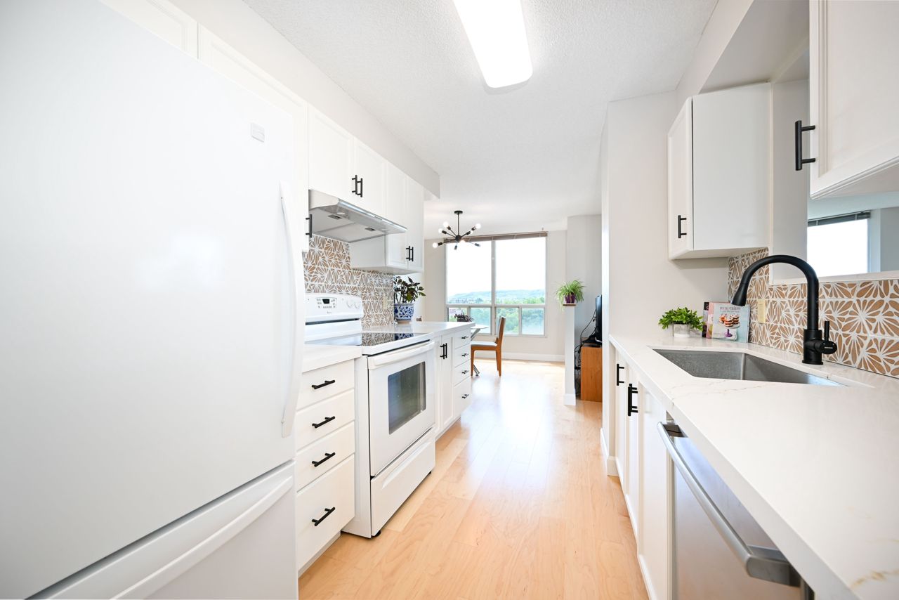 Experience the best of Milton living in this bright and spacious 2-bedroom, 2-bathroom unit. With unobstructed 180-degree views, you'll enjoy breathtaking panoramas of downtown, Niagara Escarpment, and the serene pond. This upgraded gem boasts hardwood floors throughout, complemented by new, sustainable, durable, engineered quartz countertops and tile accents. The living room features large floor-to-ceiling windows all around. The well-appointed kitchen includes a large sink and upgraded quartz countertops. Two large bedrooms with Upgraded main bathroom Italian ceramic tile floor and vanity. The primary bedroom impresses with two double-door closets and an ensuite. Building amenities like a pool, sauna, jacuzzi, and guest suite, coupled with its prime location near downtown, trails, and public transit, make this property a true gem. Don't miss out on this exceptional opportunity for comfortable and luxurious living.Utilities included: Building Maintenance, C.A.M., Cable TV, Central Air Conditioning, Common Elements, Ground Maintenance/Landscaping, Heat, High Speed Internet, Hydro, Parking, Private Garbage Removal, Property Management Fees, Water,