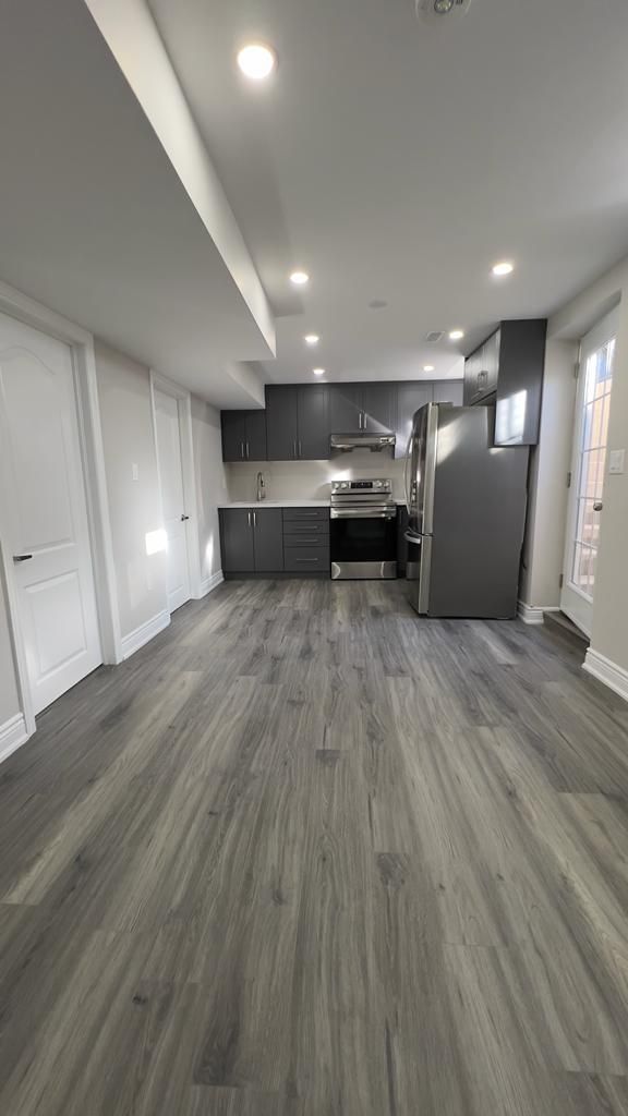 Bright & Spacious Brand New One Bed Plus Den Legal Basement, Separate Entrance, Large Windows, Ensuite Laundry, Washroom, Potlights. Great Location, Transit At The Door, Schools Nearby, Shopping, Groceries And Great Restaurants Just Minutes Drive Away! Tenant Pays 25% Utilities (Hydro, Heating & Cooling And Water). Move In Ready! Located In Central Milton Area Accessible By Public Transportation. Suitable For A Small Family Or Working Proffesional, Available Immediately. New Comers Welcome!Fridge, Stove, Washer And Dryer, Central Heating, Separate Entrance.