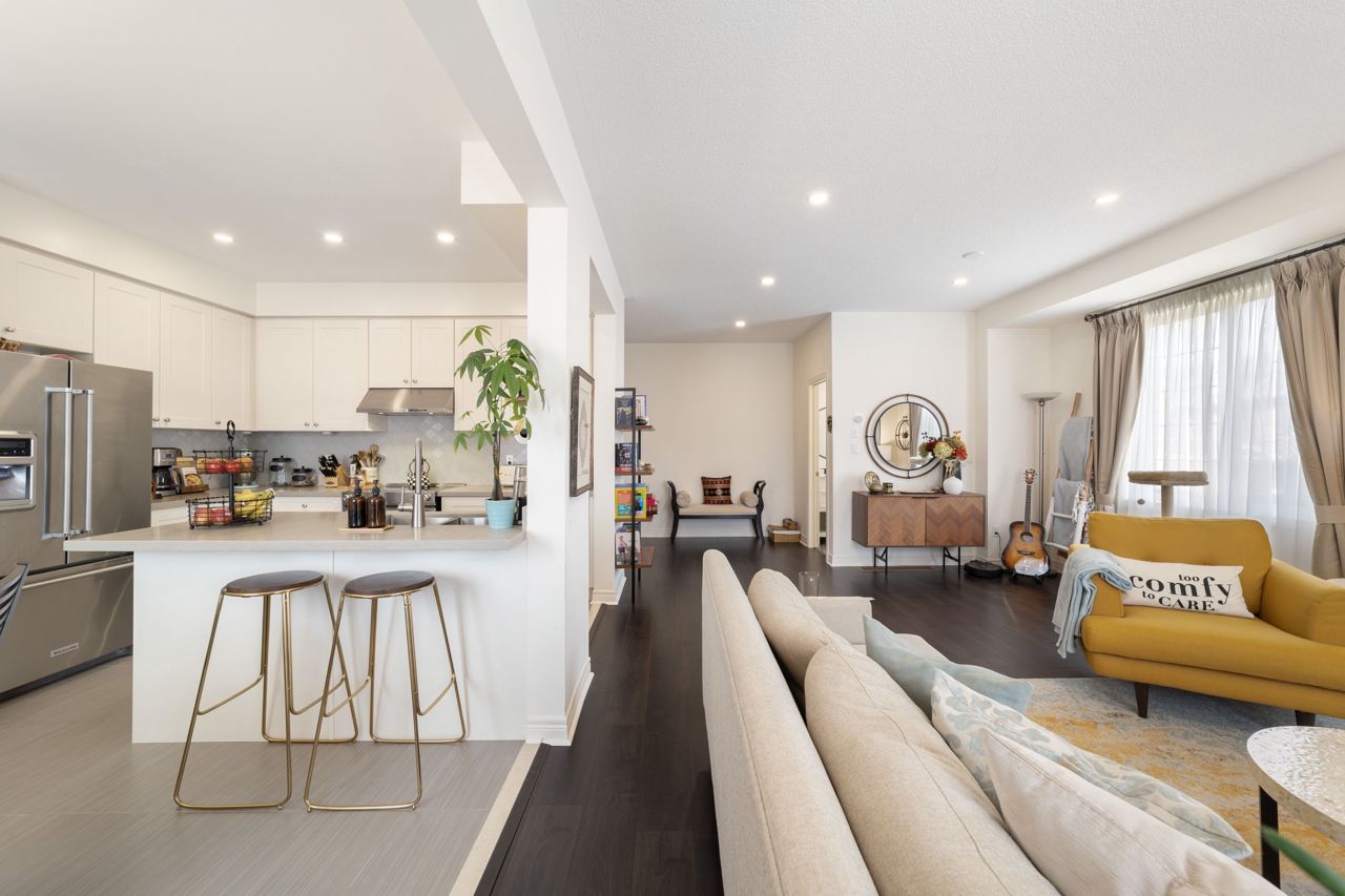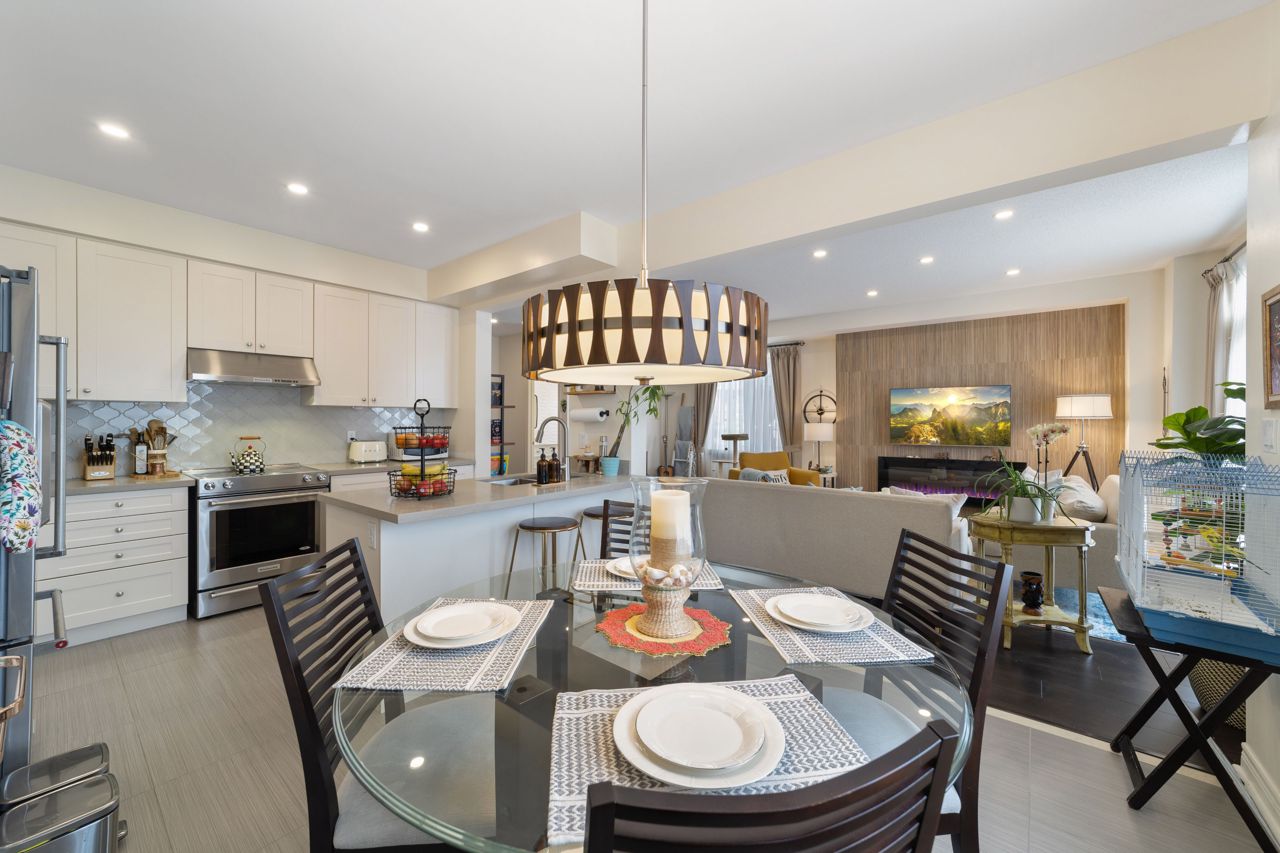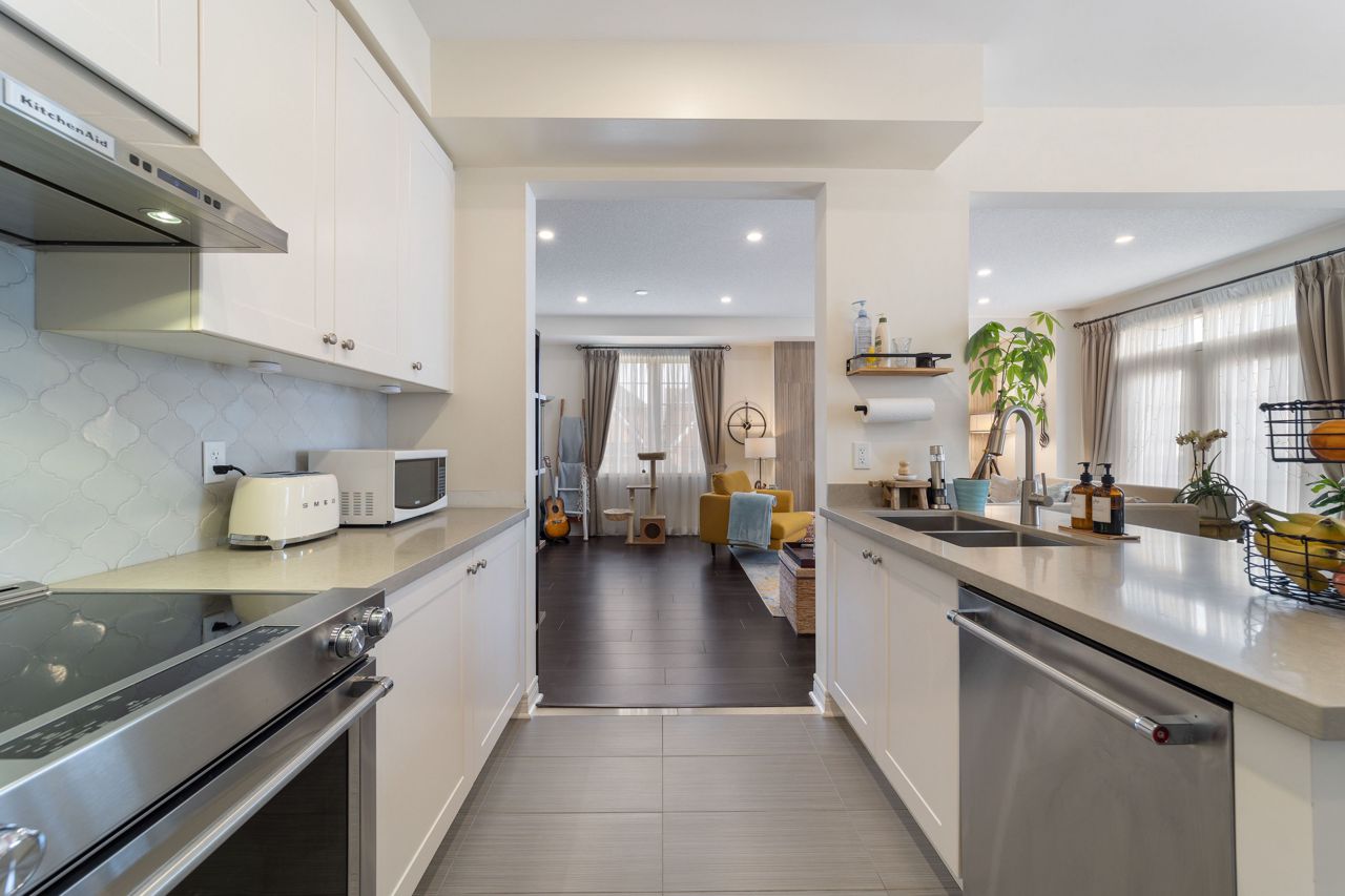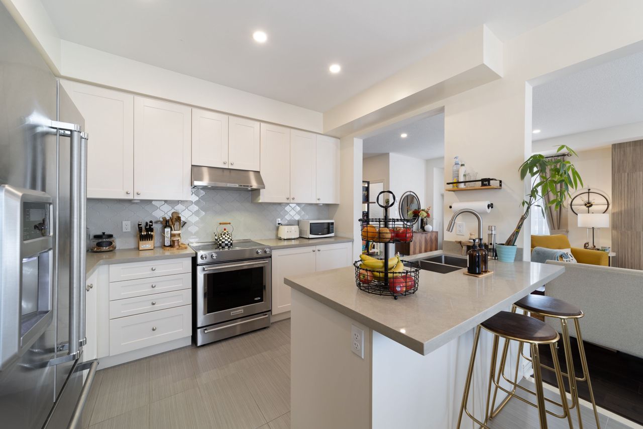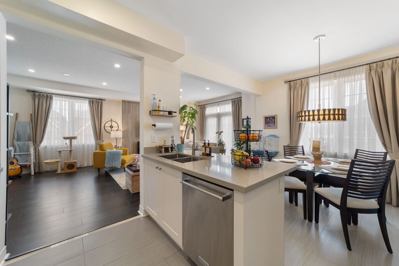 Welcome to this stunning 1,895 sqft. three-storey, three-bedroom, 2.5 bathroom townhouse, boasting modern and elegant desing, located in a desirable neighborhood of Milton. As you enter the home, you'll be immedietly impressed by a cozy living space with ample lighting and airy atmosphere. The spacious and functional layout makes entertaining a breeze, with the living, dining, and kitchen areas all conveniently located on the main floor. The modern kitchen features beautiful quartz countertops, stainless steel appliances and ample cabinet space. Upstais, you'll find three generously sized bedrooms, including a luxurious master suite with a private ensuite bathroom and a large closet. The two additional bedrooms share a full bathroomn, perfect for children, quests, or a hoem office. One of the standouts features of this home is the massive patio on the second floor, offering ampole space for outdoor living and entertaining.Features include a 9 ft ceiling, very large patio perfect for entertaining guests, new pot lights, new quarts countertops, engineered hardwood floors, upgraded stairs, fully renovated powder room! Don't miss viewing this gorgeous property!