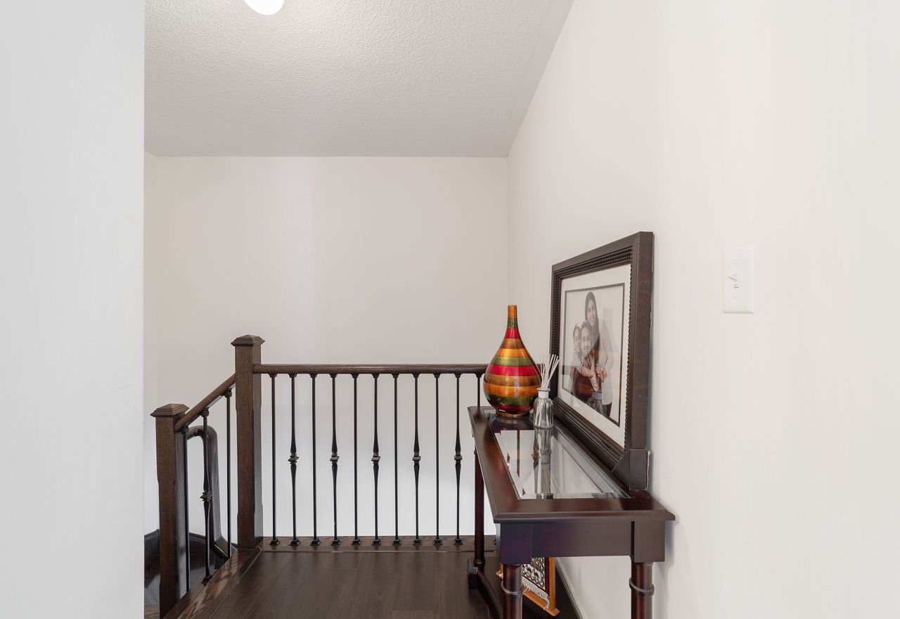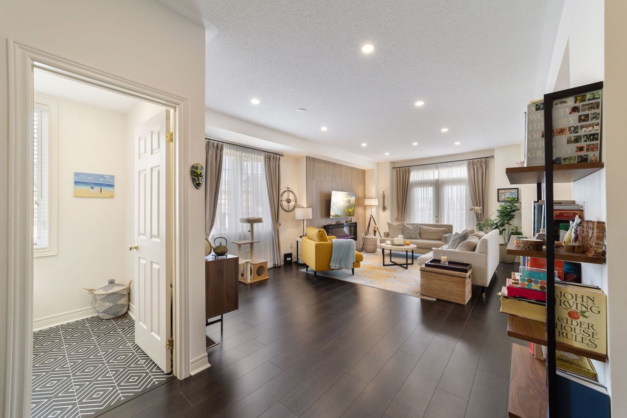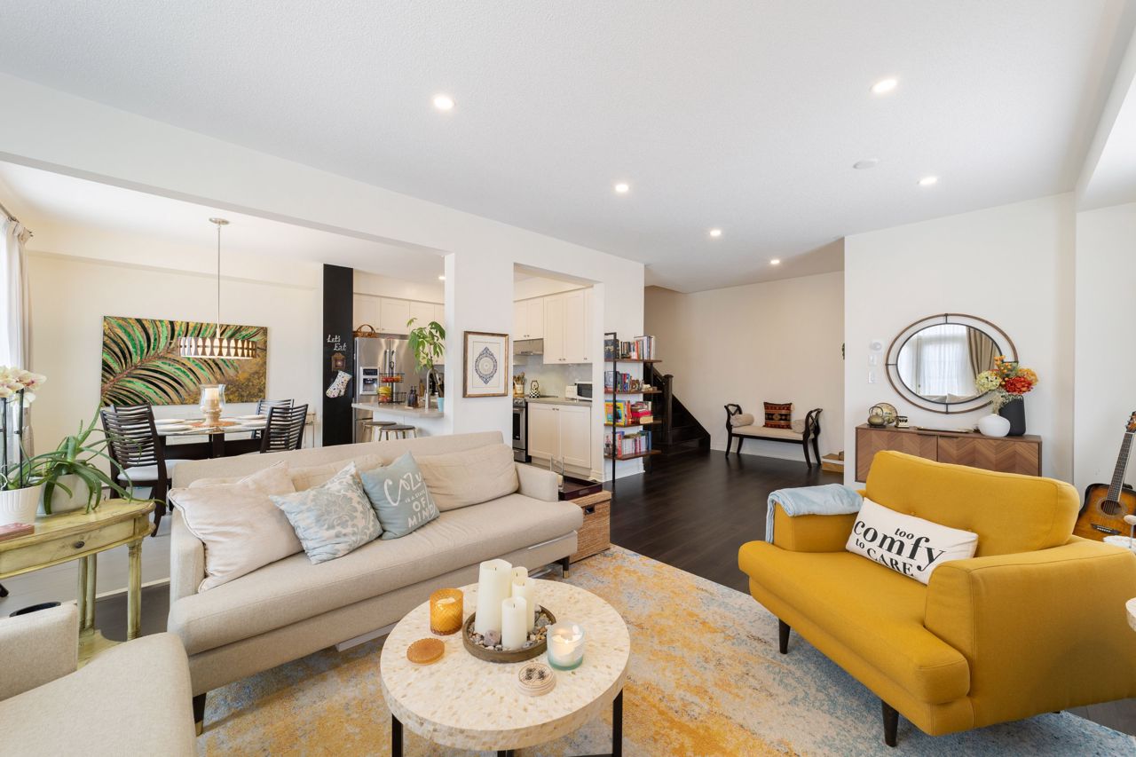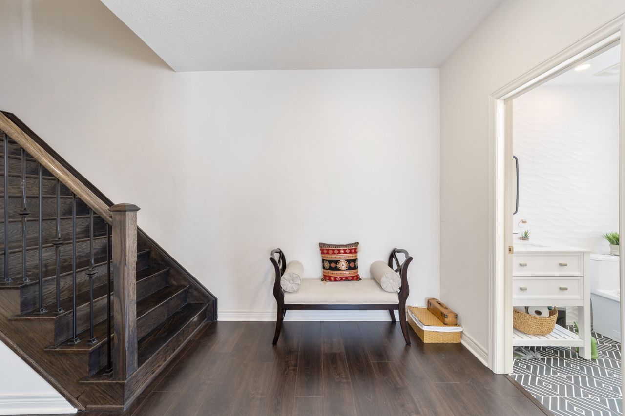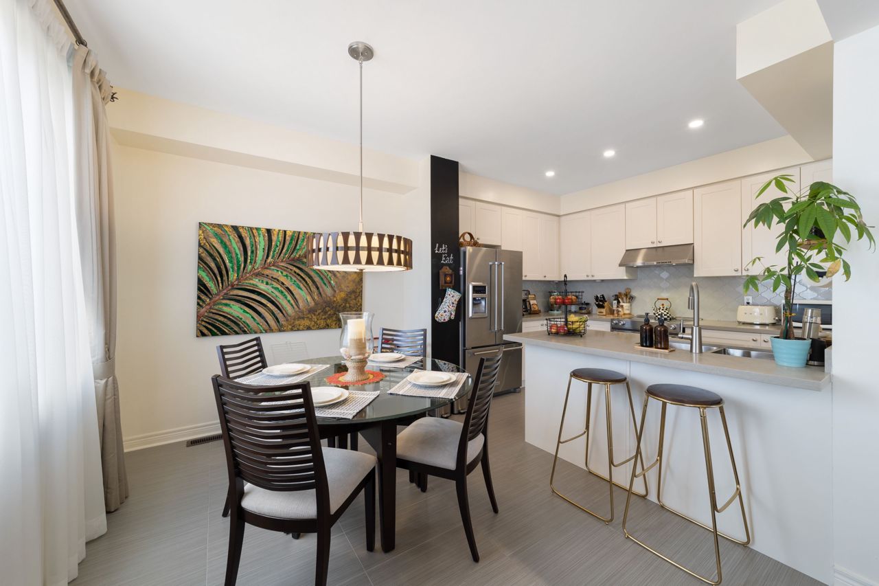 Welcome to this stunning 1,895 sqft. three-storey, three-bedroom, 2.5 bathroom townhouse, boasting modern and elegant desing, located in a desirable neighborhood of Milton. As you enter the home, you'll be immedietly impressed by a cozy living space with ample lighting and airy atmosphere. The spacious and functional layout makes entertaining a breeze, with the living, dining, and kitchen areas all conveniently located on the main floor. The modern kitchen features beautiful quartz countertops, stainless steel appliances and ample cabinet space. Upstais, you'll find three generously sized bedrooms, including a luxurious master suite with a private ensuite bathroom and a large closet. The two additional bedrooms share a full bathroomn, perfect for children, quests, or a hoem office. One of the standouts features of this home is the massive patio on the second floor, offering ampole space for outdoor living and entertaining.Features include a 9 ft ceiling, very large patio perfect for entertaining guests, new pot lights, new quarts countertops, engineered hardwood floors, upgraded stairs, fully renovated powder room! Don't miss viewing this gorgeous property!