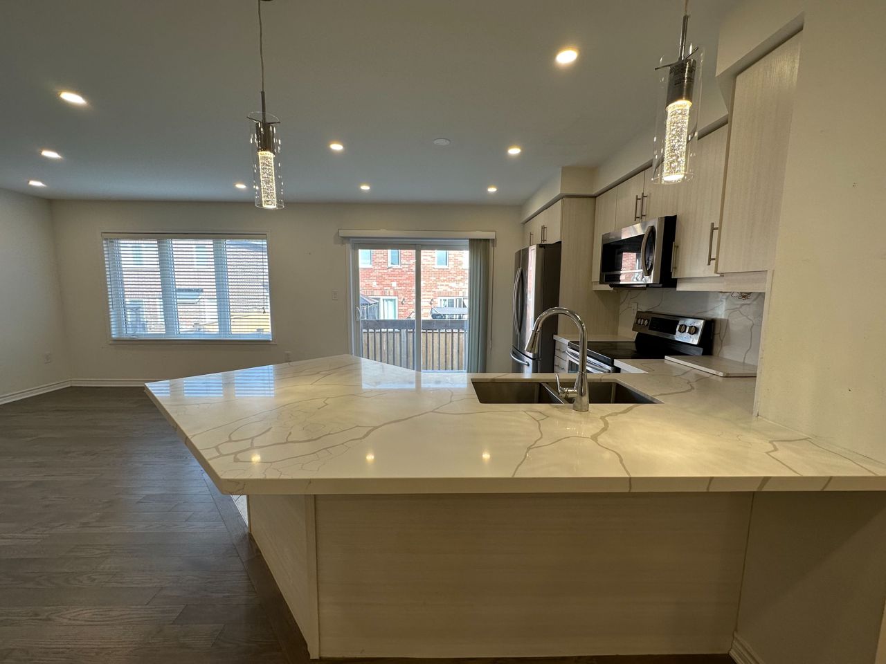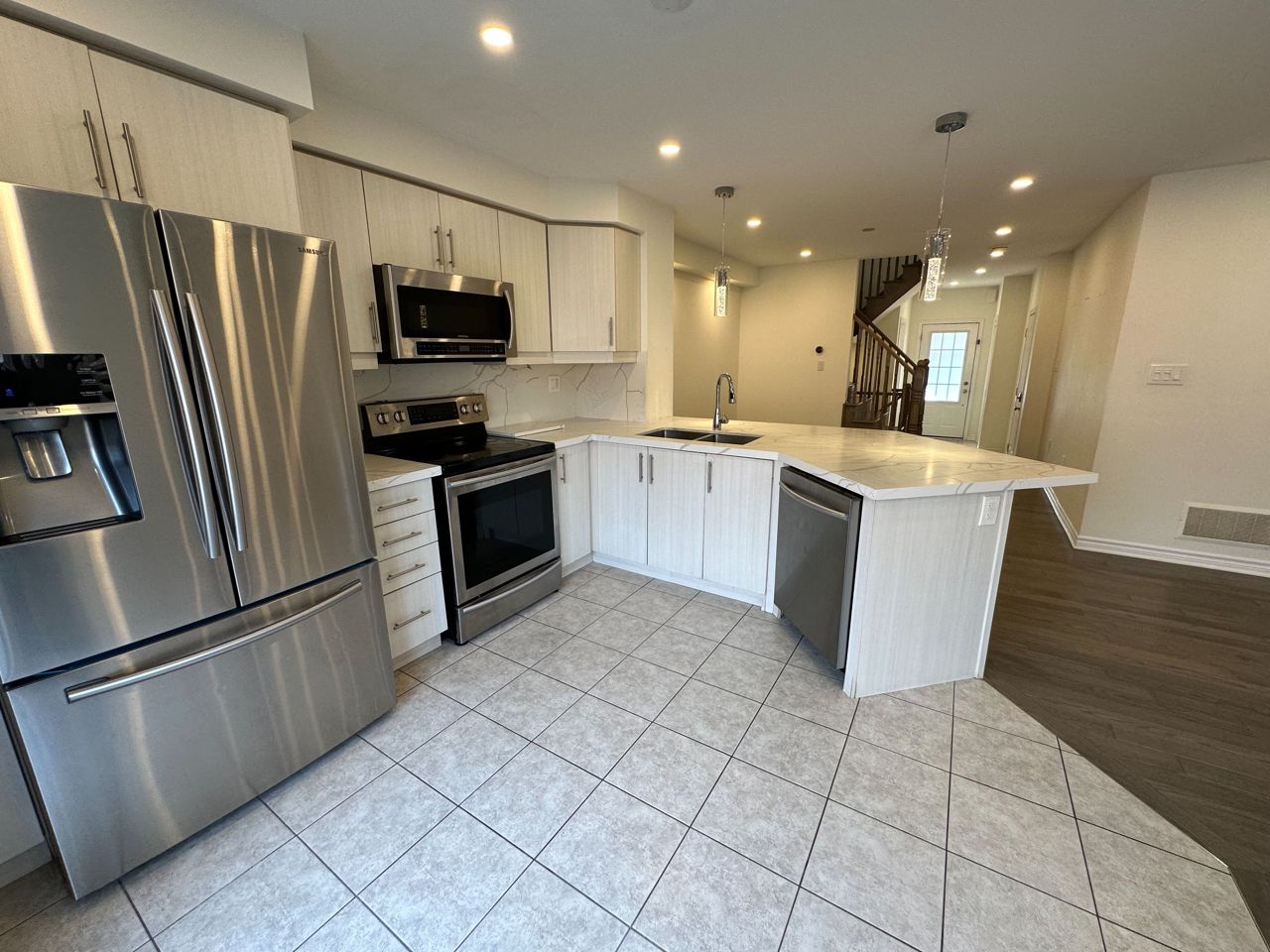 This stunning unit features main floor with Great Room, Dinning Room, plasma wall, powder room. Tons Of natural lighting, modern Eat-In Kitchen with custom quartz counter top, backsplash, stainless Steel appliances.Back yard and look out basement (unfinished) which has big window for natural light. Upstairs you iill find The Primary Bedroom with ensuite bathroom and walk-in closet.second and third bedroom with closets, linen closets, main bathroom and laundry room. one garage parking and one driveway parking, very nice view of escarpment.car garage opener.