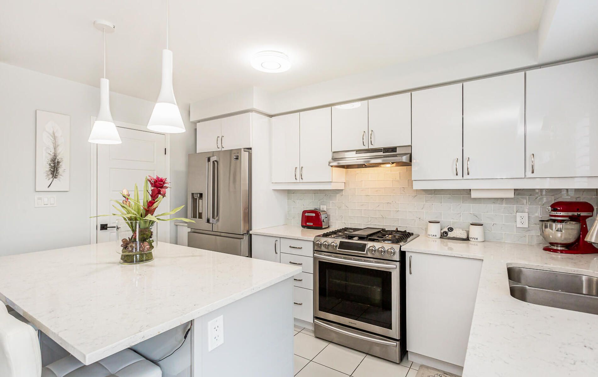 Great opportunity to own a rare find of contemporary townhouse of over 2000 sq ft of above ground living. Freshly painted unit Offers 4 bedrooms and double car garage. Second master bedroom conveniently located on ground floor, suitable for in-laws suite or elderly. Residing in very sought after neighbourhood, with steps to schools, Parks, community shopping enter, trails, etc. Modern upgrades throughout with granite counters, light fixtures, pot lights, upgraded bathrooms, etc.Stainless Steel Fridge, Stainless Steel Gas Stove, Stainless Steel Range Hood, Stainless Steel Dishwasher, Washer & Dryer, All Electrical Light Fixtures, All Window Coverings.