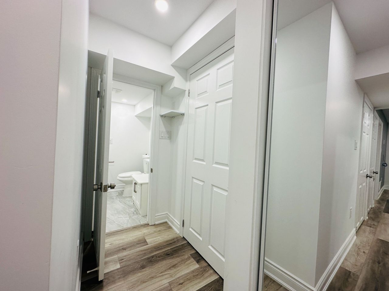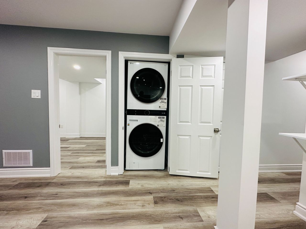 Brand new, never lived in 2 Bedroom Legal Basement with 2 washrooms and one surface parking, completely separate entrance from the side to the basement entrance, fully upgraded kitchen with stainless steel appliances and separate laundry, spacious bright and open concept, lots of natural light, bigger windows, lots of pot lights, walking distance to public transit, grocery stores.Brand new stainless steel fridge, stove, washer/dryer, tenants to obtain tenants insurance and pay 40% of all utilities.