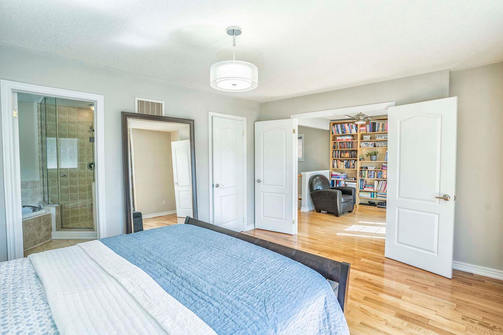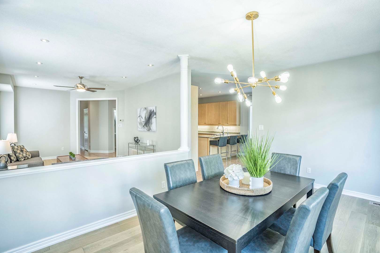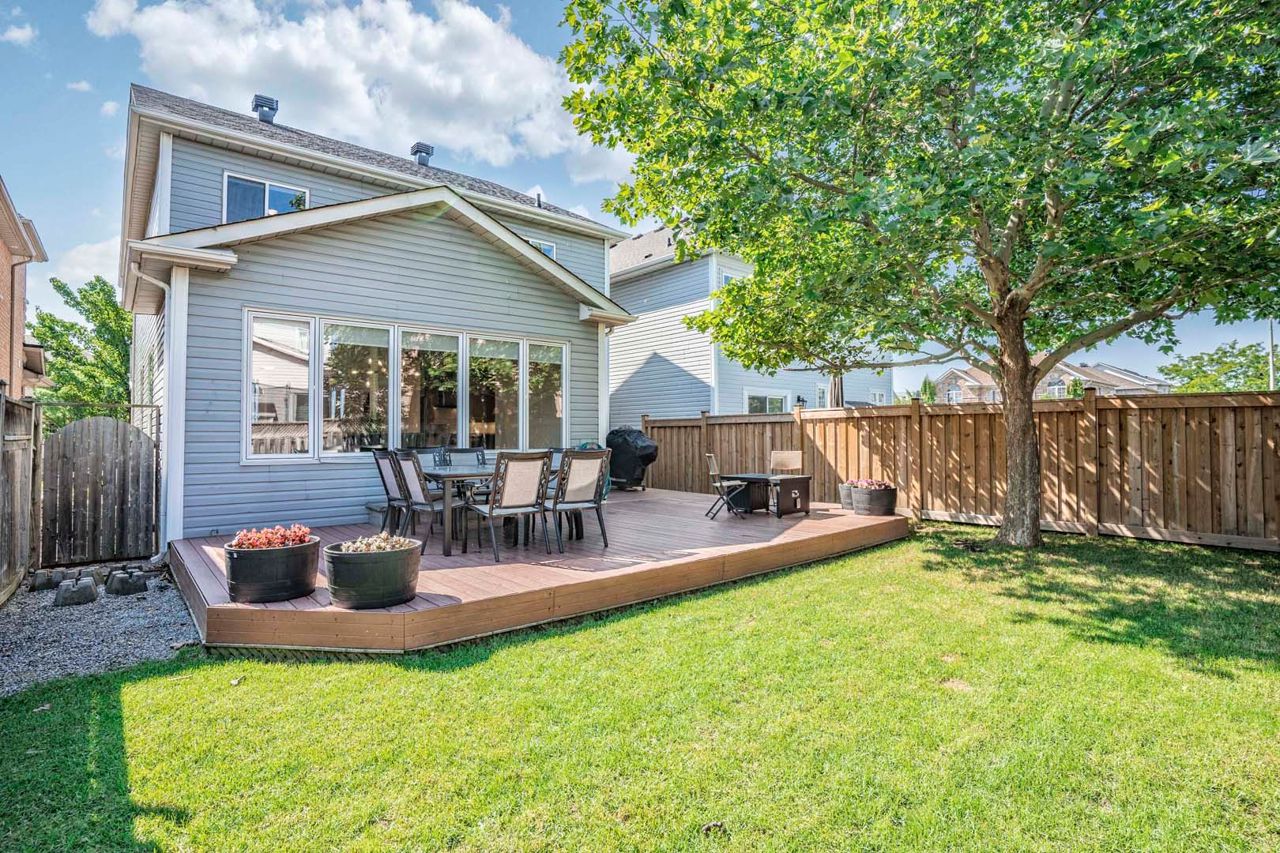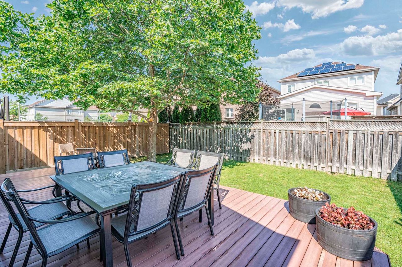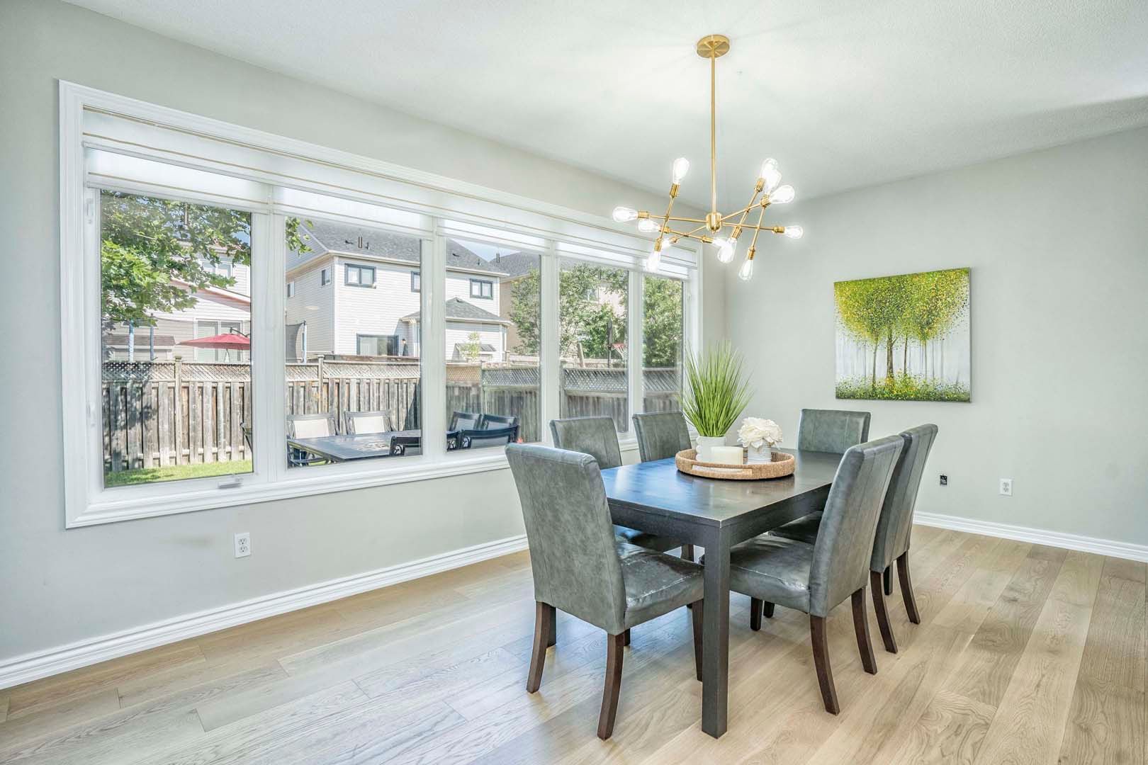 This spacious 4+1 bedroom, 4 bathroom home features 9' ceilings on the main floor and brand new hardwood flooring. Located in the desirable Dempsey area of Milton with top notch schools & easy access to major highways, restaurants, entertainment, GO station and much more. The sun-filled main level boasts wall-to-wall windows in the dining area, entrance to 2 car garage from the foyer and the entire home as been recently painted. Primary bedroom features 4pc. ensuite with 6 jet whirlpool soaker tub and large w/I closet, off the bedroom is a lovely sitting area with b/I book shelf. Enjoy fireworks during the holidays from the huge balcony on the second floor. Wet bar/kitchen in basement with 3pc bath, b/I book shelf and b/I surround sound wiring. Mature gardens/trees. Everything you need in a family home. INCLUDED: 3 ceiling storage racks in garage, Mirage retractable screen doors front and balcony, mirror in hallway and 8 person patio set. This property will not disappoint.Gas BBQ hookup, composite deck, furnace 2019, roof 2018, A/C 2020. 3494 sq.ft of total living space