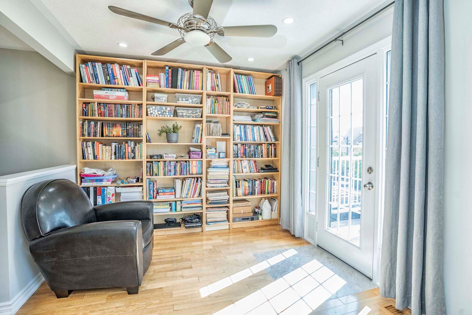 B/I Bookcase Hardwood Floor W/O To Balcony