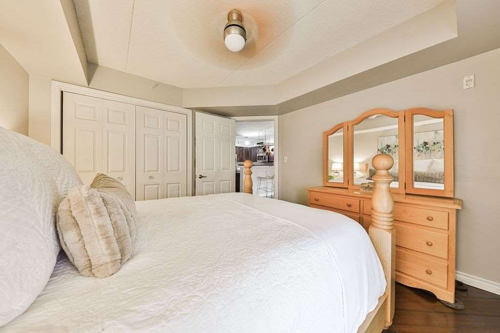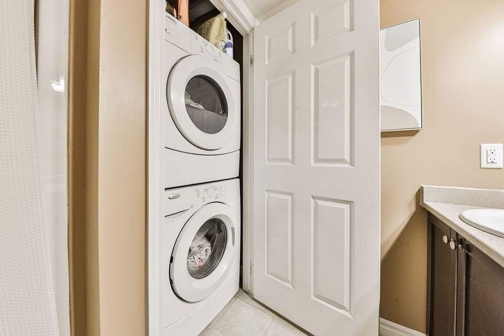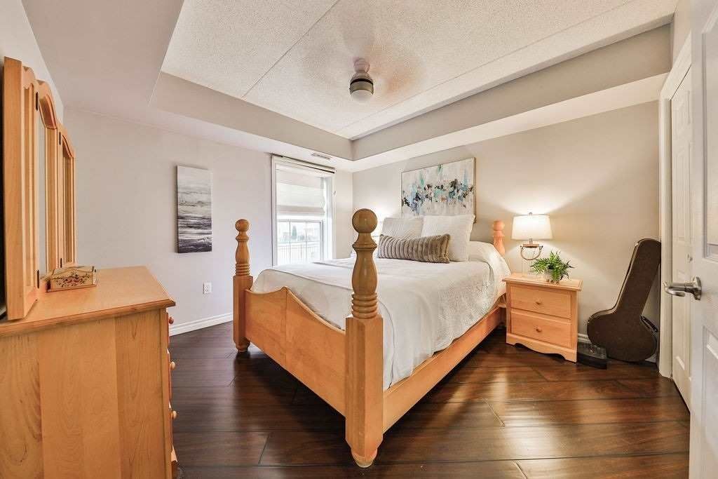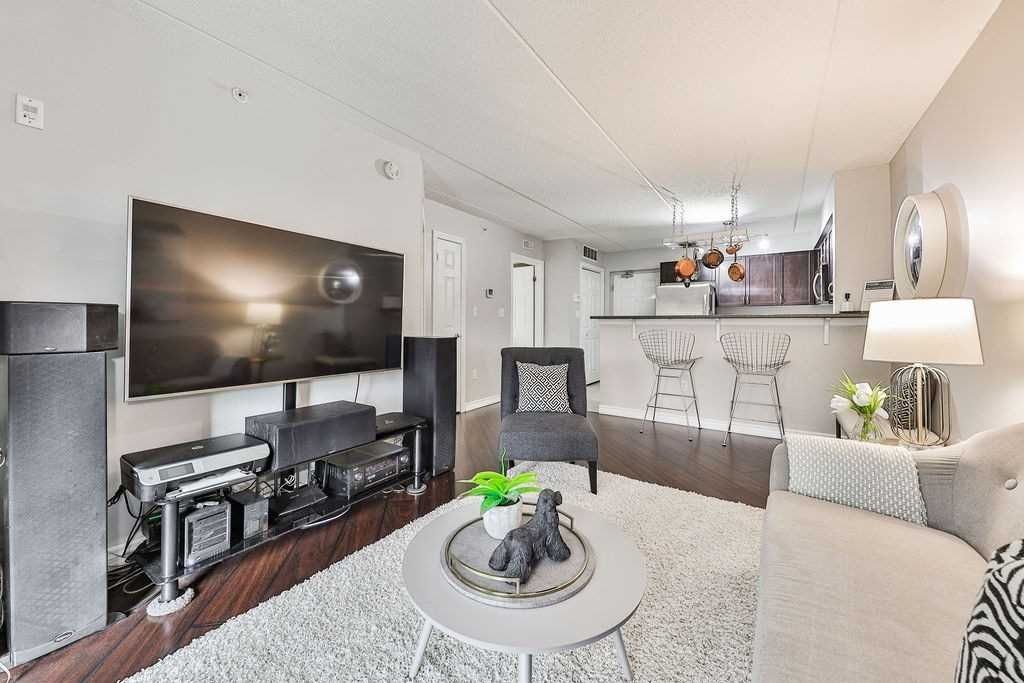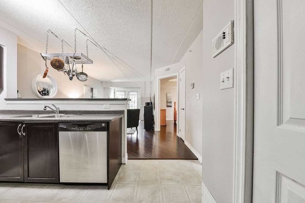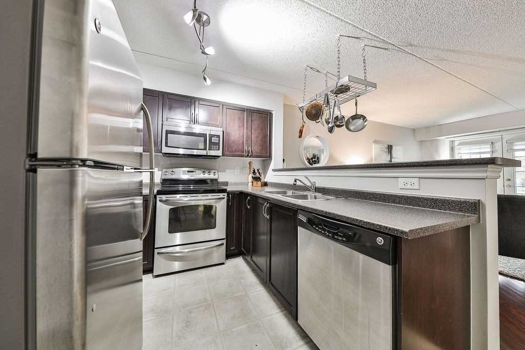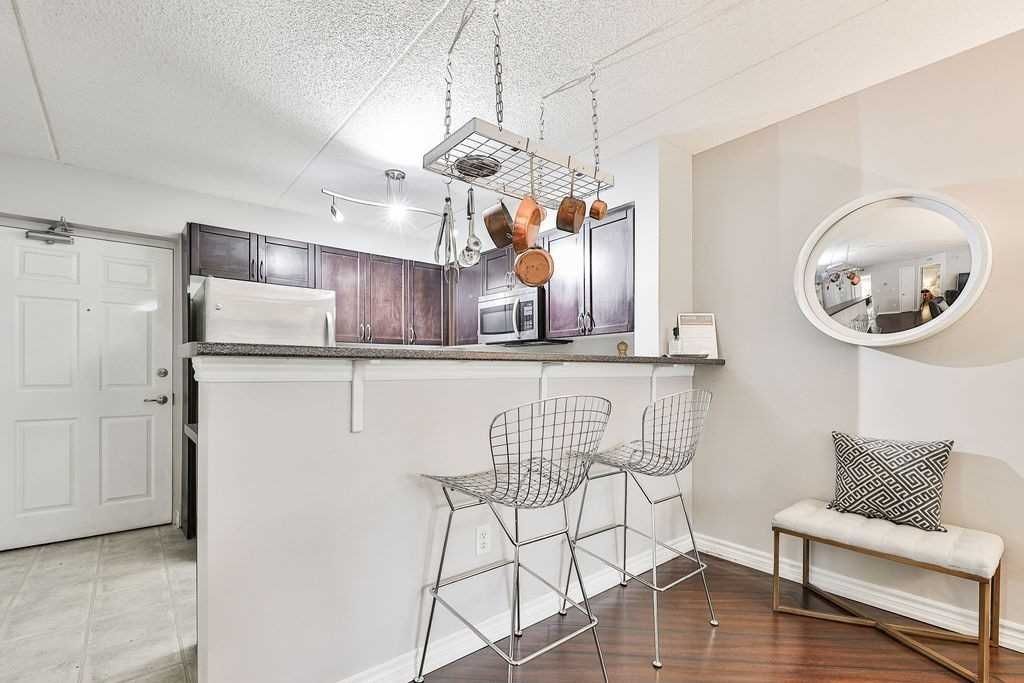 Essex model, 1bdrm ground floor unit, 644 sq ft including open concept kitch/liv area & 4pc bath w/stacked laundry. Kitchen offers plenty room for storage, 4 ss applncs & adjacent hanging pot rack. Easy access to come and go w/walk-out to ground lvl. 2 parking spots (1 assigned undergrnd & 2 above ground) & locker. Amenities: Gym & party room w/full kitchen.Incl: Fridge, stove, O-T-R micro, Dw, W/d, light fixtures, window coverings, bathroom mirror, parking fob.