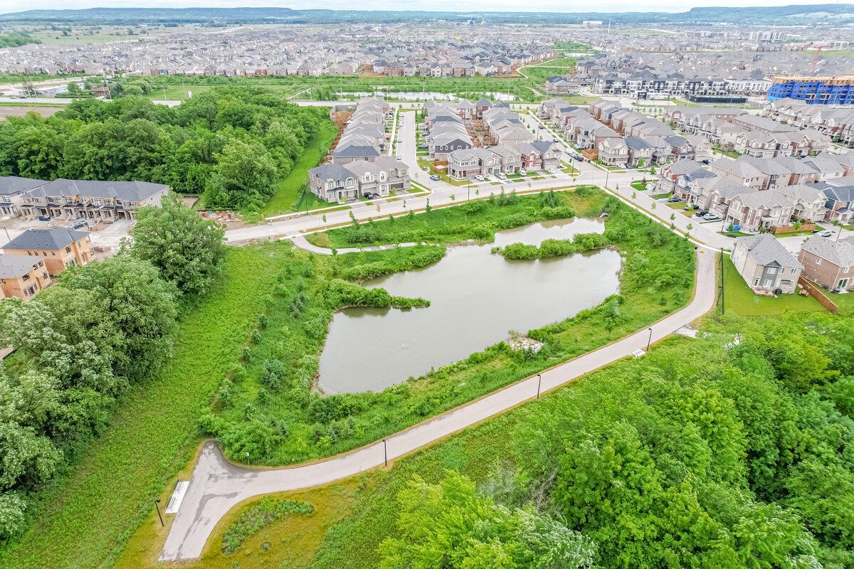 Welcome to this less than 1 year new Stunning & Graceful Home filled with full of natural sunlight! This Home Is the Perfect Mixture of Comfort & Luxury. Upon arrival, you'll be greeted by breathtaking views of a pond,greenspace&walking trails in front of the home. Step inside the home & welcomed by a functional layout with timeless finishes exquisitely picked by the owners. Main Level is complemented with a 9ft ceiling, Gas Fireplace, Natural wood finish Engineered hardwood floors in Great Room, Dining Room & Family Size Modern Kitchen. The oversize laundry room has enough space to create a home office. Walk out to the backyard from dining &enjoy lush green mature trees and greenspace views. Upstairs, the principal bedroom is a true retreat, complete with an expansive spa-like en-suite and large walk-in closets. Two additional bedrooms are generous in size.BASEMENT IS EXCLUDED/Premium Lot. Still under Tarion warranty. Tenants to Pay all utilities including Hot Water Tank Rental.