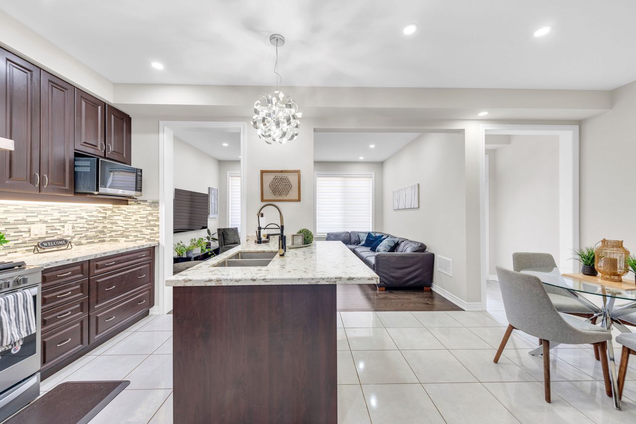 Located in Milton's finest neighborhood, seize the rare opportunity to own this stunning 3-bedroom, 3-bathroom freehold townhouse that epitomizes modern luxury. Meticulously upgraded, this residence boasts two expansive living areas and a chef's dream kitchen. Upstairs, you'll discover three tranquil bedrooms, including a primary suite with a spacious 4-piece ensuite and an extra large walk-in closet. The second floor also features a separate laundry area with custom cabinets and countertop space. The private backyard provides a serene outdoor retreat. experience the pinnacle of luxury living.