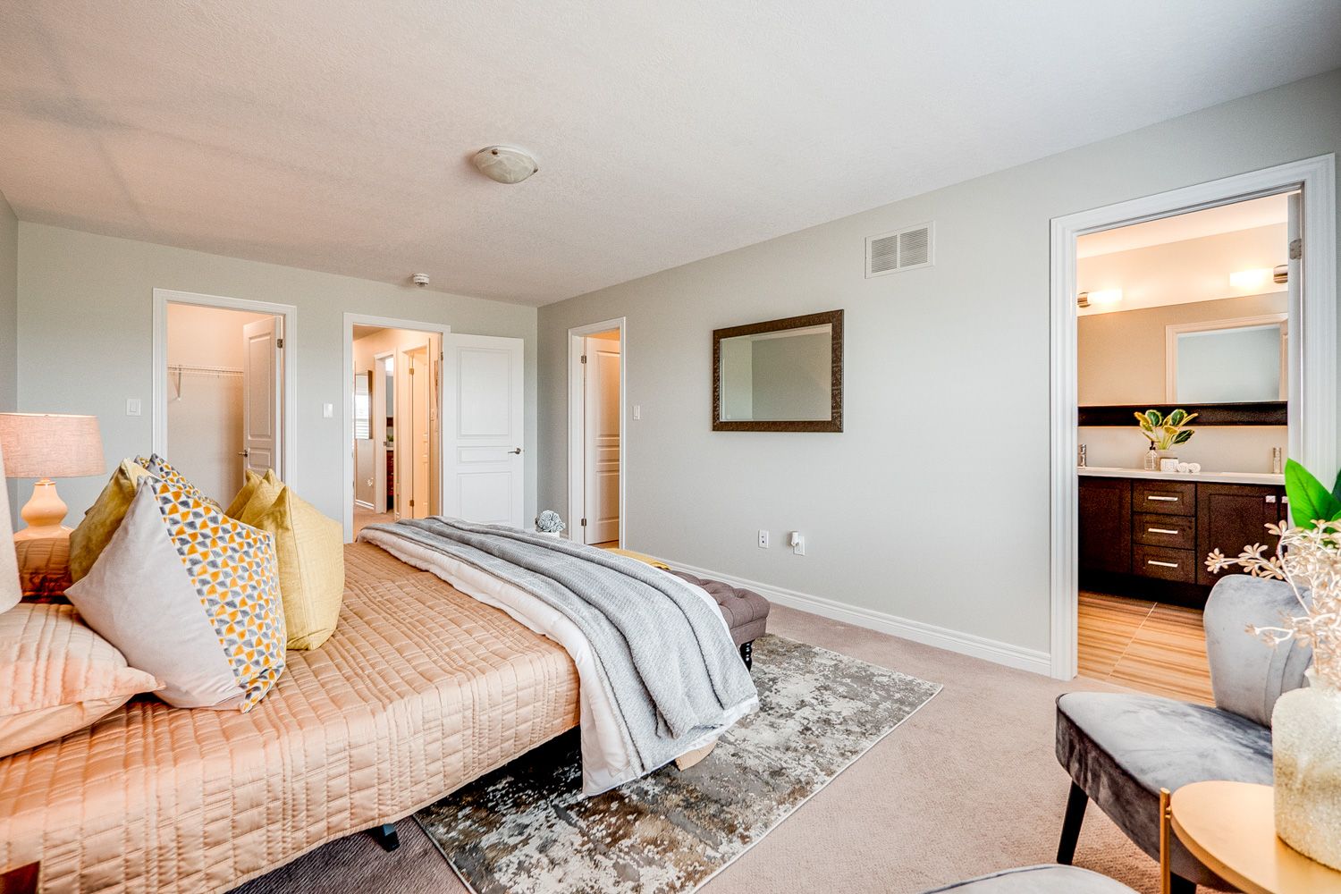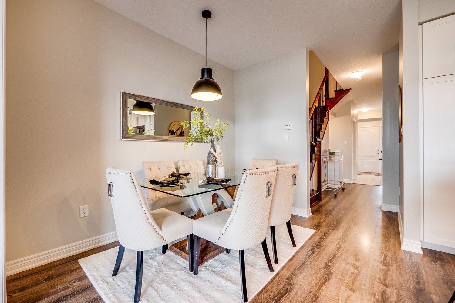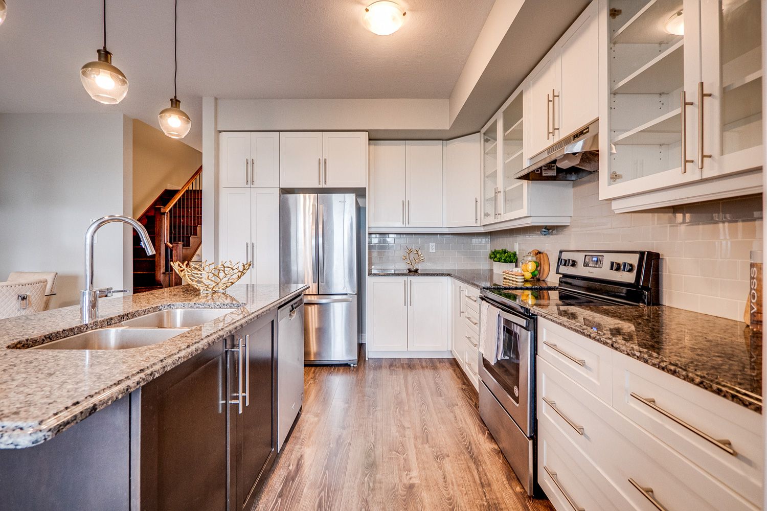 Luxurious Freehold Townhome built by Branthaven Homes in Ford Community. No House Behind. Close to 1800 square ft. Featuring 9' ceilings, modern finishes. Spacious layout & upgrades throughout. The open concept main floor with distinct living and dining areas & oversized windows. White chef's kitchen with extended cabinets, glass inserts, granite counter top, 3 large bedrooms, Convenient 2nd Floor laundry room & contemporary main bath. The primary bedroom has 2 walk-in closets and a 5-pc en-suite. Close to shopping, schools & HWYs, and Velodrome. Close to St Francis Xavier Secondary and Elsie MacGill Secondary School.