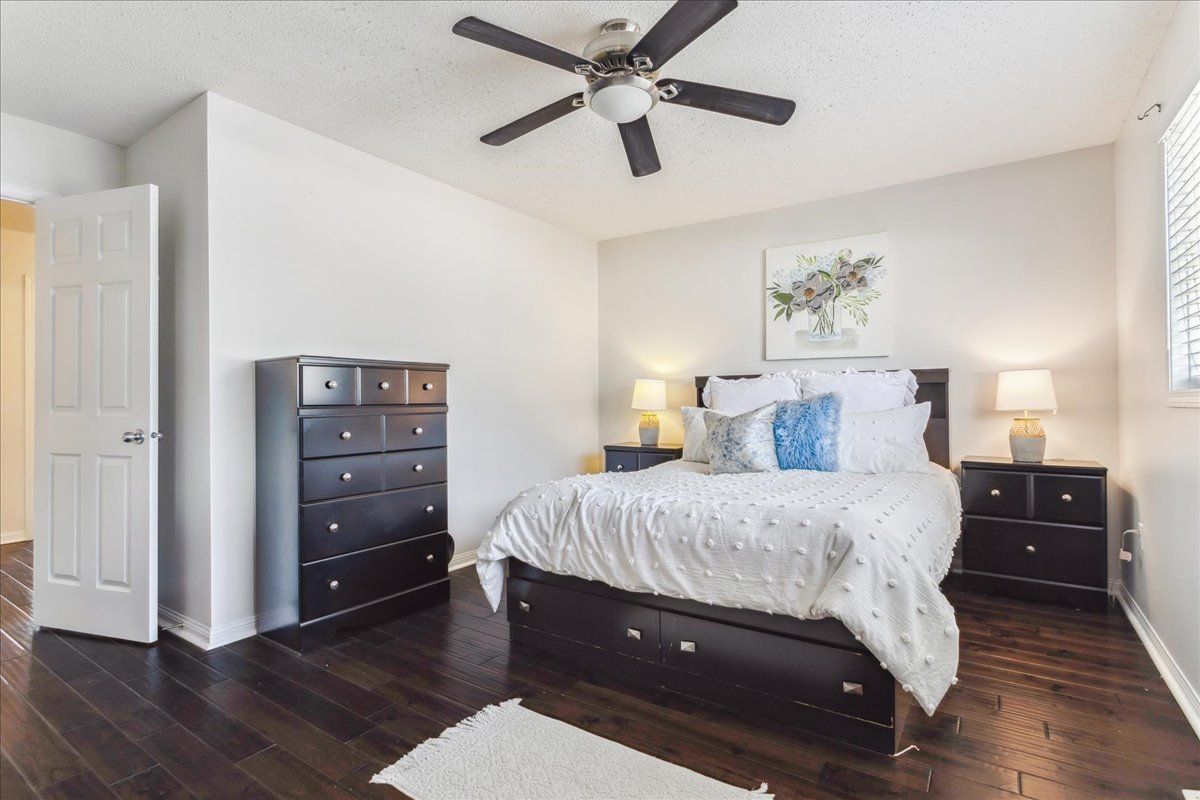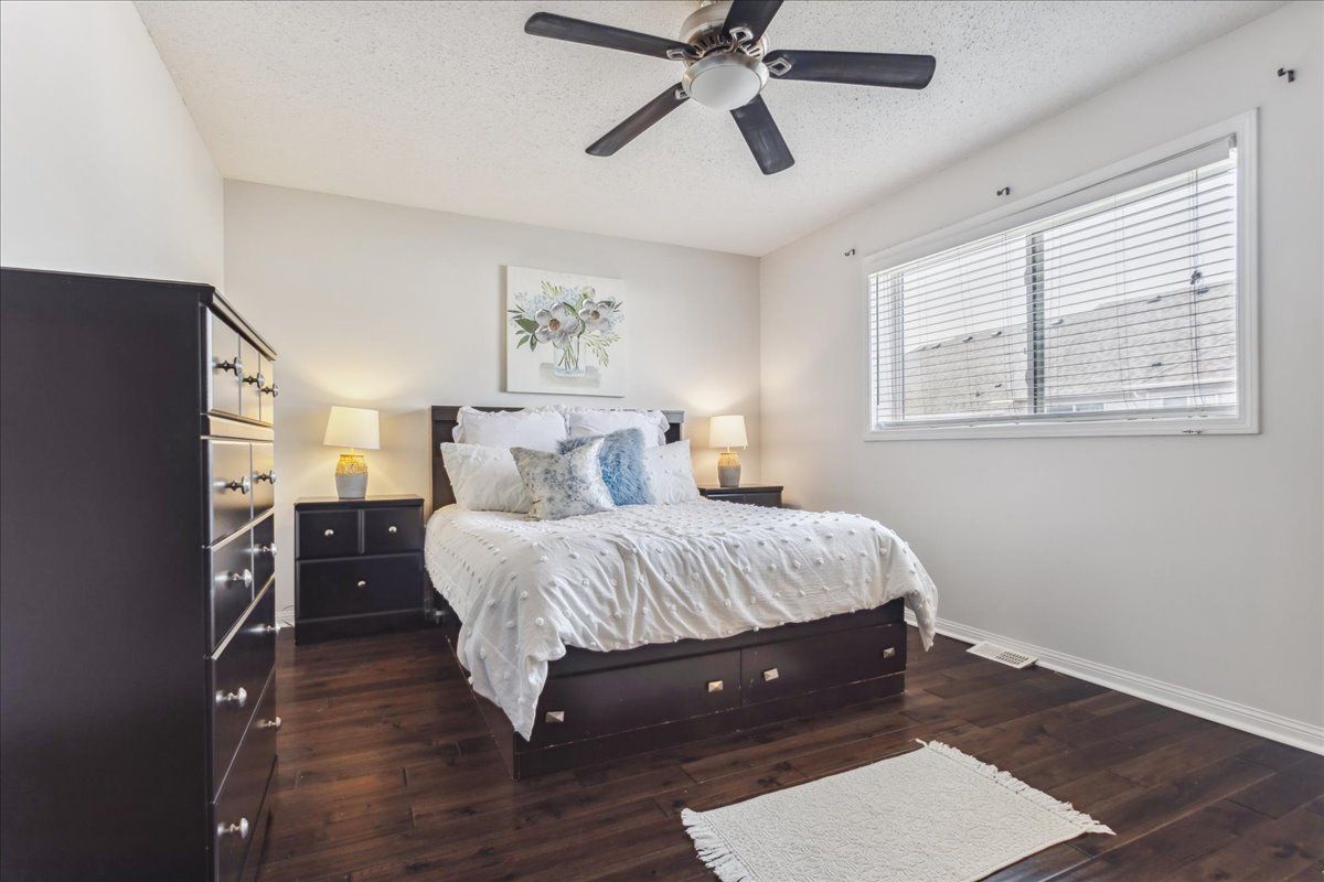 Gorgeous Freehold townhouse in family-friendly neighbourhood in prime location in Milton. 1445 Sqft Plus bsmt, 3 Spacious Bedrooms, 3 Bathrooms, Large Primary bedroom w/ 4-pc ensuite Bath & Walk in Closet. Fresh Paint, Hardwood Floors through out the main and 2nd floor, Perfect Home for first time home buyers, investors or those looking to downsize, Good size back yard, Garage Provide Direct access to Backyard, Freshly Painted , finished basement , Great Location minutes to Hwy 401 & 407. Close by GO station, schools, library, parks & Recreation center.No Sidewalk , 2 Cars in Driveway Plus 1 Car in Garage