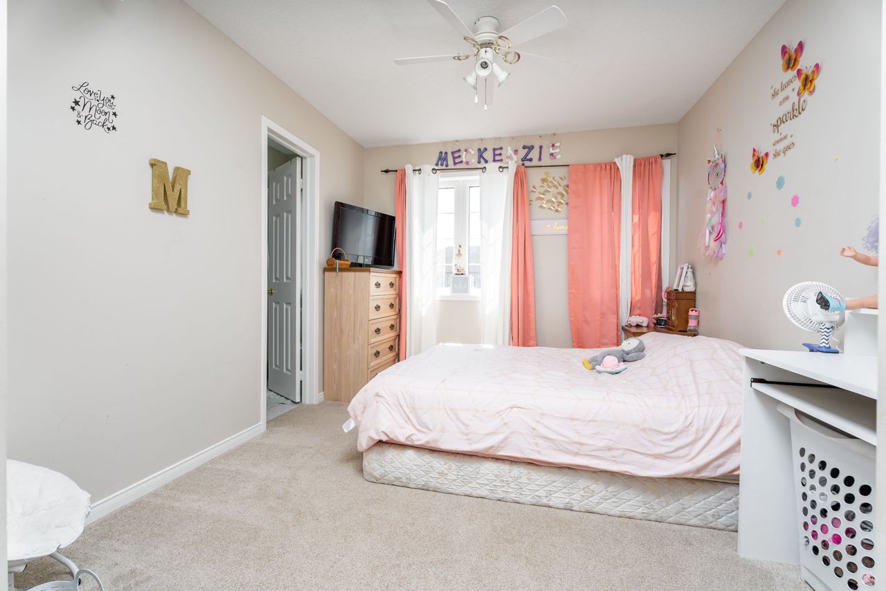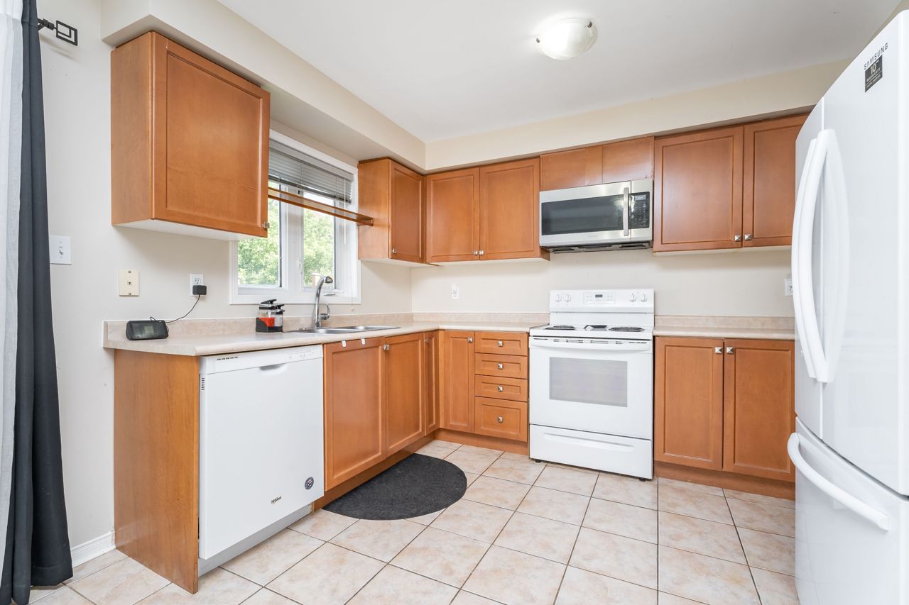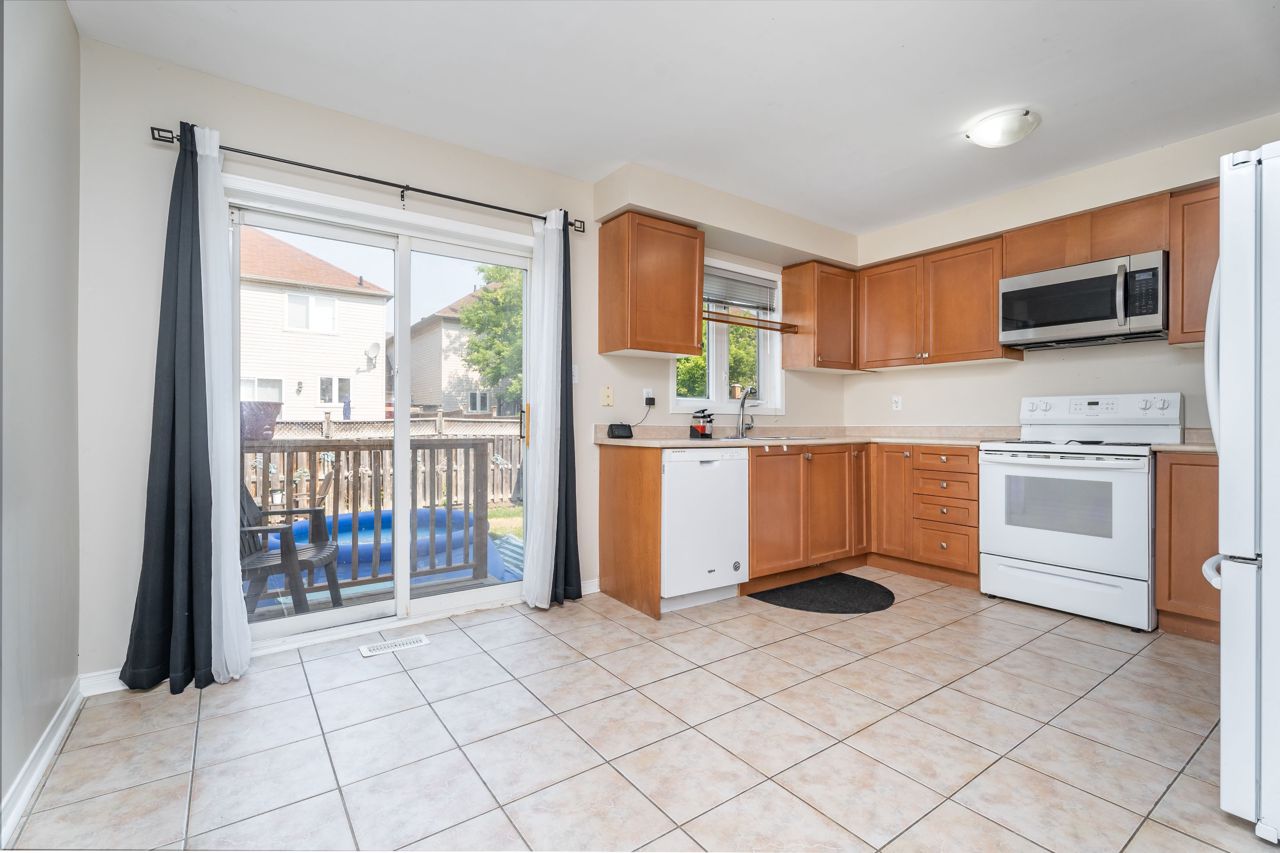 Pristine townhome in family-friendly neighbourhood in prime location in Milton minutes to Hwy 401 & 407 & a short walk to GO station, top schools, plaza, library, sports park & rec centre. This 3 bedroom & 3 bath home is the perfect house for first time home buyers, investors or those looking to downsize. Inviting front porch welcomes you into the spacious double door front foyer. Main floor living room features broadloom and 2 large windows that allow in plenty of natural sunlight. Spacious Eat-in kitchen is located at the rear of the home & offers loads of cabinet & counter space & walk-out to rear yard. Two piece powder room on this level. Upper level presents 3 large bedrooms. Primary bedroom showcases broadloom, his & her closets & 4 piece ensuite bath. Jack & Jill ensuite bath between 2 other bedrooms. Fully fenced rear yard & single car garage. Well kept, pride of ownership throughout, move in condition & central location!Offers welcome anytime!