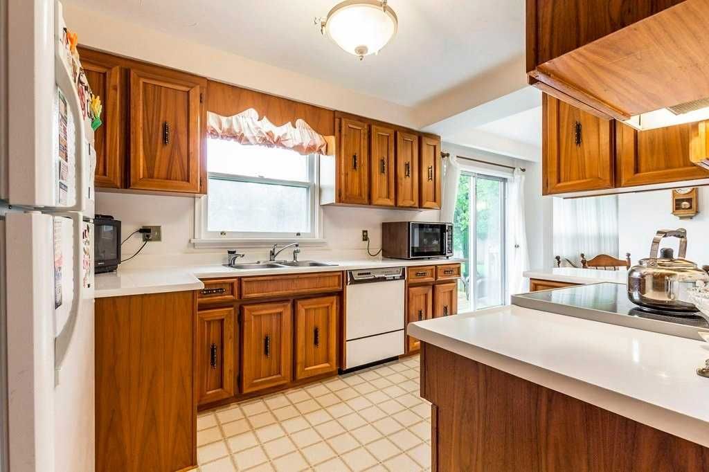 Spacious Brick Bungalow Set on a Huge Private Treed Lot Located On Highly Desired Crescent. All New Energy Efficient windows and Patio door, Very Bright Expansive Living Room Opens To a Comfortable Dining Room. The Eat-In Kitchen with Lots of Cabinetry Has Door To Elevated Deck. Three Main Level Bedrooms and the Main Bath. Finished Lower Level with 2 Bedrooms is Great for The Family or Entertaining with a Rec Room with Gas Fireplace, Bar Area And A Washroom With Shower And Sauna. Huge Irregularly Shaped Lot is Treed And Very Private.Fridge, Stove, Dishwasher, Washer and Dryer.
