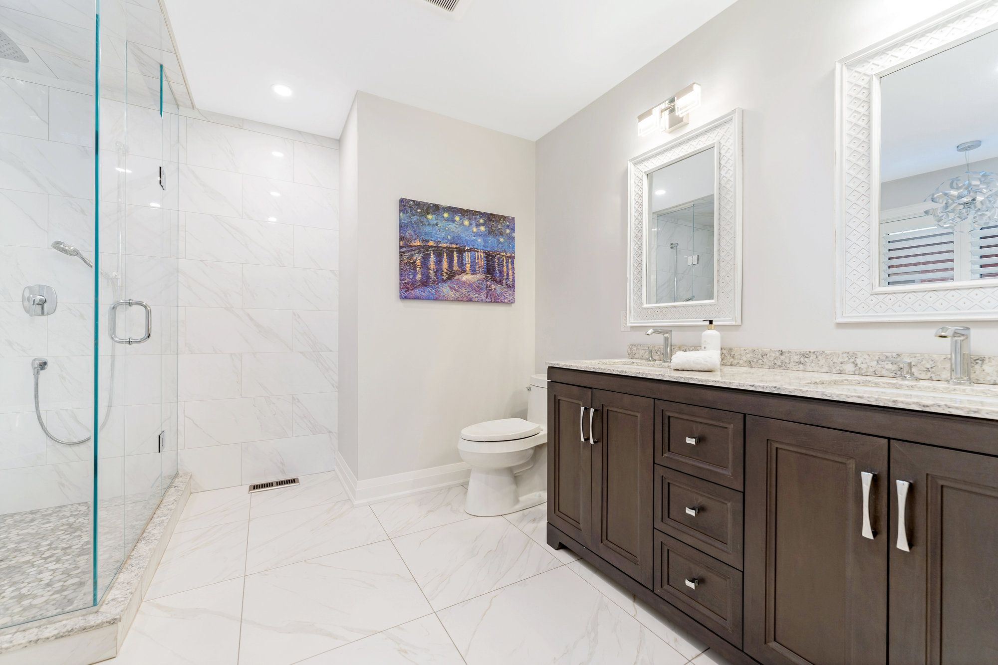 enough room for a large family to enjoy. Partially finished basement has a great layout and includes a bedroom. Backyard is hardscaped and private. This is an excellent family home, don't miss out and book your showing today.Updates: furnace & AC '22, kitchen appliances '22, quartz countertop & BS '22, 24" designer tile '22, foyer wainscoting '22, laundry room w/ LG wash tower '22, powder room '22, designer lighting '22, Primary ensuite '22, 2nd floor bath '22