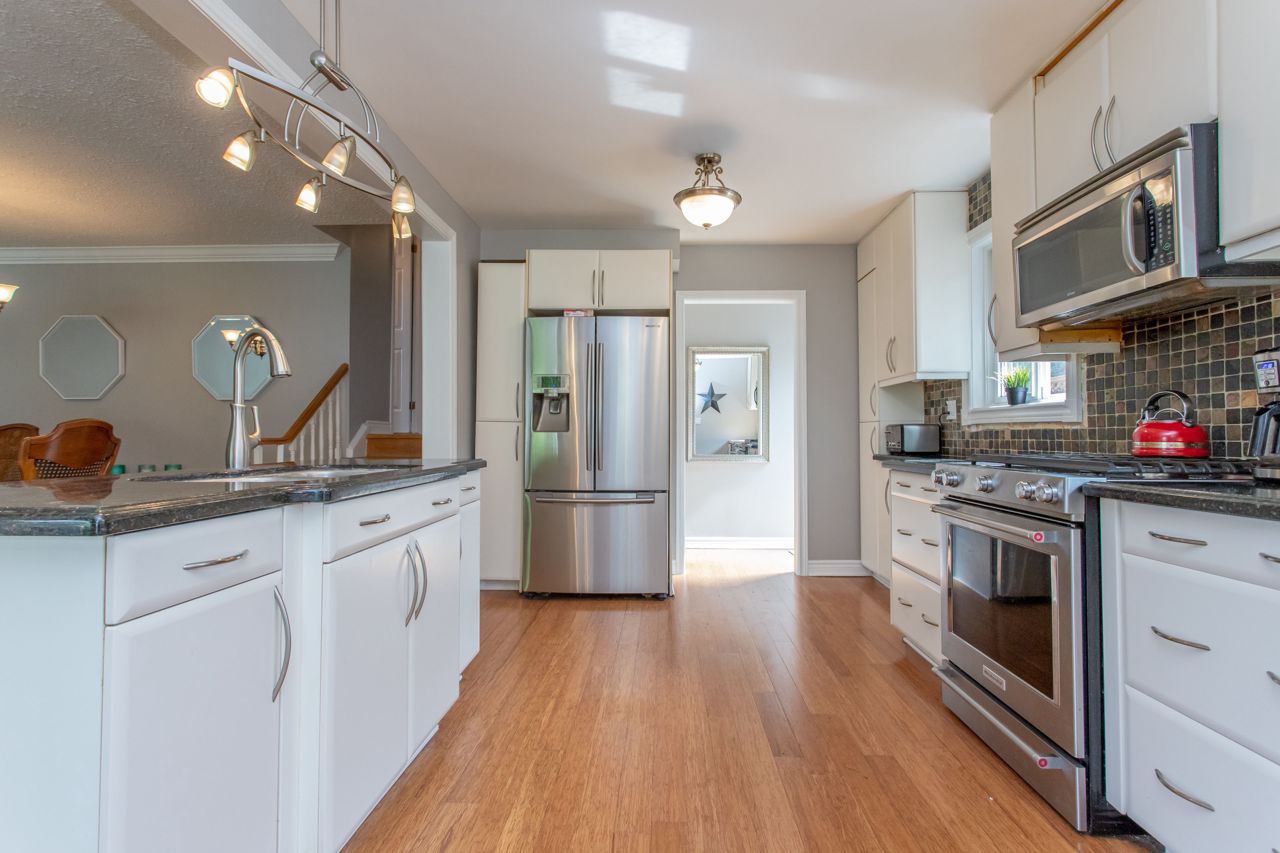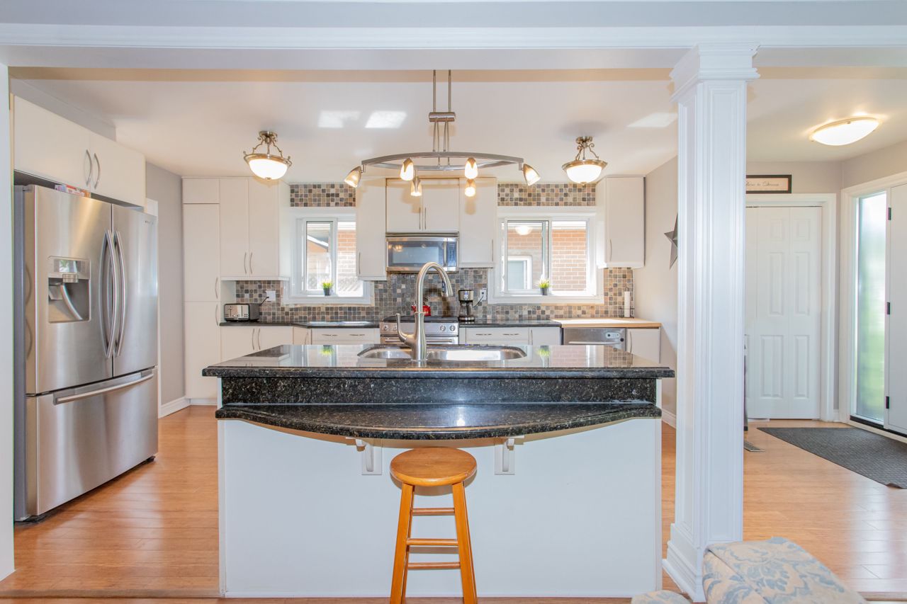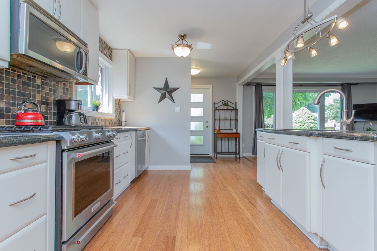 Super 3 level backsplit in great Milton neighbourhood! Open concept kitchen overlooking living room, bamboo floors on main level. originally 4 bdrms on upper level. Very large master bedroom. Could be changed back to 4 bedrooms. Open concept kitchen/living room. Lower level has family room w/woodstove, open concept kitchen w/appls, 1 bedroom & 1 bathroom.New windows + front & side doors (2020). Roof (2010). 2 sheds: one on concrete slab & 1 aluminum shed. Fully fenced b/yard. Elec. panel w/ circuit breakers.