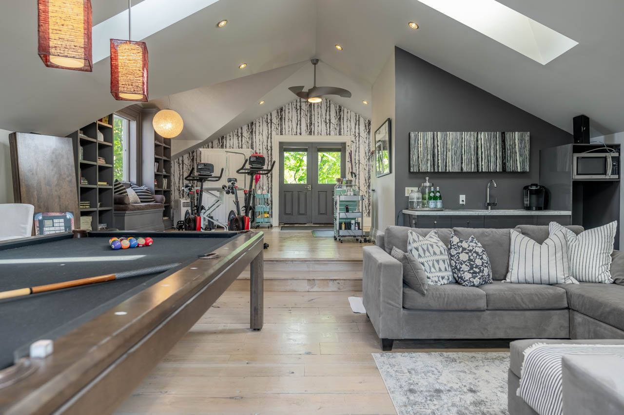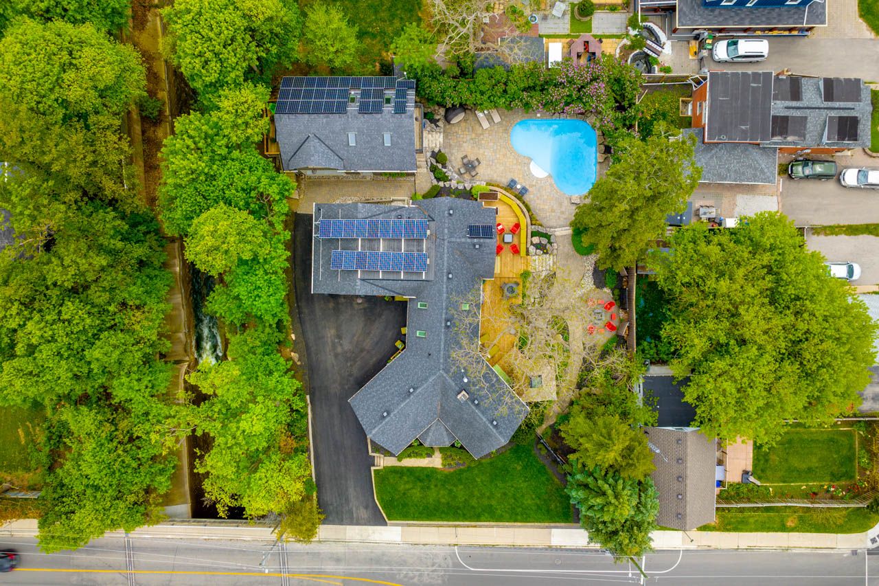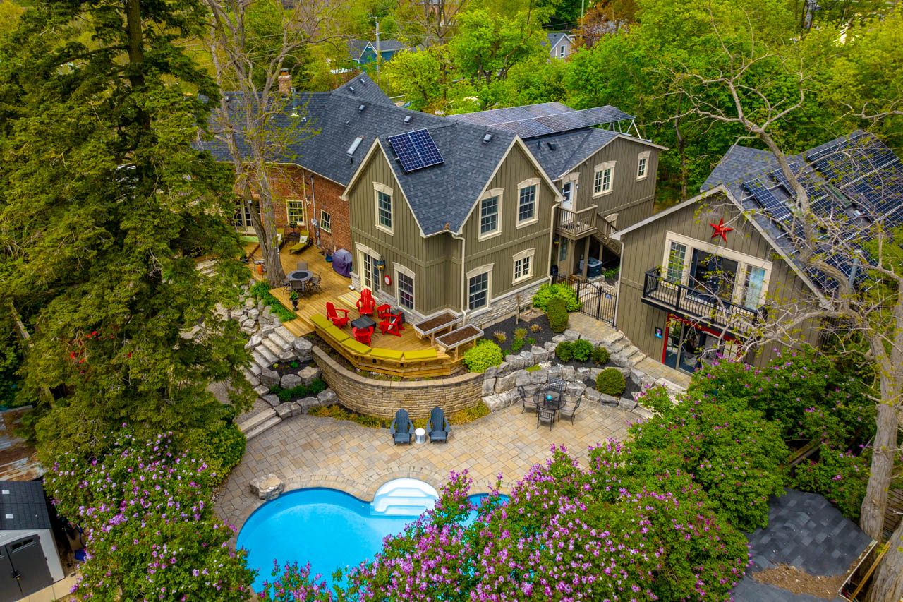 Welcome to the epitome of vibrant living! This exceptional property, with more than 5400 sq ft, including a 900 sqft loft and 500 sqft apartment, invites you to embark on a thrilling adventure. Get ready to be captivated by the possibilities in this stunning 4-bedroom haven. The expansive kitchen with double islands fuels your culinary creativity. Picture yourself lounging in the cozy family room, basking in the glow of a crackling fireplace, enjoying music on the built-in speakers found throughout. Step outside and discover an oasis of fun; a hot tub, extensive landscaping and a saltwater pool enveloped by beautiful lilacs –it’s straight out of a dream. Unleash your imagination in the separate 1-bedroom apartment or rent it out for additional income on top of the estimated $10,000 annual revenue from the solar panels. And the detached garage, with its finished loft, washroom, and wet bar, is the ultimate hangout spot. Embrace the vibrant lifestyle you deserve.
