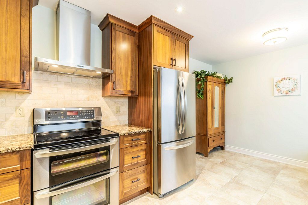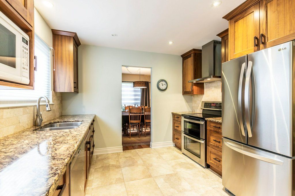 Beautiful, extensively upgraded raised bungalow on a mature treed lot on a highly desired street in Dorset Park. Large, open, bright living room and dining room complimented with rich hardwood floors. The renovated, elegant eat-in kitchen is enhanced with distinctive, custom cabinetry, granite counters, attractive backsplash and heated ceramic floors. Heated flooring accents the renovated main bathroom plus three spacious bedrooms in this bright, highly preferred layout. The vast, recently renovated recreation room, with above grade windows, has a convenient two piece washroom. From the main foyer there is a door to the garage and and door that leads to the back patio and huge, mature, treed yard. Parking for two on the driveway plus the single garage. True pride of ownership including: metal roof, added attic insulation (2018), hardwood (2018), basement broadloom and bathroom floor (2022), upgraded baseboards throughout, upgraded windows, gutter guards and more.