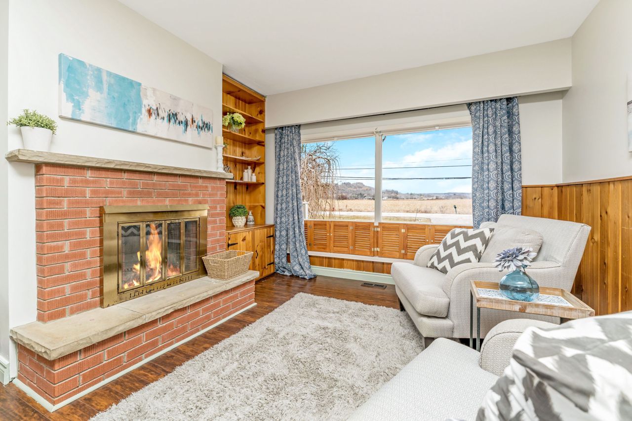 Hardwood Floor Brick Fireplace