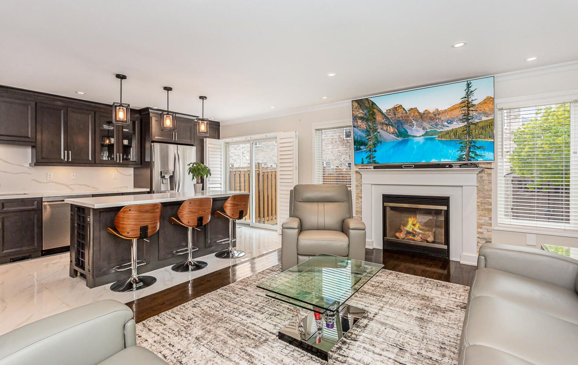 Luxury At Its Best! Freehold End Unit Townhouse With 2400 Sq ft Of Living Space. Mattamy Build Linewell, 3 Br/ 3 Washrooms, Open Concept Family Room With Gas Fireplace. 2020 Custom Solid Wood Kitchen With Centre Island, Ss App & Pot lights, Hardwood Thru-Out Main & 2nd Floor. Balcony, Master With 4 Pc Ensuite & W/I Closet. 2nd-Floor Laundry, 2020 Professional Finished Basement With Extra Bedroom And 3 Pc Shower.S/S Fridge, Gas Stove, Dishwasher, Hood. 2022 Fresh Paint Throughout, All Window Blinds, White Washer And Dryer. All Elf's. Cac. Water Tank Rental. Shed, Cvac And Acc. Garage Door Opener