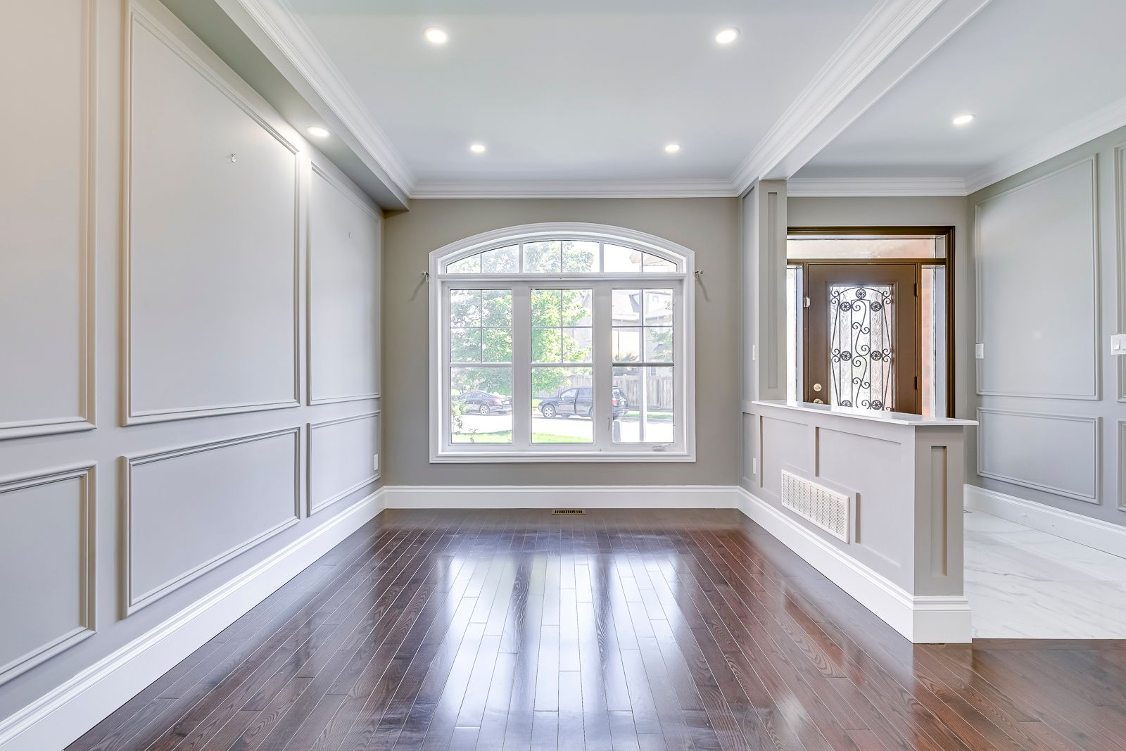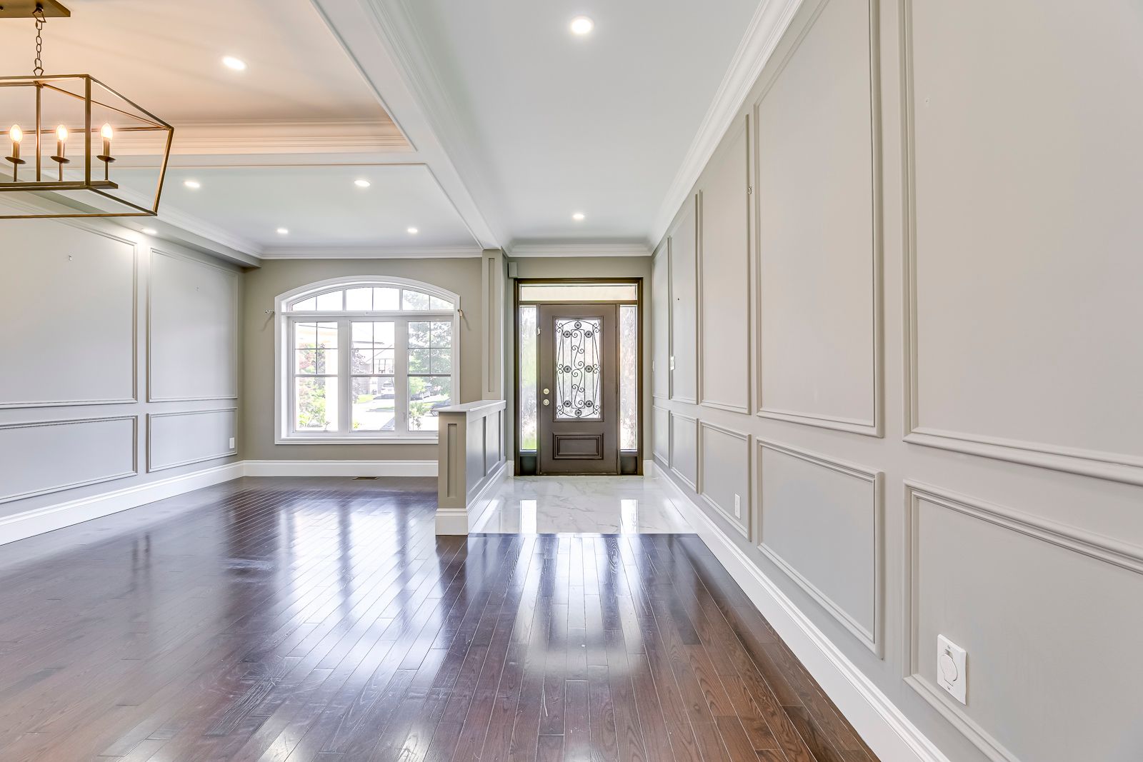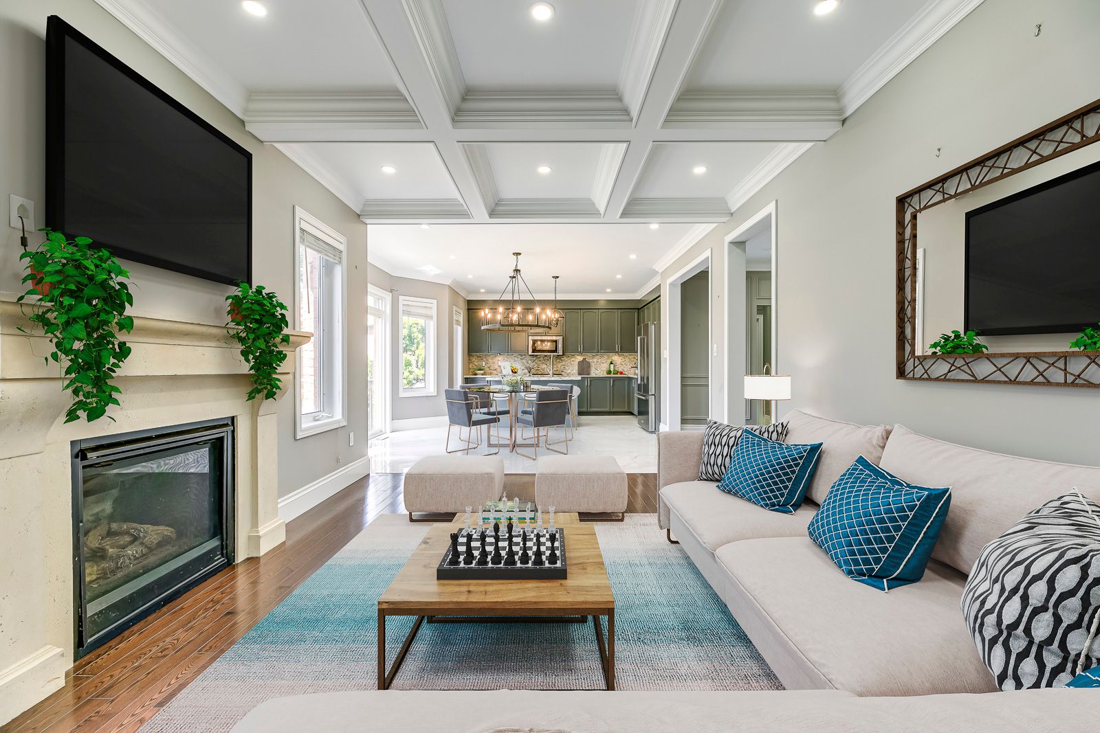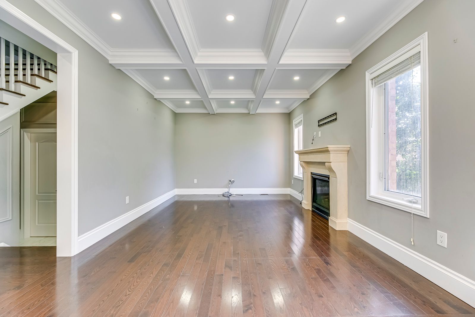 Hardwood Floor Gas Fireplace Coffered Ceiling