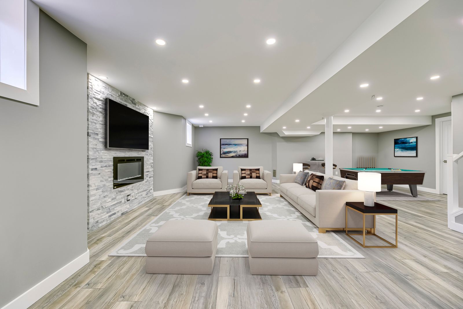 The finished Bsmt is a place of comfort, entertainment, and rejuvenation, this houses a recreation