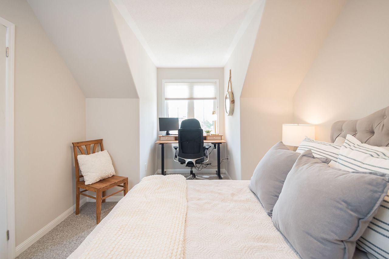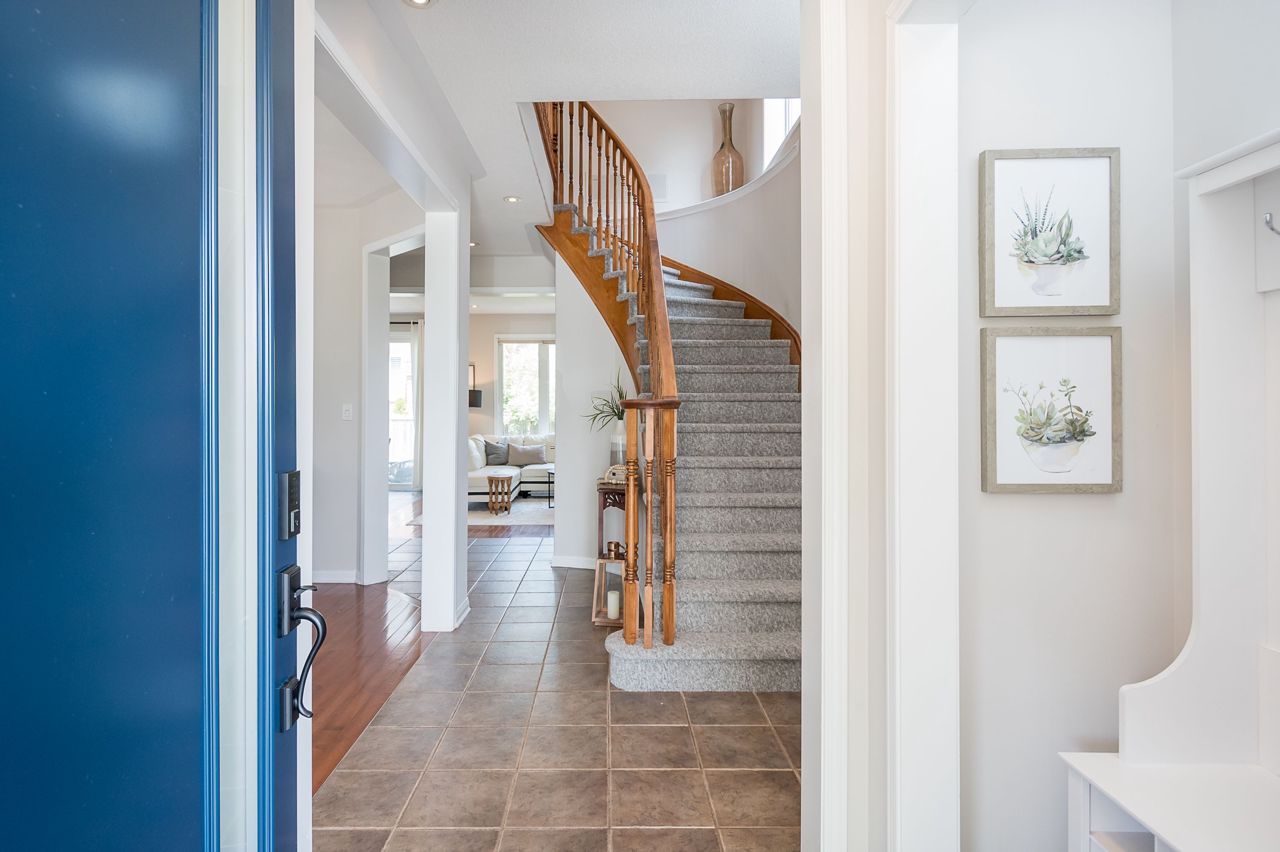Welcome to this exquisite home located on a premium lot facing a picturesque park. Situated in a highly sought-after neighborhood, proximity to schools, shopping, hospital and more. Upon arrival, you are greeted by a stunning custom front door, high end newly installed garage door and a covered porch. Inside, 9ft ceilings on the main plus soft glow of pot lights, living and dining areas boast well-maintained hardwood flooring, & upgraded lighting, An open concept family room with a cozy gas fireplace adjacent to the sunny kitchen featuring upgraded extended cabinets, S/S appliances, eat-in area with backyard access. Upstairs; newly installed carpeting, 4 bedrooms including primary suite with 4pc ensuite and walk-in closet, a main bath with a 4pc tub/shower. Bonus; convenient 2nd floor laundry. The finished basement boasts (2023) carpeting, a large rec/bedroom, a glamorous bathroom with a vessel tub, marble tiles, fogless/lit vanity mirrors, and heated floors. Landscaped front and back!
