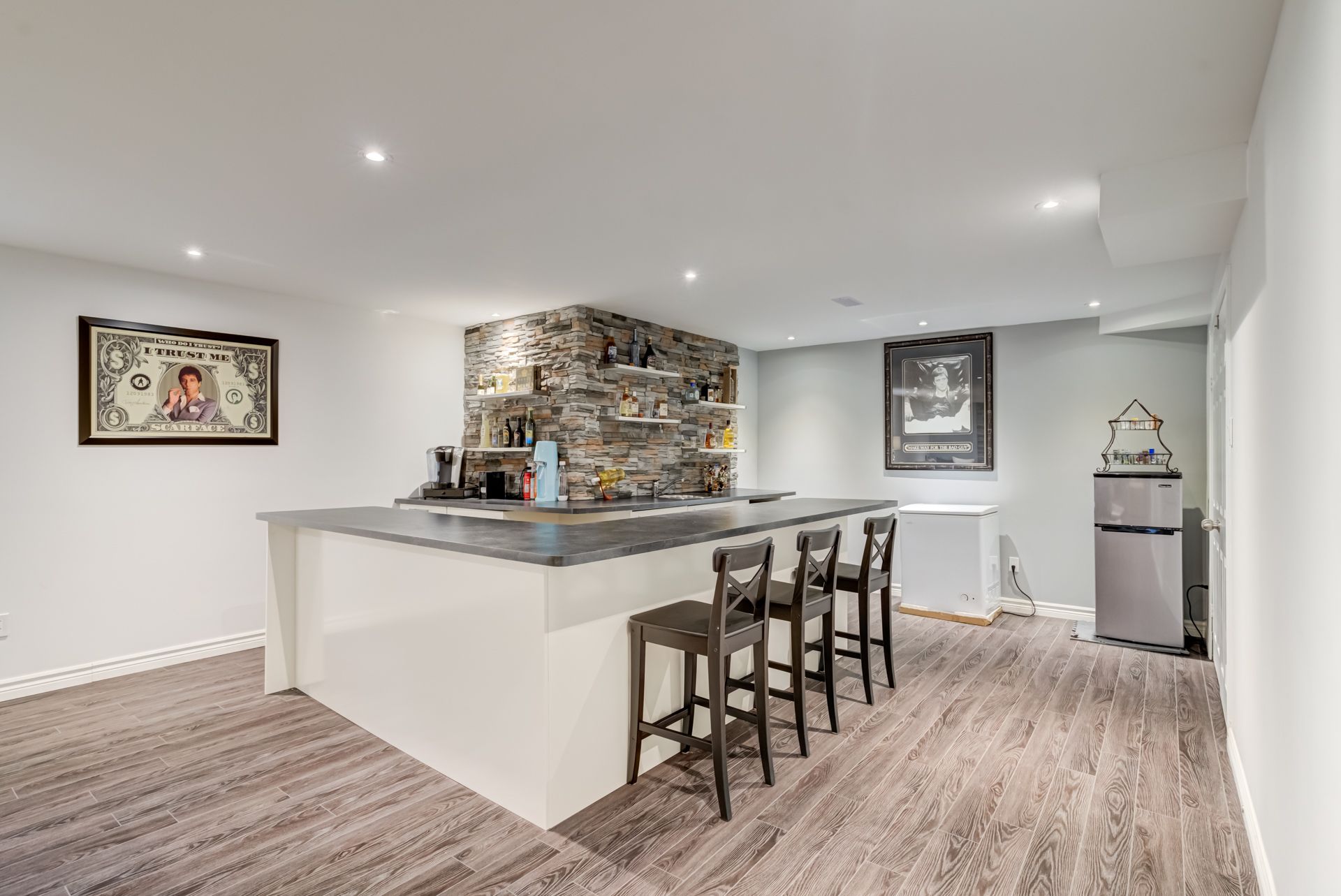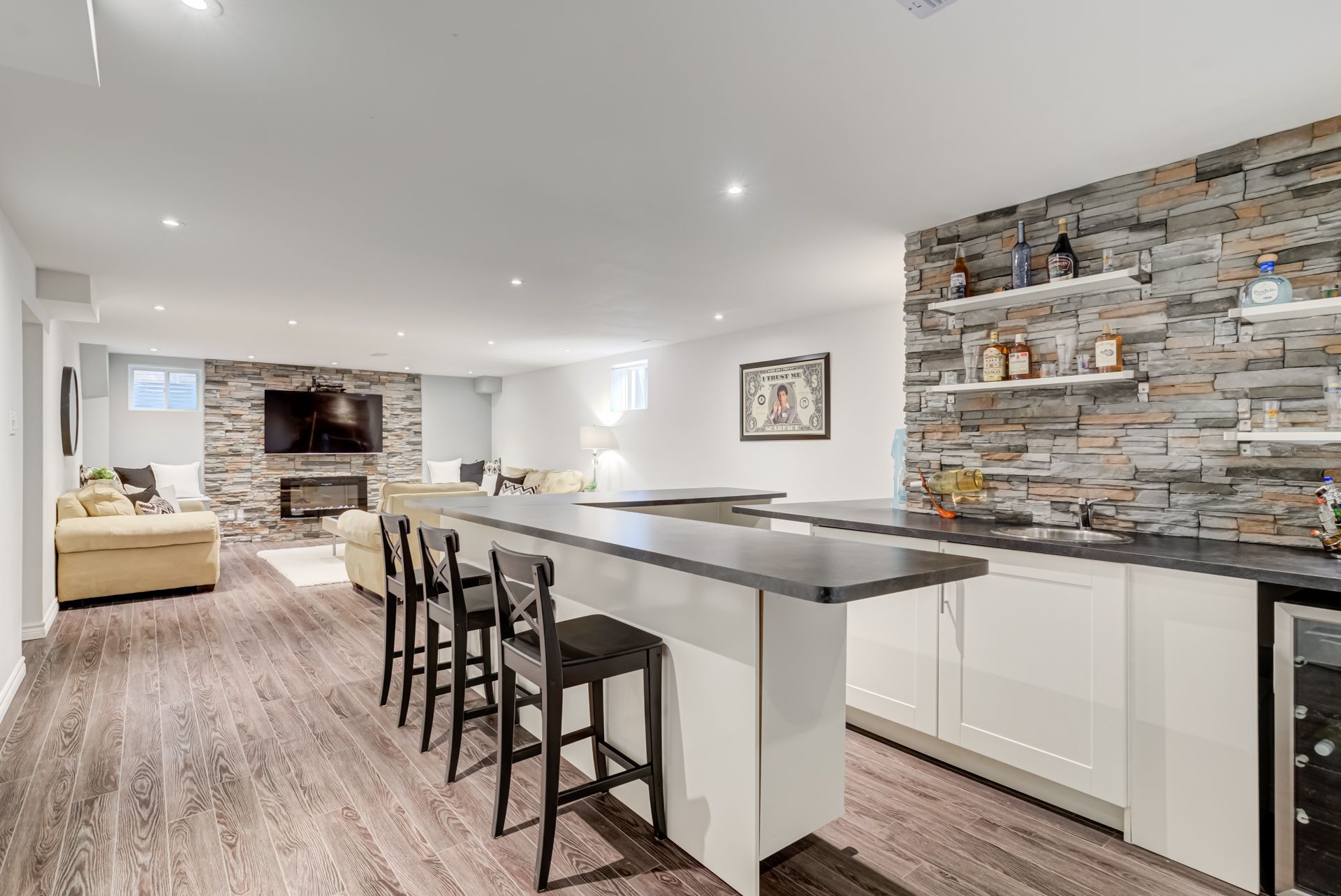Hardwood Floor B/I Bar Fireplace