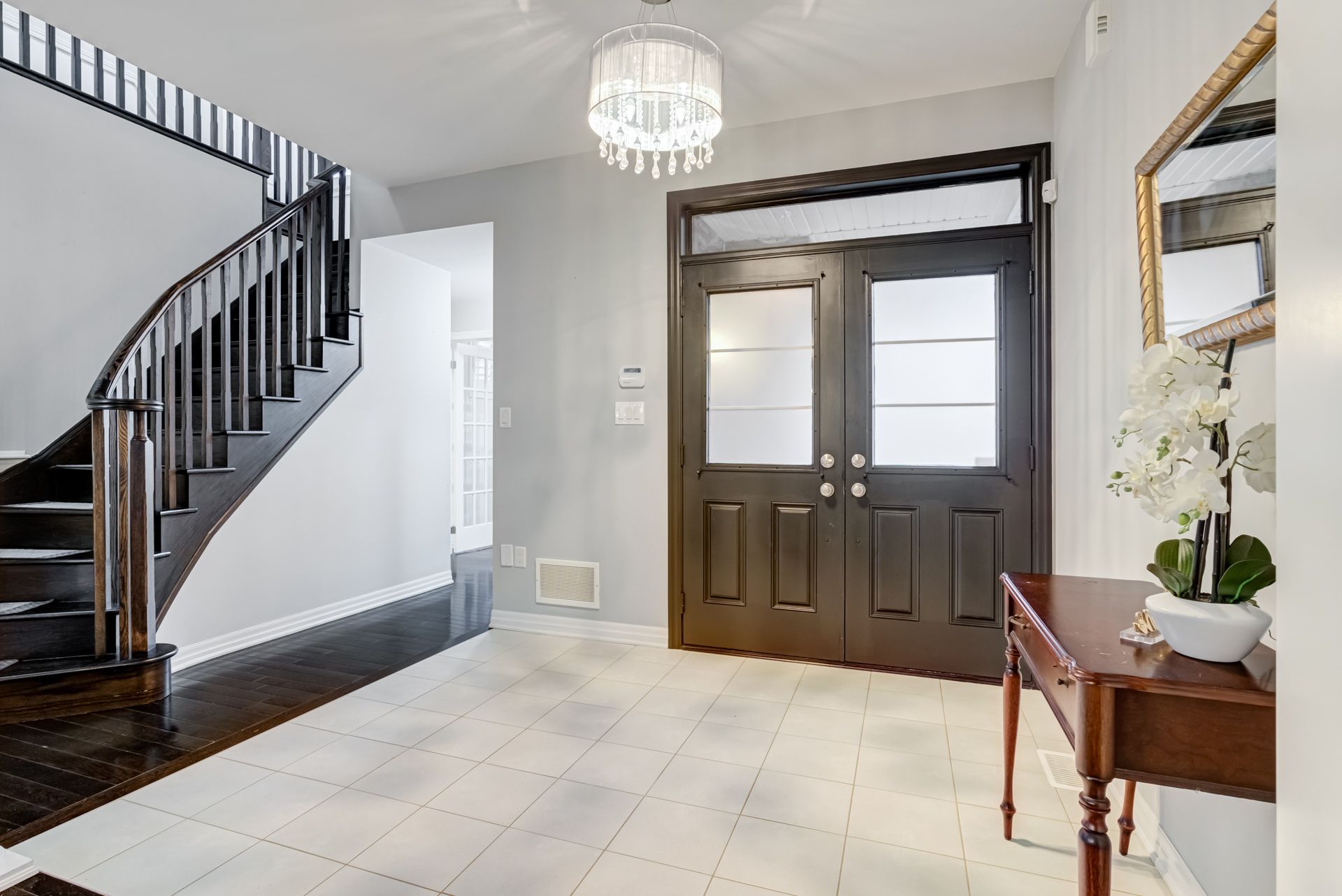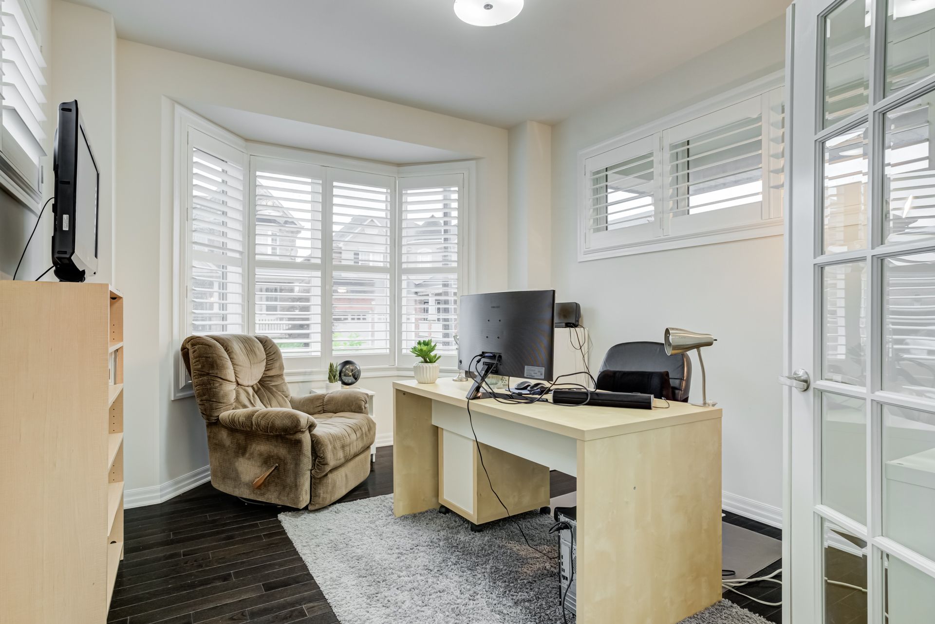 Hardwood Floor Bay Window Double Doors