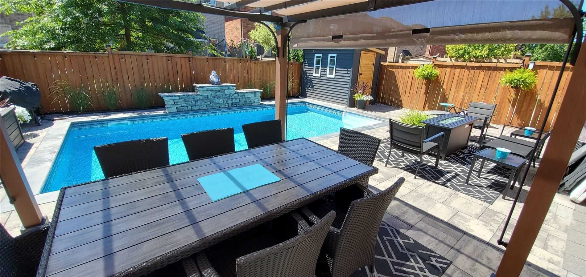 This Gorgeous Home Has It All! Upgrades Incl Custom Kitchen W/Lg Island,Stone Counters & Back Splash, Ton Of Storage, Ss Appl's,With A W/Out To An Entertainers Delight Backyard W/In-Ground Heated Pool & Patio(No Grass To Cut),Hickory Hardwood Floors On Main Fl, Open Concept Modern Design,9 Ft Ceilings,Pot Lights Thru-Out,Gas Fireplace,Loft Space (Can Be Used As 2nd Family Rm, Office Or Kids Area, Lg Primary W/Newly Reno'd En-Suite, Huge W/In Closet. A Must See!!New Roof, Front Door, Garage Door Installed Summer 2022. Newly Renovated Primary En-Suite. Modern Neutral Decor Throughout.