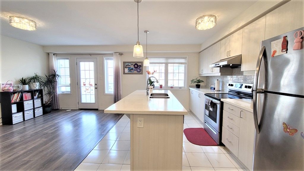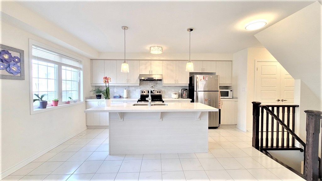 Your Search Is Over!!! Stunning Mattamy's Tweed End Freehold Townhome Located On A Quiet Street In Premium Milton Neighbourhood. Modern Open Concept Floor Plan. Main Floor Office Space With Laminate Floors. Fully Upgraded With Laminate Floors In Family, Dining & Bedrooms, Hardwood Stairs, Eat-In Kitchen With Quartz Counters, Centre Island, S/S Appliances, Marble Backsplash & Pendant Lights. Master Suite W/Walk-In Closet & 3Pc Ensuite. *No Sidewalk, 3 ParkingsUpgraded Light Fixtures. Stainless Steel Appliances. Private Driveway Parking. Access Door From House To Garage. Minutes To G.O Station, Hwy 401, Schools, Parks & More! Close To Future Laurier University Campus