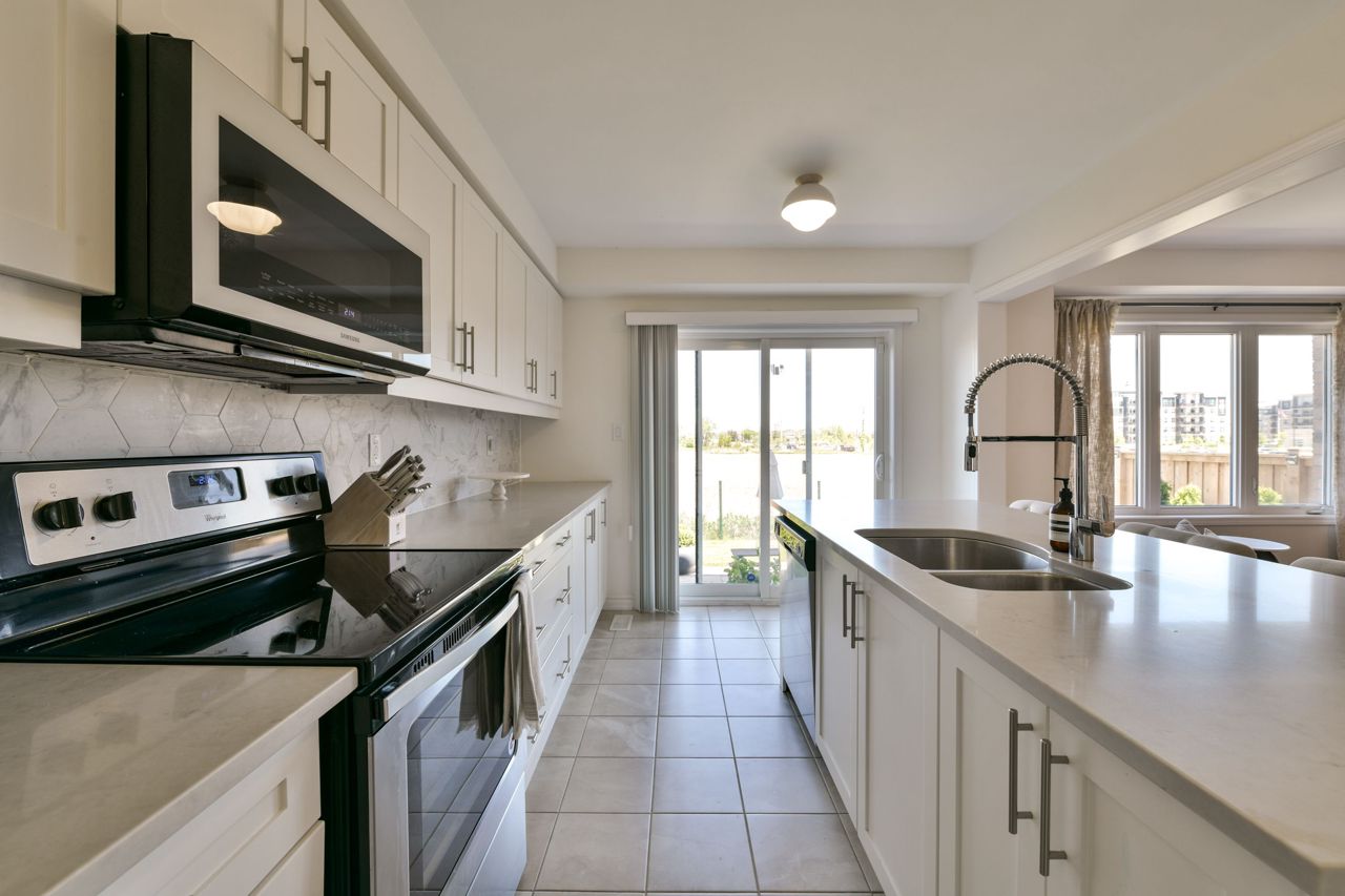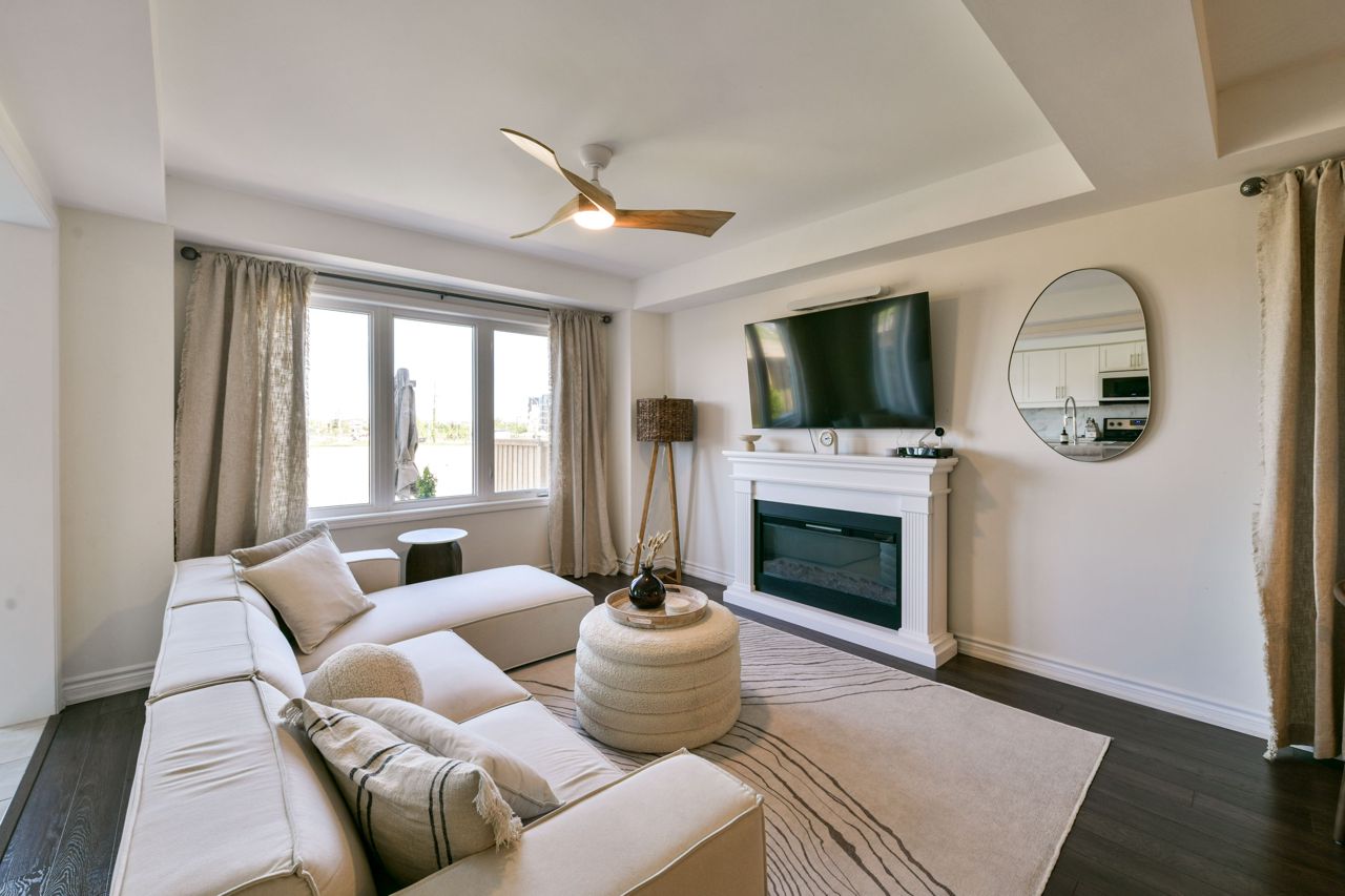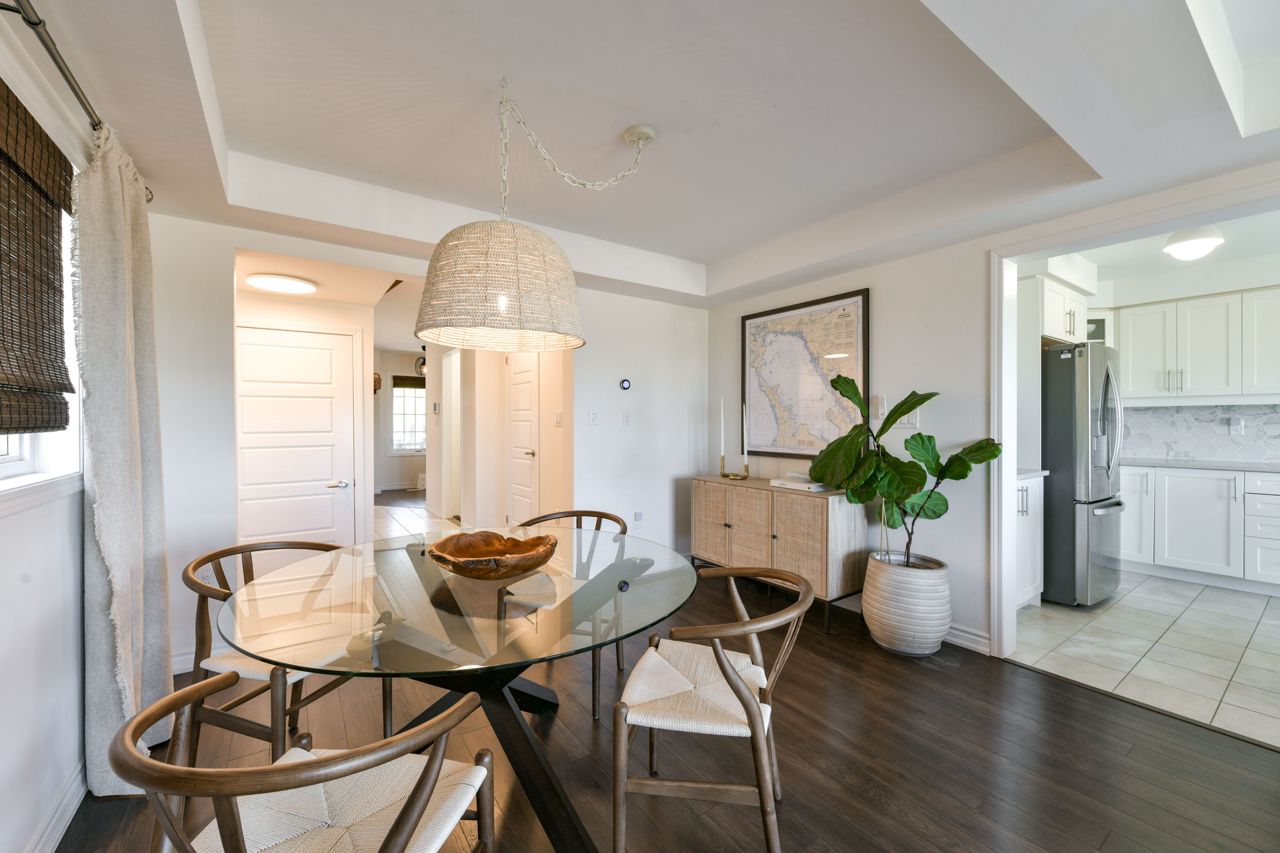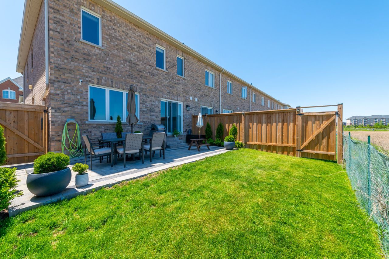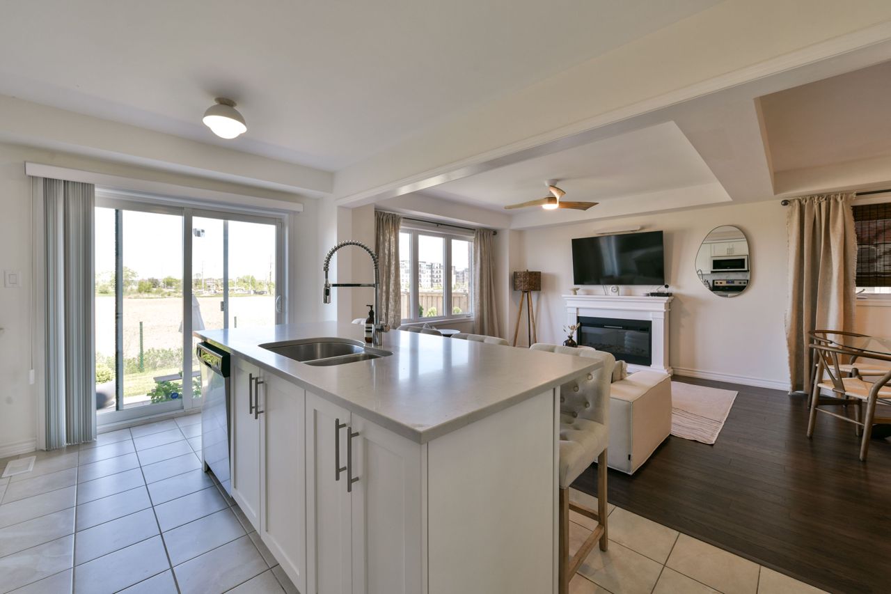 Hold onto your hearts, Miltonites! Feast your eyes on this chic end-unit townhome in the desirable Clarke Community. Spacious and private, like a semi-detached, but without the high price. Step inside to an elegant, neutral palette and modern design. The living and dining room is filled with natural light and features stunning hardwood floors. The kitchen is the heart of the home, with white cupboards, upgraded appliances, and a center island for breakfast. The cozy family room connects seamlessly, perfect for entertaining. Second-floor laundry adds convenience, and the primary room has an ensuite bathroom. Outside, enjoy a fenced backyard oasis with a 12x24 patio. Explore nature with nearby trails and parks, like Beaty Trail Park and Rattlesnake Conservation Area. Cool off at the Clarke Neighborhood Park South Splash pad. Discover modern living in this remarkable home. Enjoy year-round recreation in Milton's abundant natural offerings.Fridge, Stove, Dishwasher, Washer, Dryer, All Electrical Light Fixtures, Window Coverings, Electric fireplace.