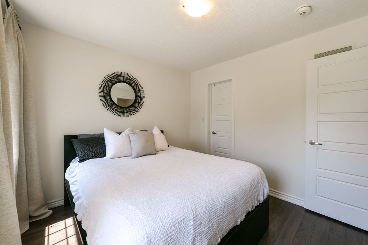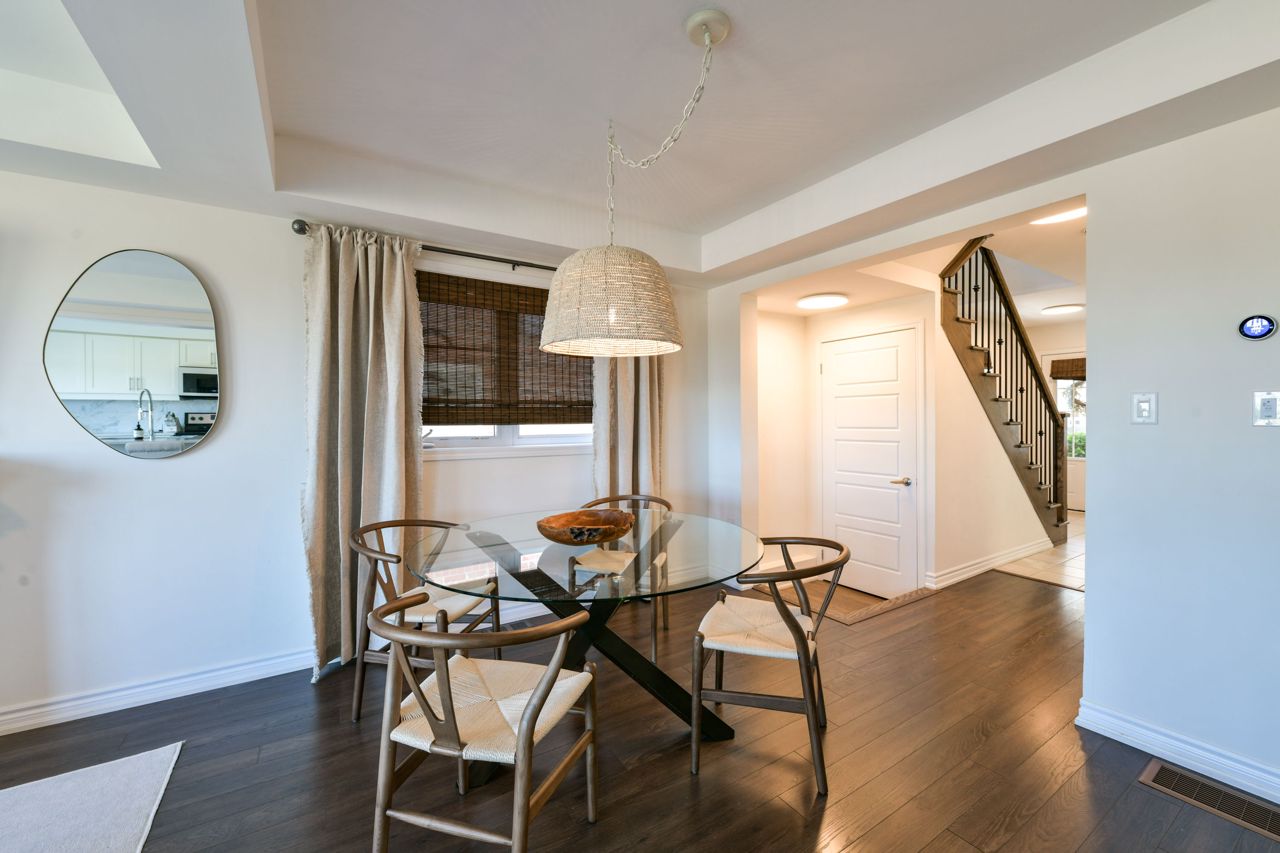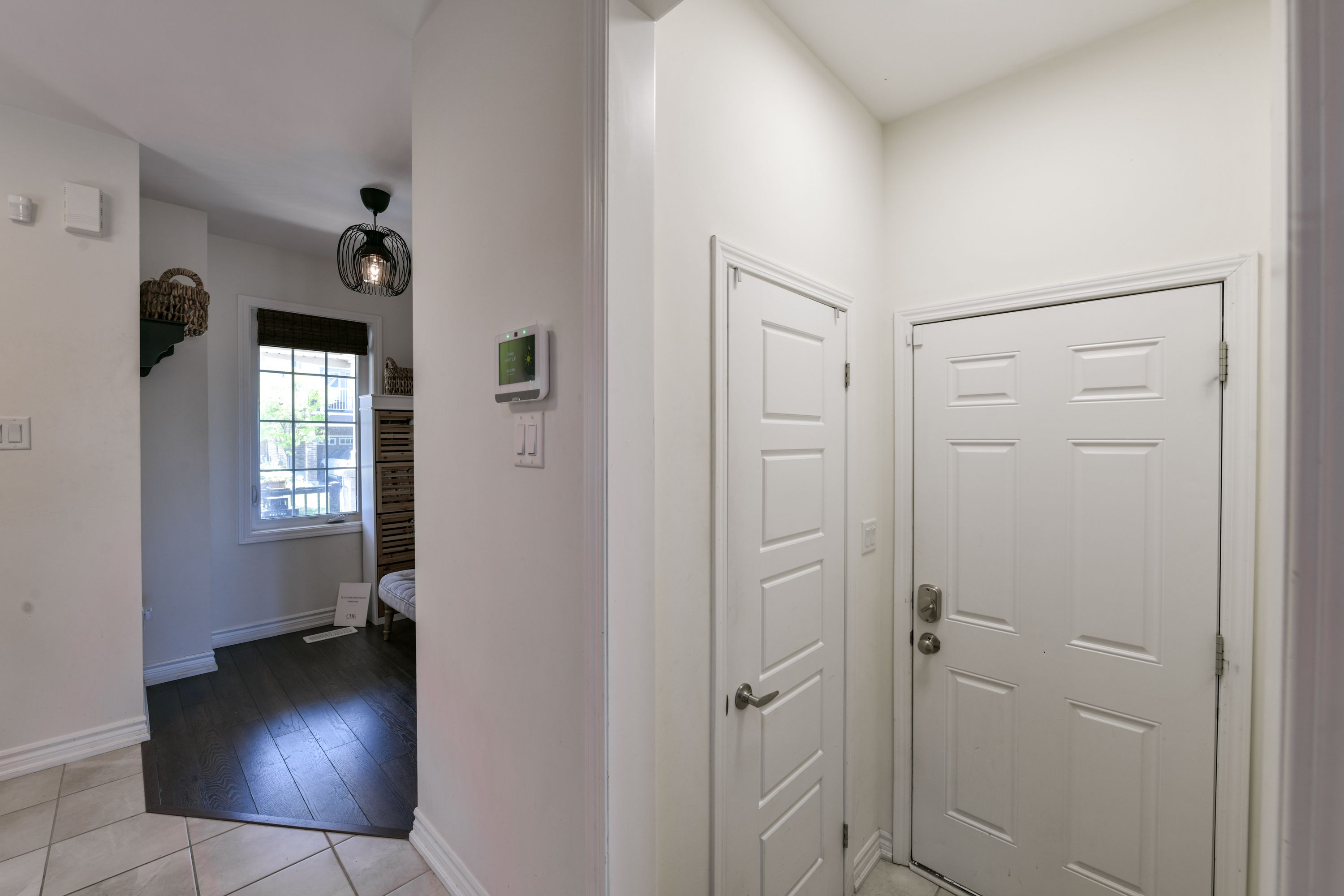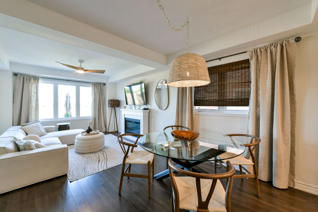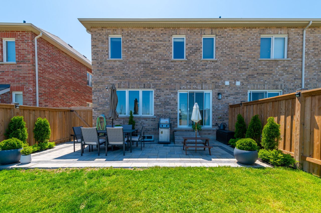 Hold onto your hearts, Miltonites! Feast your eyes on this chic end-unit townhome in the desirable Clarke Community. Spacious and private, like a semi-detached, but without the high price. Step inside to an elegant, neutral palette and modern design. The living and dining room is filled with natural light and features stunning hardwood floors. The kitchen is the heart of the home, with white cupboards, upgraded appliances, and a center island for breakfast. The cozy family room connects seamlessly, perfect for entertaining. Second-floor laundry adds convenience, and the primary room has an ensuite bathroom. Outside, enjoy a fenced backyard oasis with a 12x24 patio. Explore nature with nearby trails and parks, like Beaty Trail Park and Rattlesnake Conservation Area. Cool off at the Clarke Neighborhood Park South Splash pad. Discover modern living in this remarkable home. Enjoy year-round recreation in Milton's abundant natural offerings.Fridge, Stove, Dishwasher, Washer, Dryer, All Electrical Light Fixtures, Window Coverings, Electric fireplace.