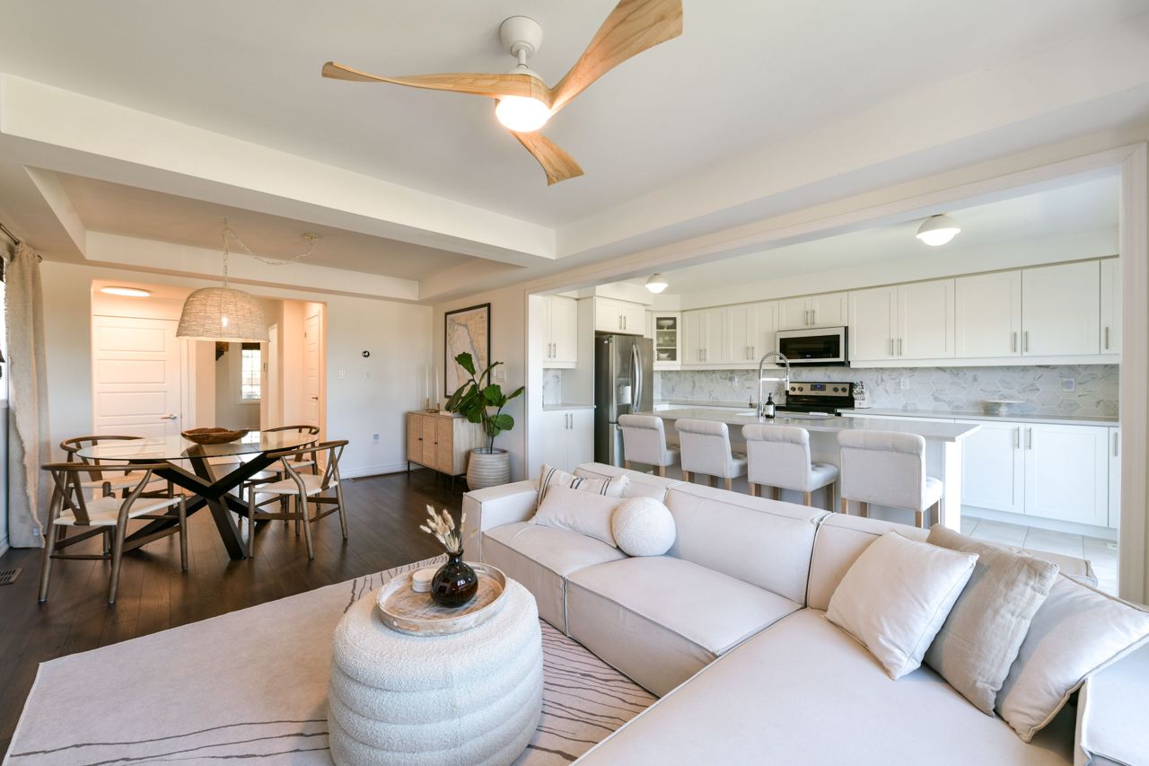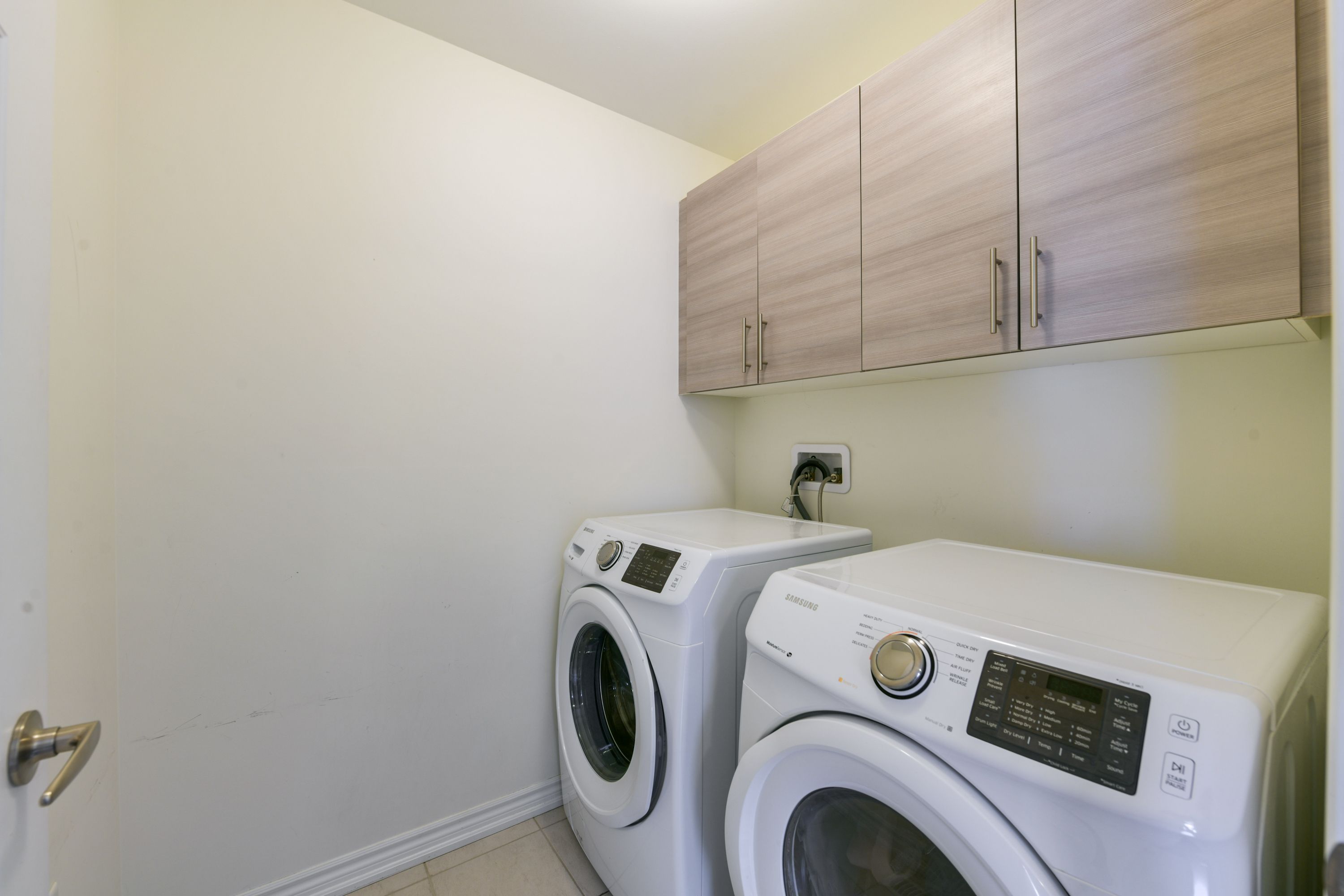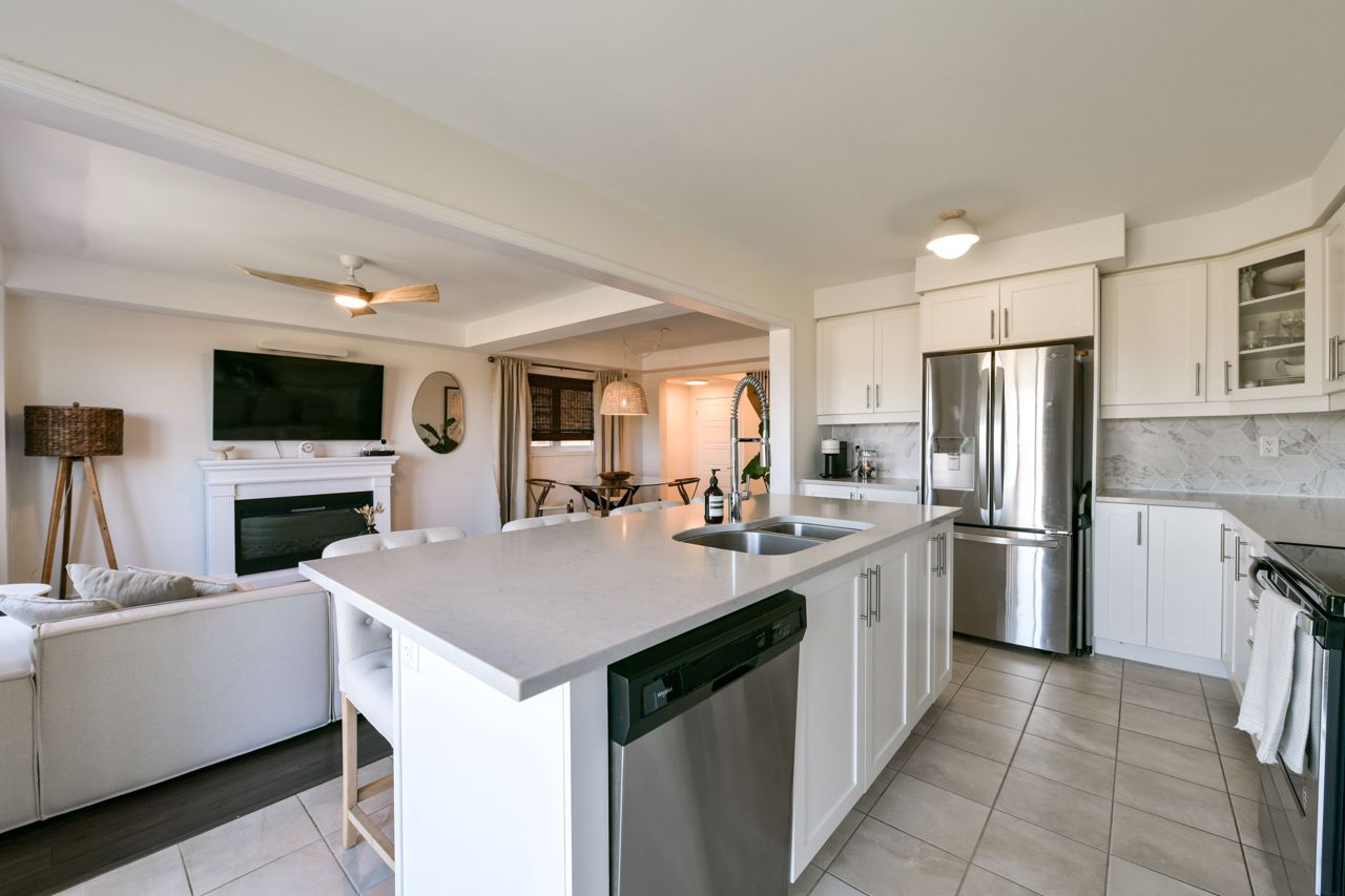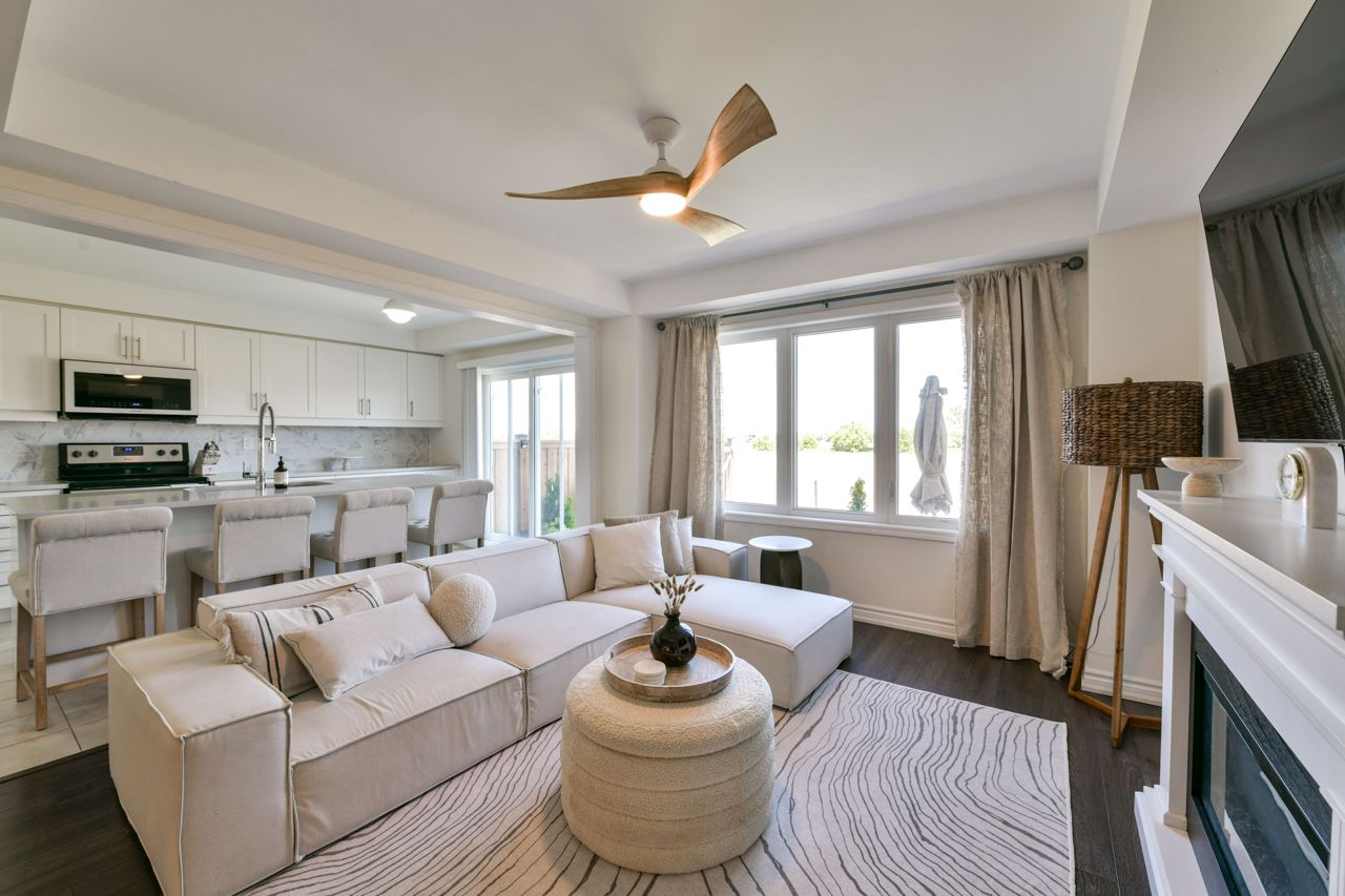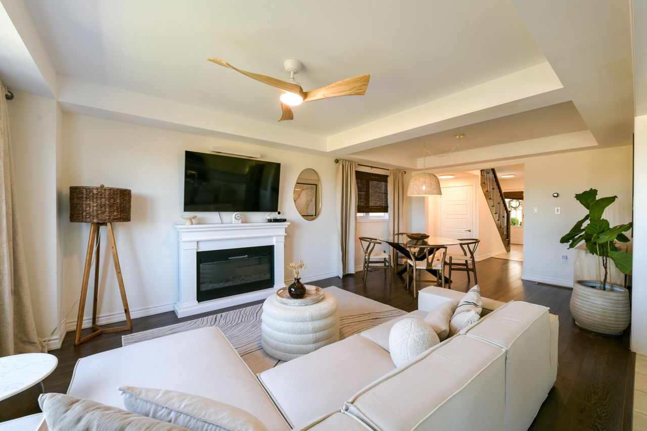 Hold onto your hearts, Miltonites! Feast your eyes on this chic end-unit townhome in the desirable Clarke Community. Spacious and private, like a semi-detached, but without the high price. Step inside to an elegant, neutral palette and modern design. The living and dining room is filled with natural light and features stunning hardwood floors. The kitchen is the heart of the home, with white cupboards, upgraded appliances, and a center island for breakfast. The cozy family room connects seamlessly, perfect for entertaining. Second-floor laundry adds convenience, and the primary room has an ensuite bathroom. Outside, enjoy a fenced backyard oasis with a 12x24 patio. Explore nature with nearby trails and parks, like Beaty Trail Park and Rattlesnake Conservation Area. Cool off at the Clarke Neighborhood Park South Splash pad. Discover modern living in this remarkable home. Enjoy year-round recreation in Milton's abundant natural offerings.Fridge, Stove, Dishwasher, Washer, Dryer, All Electrical Light Fixtures, Window Coverings, Electric fireplace.
