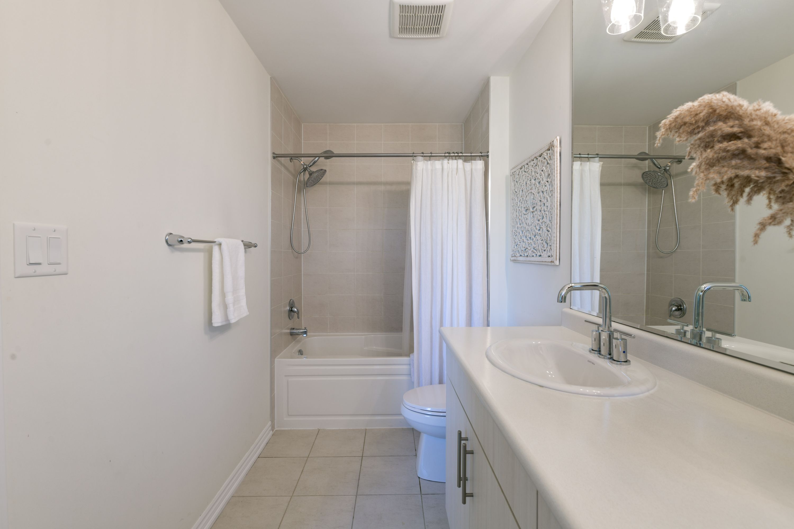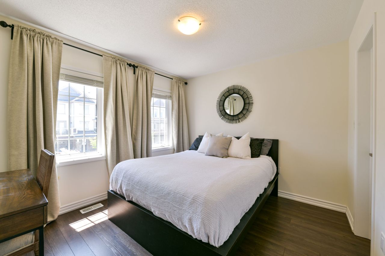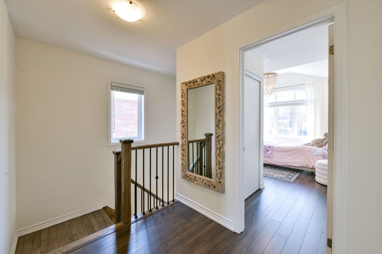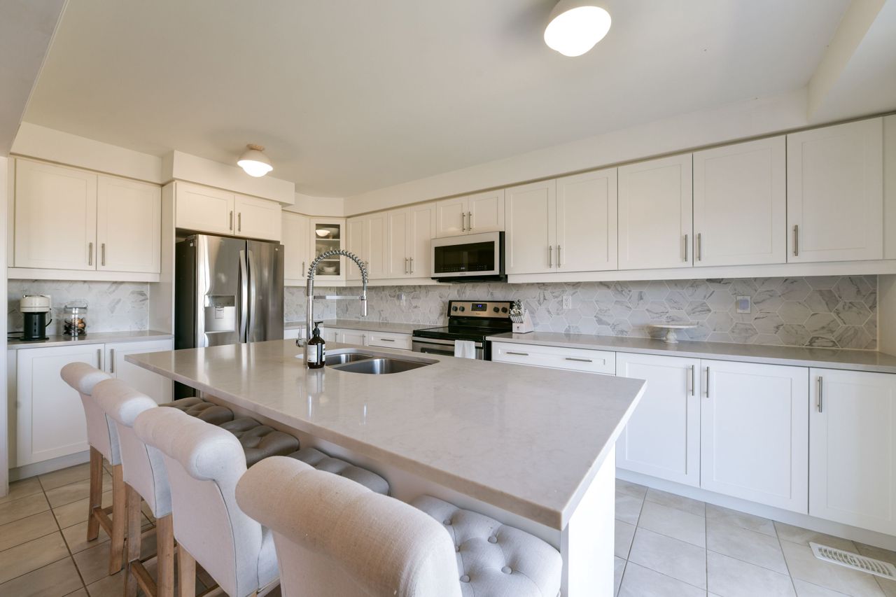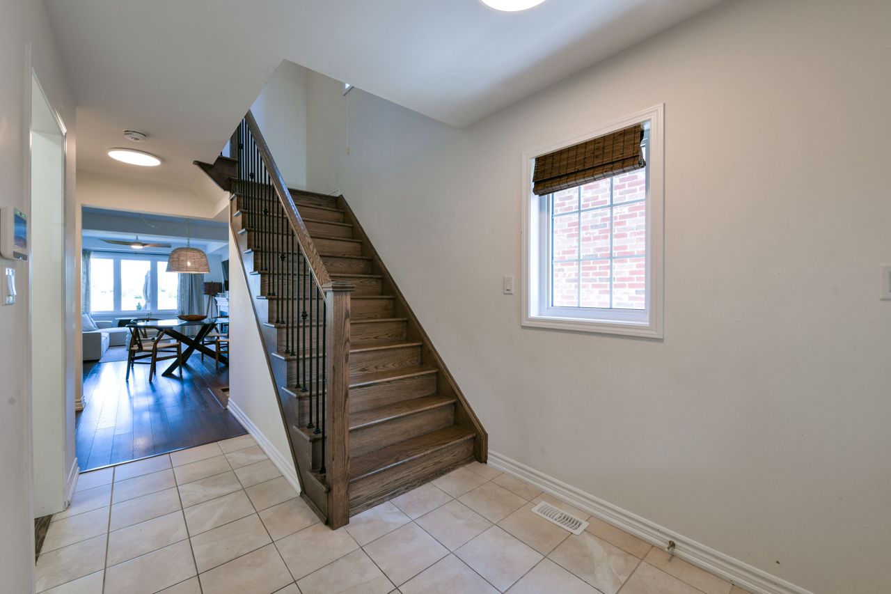 Hold onto your hearts, Miltonites! Feast your eyes on this chic end-unit townhome in the desirable Clarke Community. Spacious and private, like a semi-detached, but without the high price. Step inside to an elegant, neutral palette and modern design. The living and dining room is filled with natural light and features stunning hardwood floors. The kitchen is the heart of the home, with white cupboards, upgraded appliances, and a center island for breakfast. The cozy family room connects seamlessly, perfect for entertaining. Second-floor laundry adds convenience, and the primary room has an ensuite bathroom. Outside, enjoy a fenced backyard oasis with a 12x24 patio. Explore nature with nearby trails and parks, like Beaty Trail Park and Rattlesnake Conservation Area. Cool off at the Clarke Neighborhood Park South Splash pad. Discover modern living in this remarkable home. Enjoy year-round recreation in Milton's abundant natural offerings.Fridge, Stove, Dishwasher, Washer, Dryer, All Electrical Light Fixtures, Window Coverings, Electric fireplace.