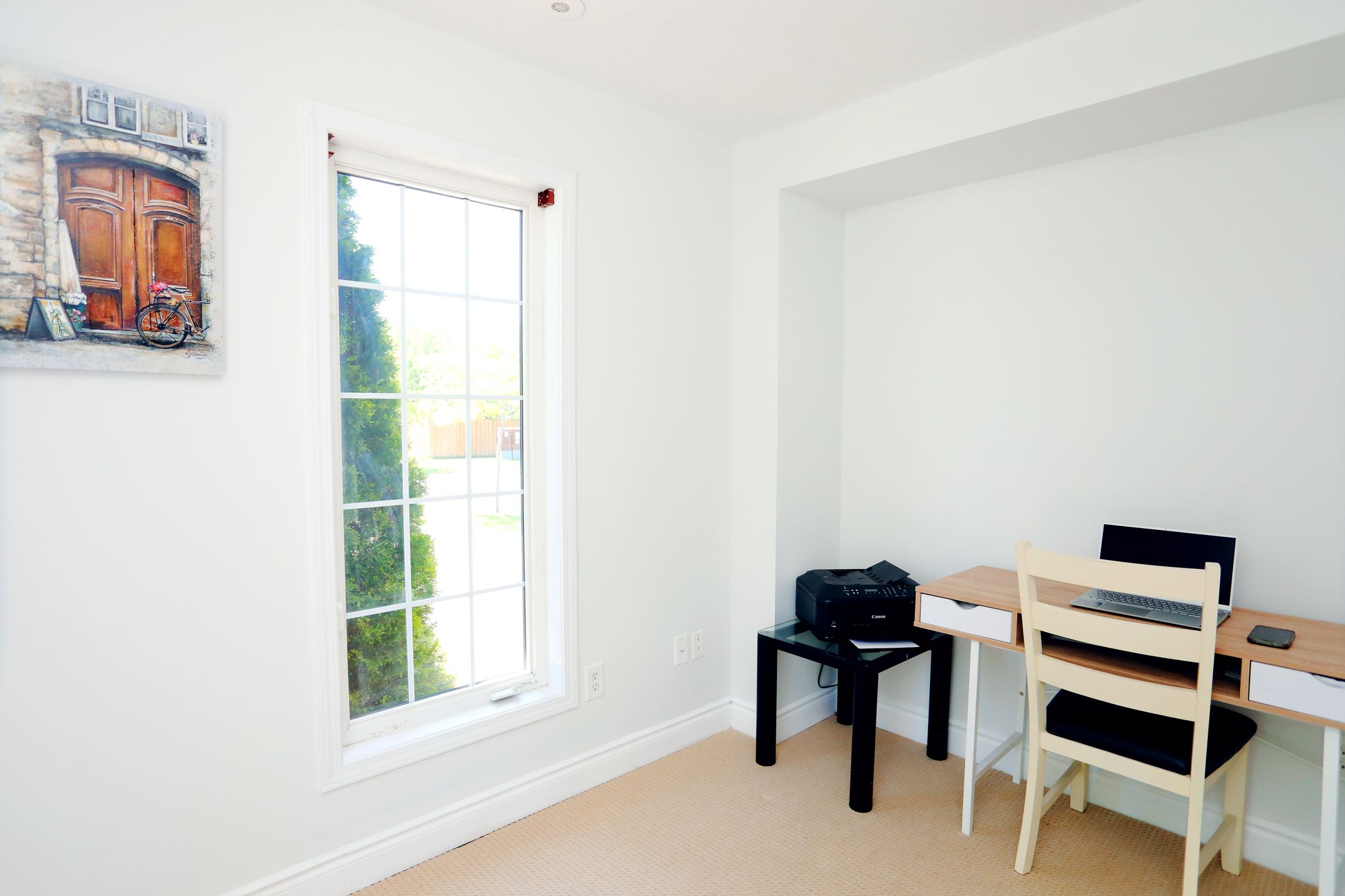 Welcome to this incredibly convenient and highly sought-after location in Milton. This lovely home is ideally situated just minutes away from schools, park, library, hospital, shopping center, & highways 401, 407, 403. Enjoy the benefits of a premium corner lot with plenty of windows, providing ample natural light and a bright atmosphere. Freshly painted, Featuring newly installed carpeting on the 3rd floor while 2nd floor has hardwood & brand new oak stairs on all levels. Upgraded 5.25" baseboards and newly installed elegant pot lights throughout the home. Rest easy, as $25,000 worth of renovations have recently been completed, ensuring the superior quality and peace of mind. Additionally, an extra room on main level with large windows offering flexibility to be used as den, home office, hobby room or guestroom. Separate dining and living areas Parking up to 3 cars, with space for 2 in driveway and one in garage. Bbq on balcony. Benefit from easy maintenance without any condo fee.All ELF, Brand New S.S Fridge, Stove, Dishwasher, Washer & Dryer