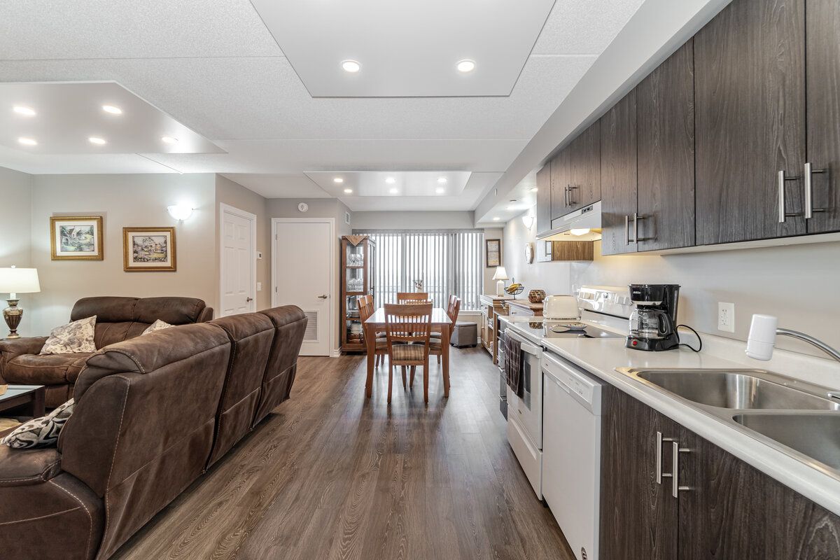 Elegant 2 Bed + Den 2 Bathrooms Open Concept With Northwest Views Of The Escarpment *1005 + 55* Sq Ft With An Abundance Of Natural Lights Throughout. Plank Quality Laminate Floors In Liv/Din/Den/Kitchen/Hallway. Quality Broadloom In Bedrooms. Two Full Bathrooms W/Beautiful Tiles & Fittings. Primary Bedroom Incld 4pc Ensuite And Walk-In Closet. Dark Cabinets In Kitchen W Ample Storage. Enjoy The Sunset From A Spacious Balcony. Upgraded Bathrooms, Custom Pot Lights. Easy Access To 401/407. Steps To Milton Go Station, Rec Center, Shopping Plaza, Restaurants, Minutes to Mall, Organic Farms, Golf Courses, Kelso, And Much More!Whirlpool Fridge, Stove, B/I Dishwasher, Stacked Washer & Dryer. Microwave, All Elf's, & Window Coverings. One Surface Parking Spot & One Locker. Common Areas: Party Room, Roof Top BBQ Terrace, Meeting Room, Guest Suite, Visitor's Parking.