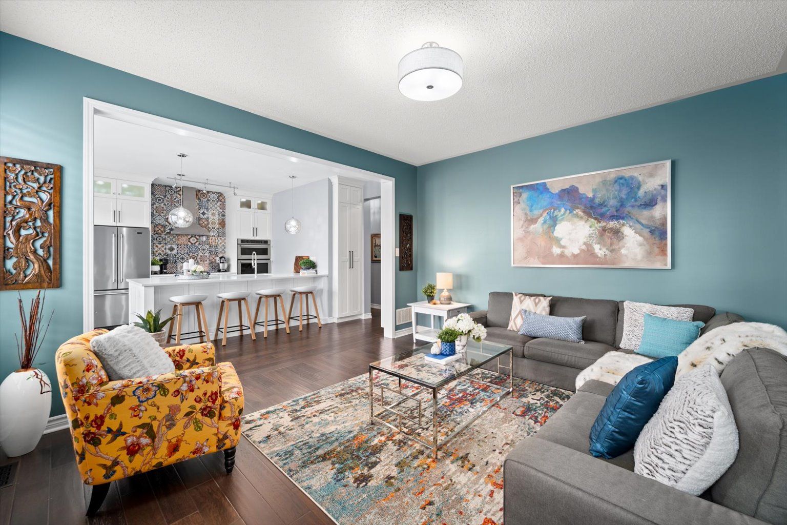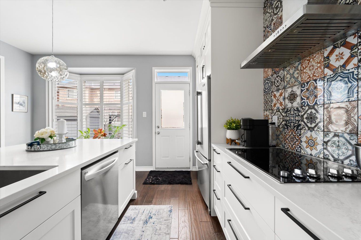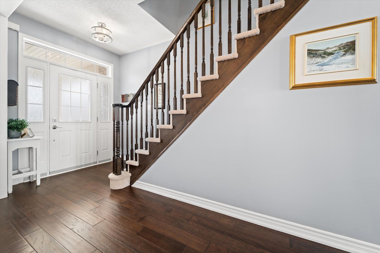 This stunning 4 bedroom energy-star detached home has everything you need to just move in and enjoy! The beautifully renovated kitchen features white cabinet facings, maple box cabinetry, stainless steel appliances, quartz countertops, extra storage, upgraded island and display cabinet lighting, custom backsplash and more! The kitchen opens onto the spacious family room with sculpted engineered hardwood floors, gas fireplace and large windows for a bright and comfortable family space. The living room and dining room feature the same sculpted flooring, high baseboards, coffered ceiling and even more light! Upstairs youll find 4 spacious bedrooms, all with engineered hardwood, great closet space and large windows. The primary features a walk-in closet and a large ensuite with soaker tub and separate shower. And the laundry room is upstairs for ultimate convenience! The beautifully finished basement features potlights, extra storage and a separate gym/office area. Welcome Home!Fully fenced yard, 3 parks within 2 minutes, splash pads, 6 minutes to Milton GO, groceries, restaurants, shopping nearby. Close to schools, conservation areas, trails & only 27 minutes to Pearson Airport, this location has everything!