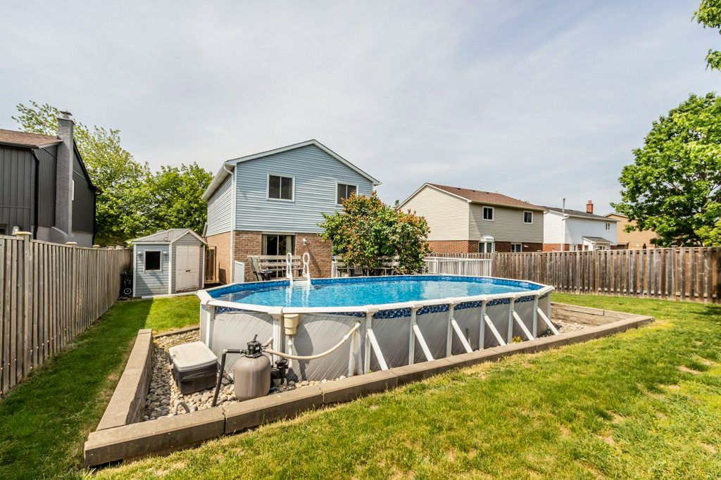 Endless summer fun enjoyed in the above ground pool and private back yard.