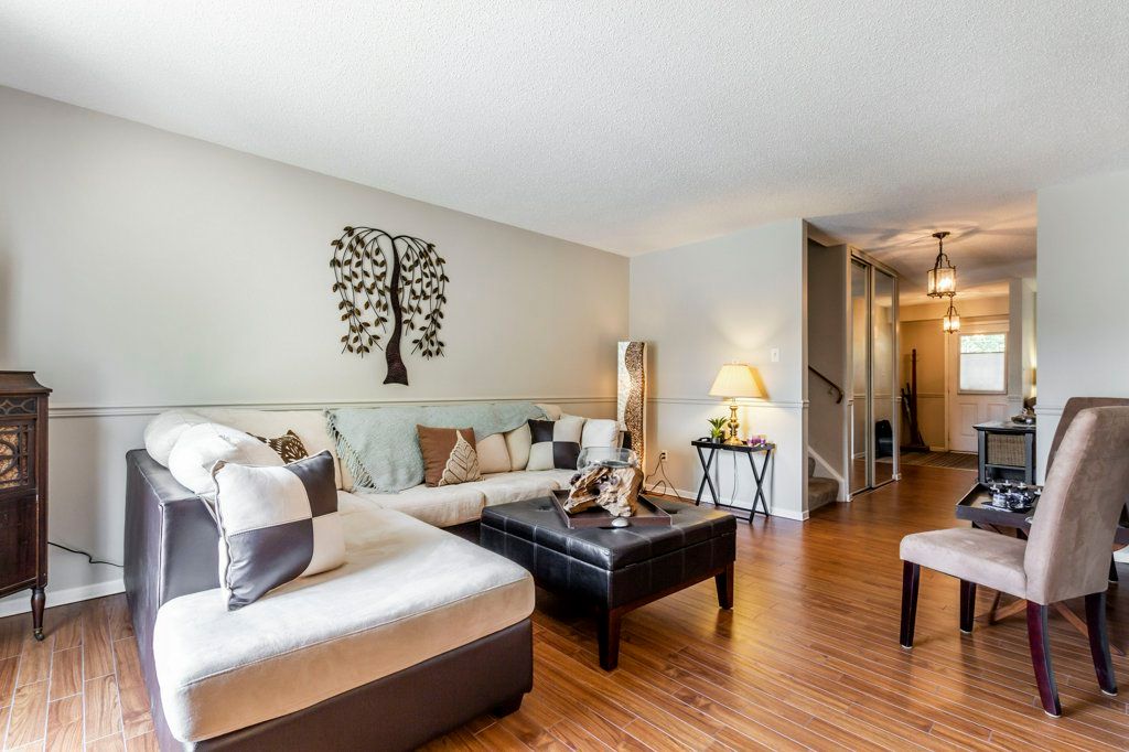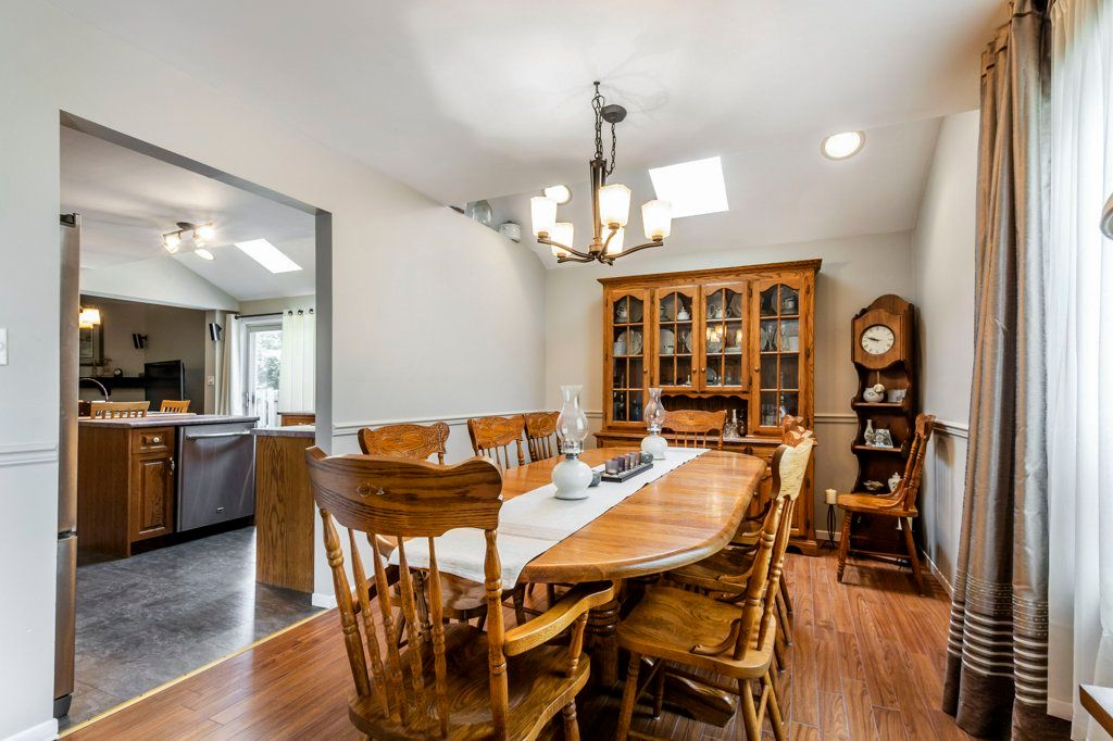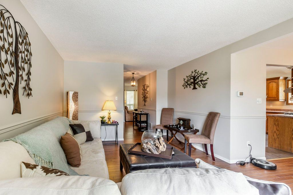 Spacious living and dining rooms with walkout to rear deck overlooking the pool.