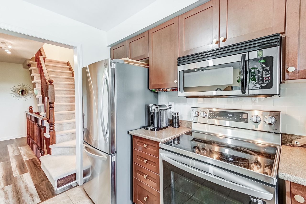 This FREEHOLD 3 storey townhouse is located in the desirable Harrison neighbourhood. A tastefully decorated modern space with practical functionality. An inviting foyer plus inside entry to a single car garage on first level along with a laundry room offering ample storage. A modern kitchen with breakfast bar & new stainless steel appliances (2022) are on this open concept 2nd level. Also on this level is a powder room and your own private balcony with a Toja Grid Pergola, a perfect spot to sit and relax! The 3rd level has 2 good sized bedrooms with lots of good closet space and a stylish 4pc bathroom. If you are looking for a friendly community close to hiking & biking trails, excellent schools, parks, shopping, close to multiple major highways well look no further. Everything you need within a short distance of your doorstep. You won't be disappointed!!!