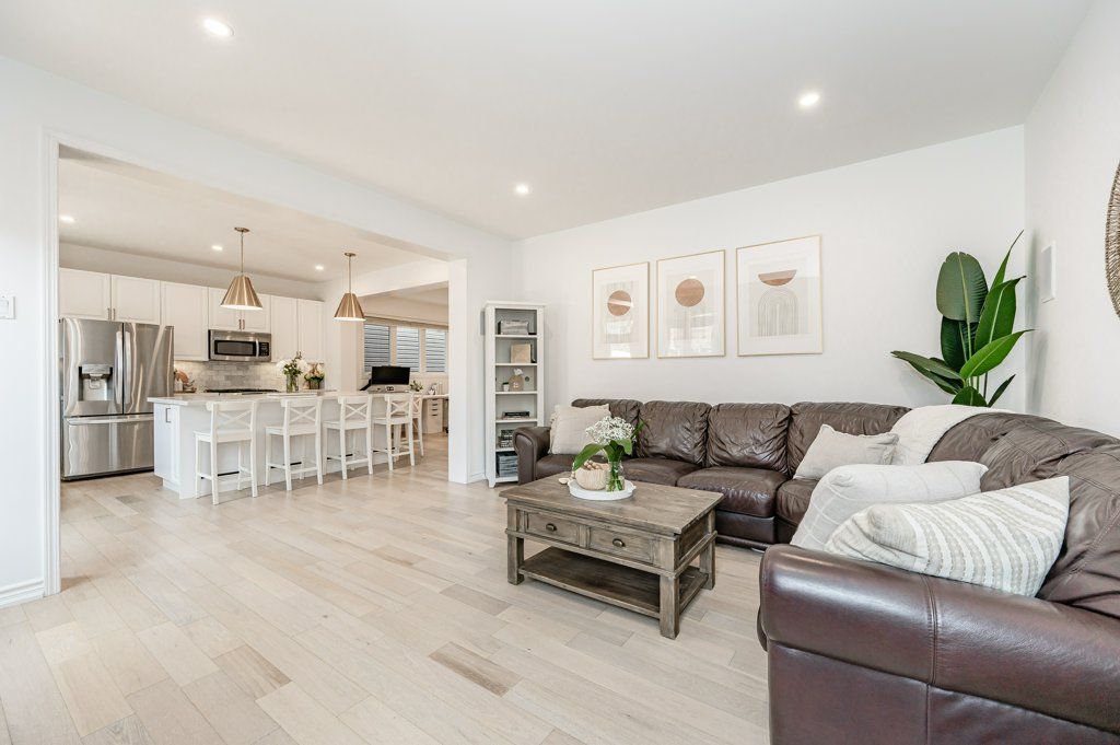 Welcome Home!This beautifully updated 4 bed, 2+1bath Home in the sought after family friendly Harrison neighbourhood of Milton. Professionally landscaped front yard with stone walkway, covered porch and manicured garden. The Open Concept main level boasts white oak engineered hardwood flooring, 9' ceilings , LED Pot-lighting, updated kitchen with white cabinetry, oversized island, SS appliances, quartz countertops and designer backsplash. The Kitchen opens to a generous family room with cozy gas fireplace, shiplap feature wall and built in surround speakers and the formal dining room which also has an impressive feature wall and hideaway shelving. From your kitchen step out to your backyard oasis thats fully landscaped with an interlock patio and built in stone gas fire-pit(2014). The second level features a spacious primary retreat with a spa-like 5pc ensuite and walk in closet , three additional spacious bedrooms, 4 pc main bathroom and a convenient second floor laundry.Fully finished basement 2022 with LED pot-lighting, premium laminate floor and rough-in for bathroom. Other updates include NEW Hot Water Tank 2020, NEW A/C 2020, Basement 2022, Quartz countertops in Kitchen and Bathrooms 2018.