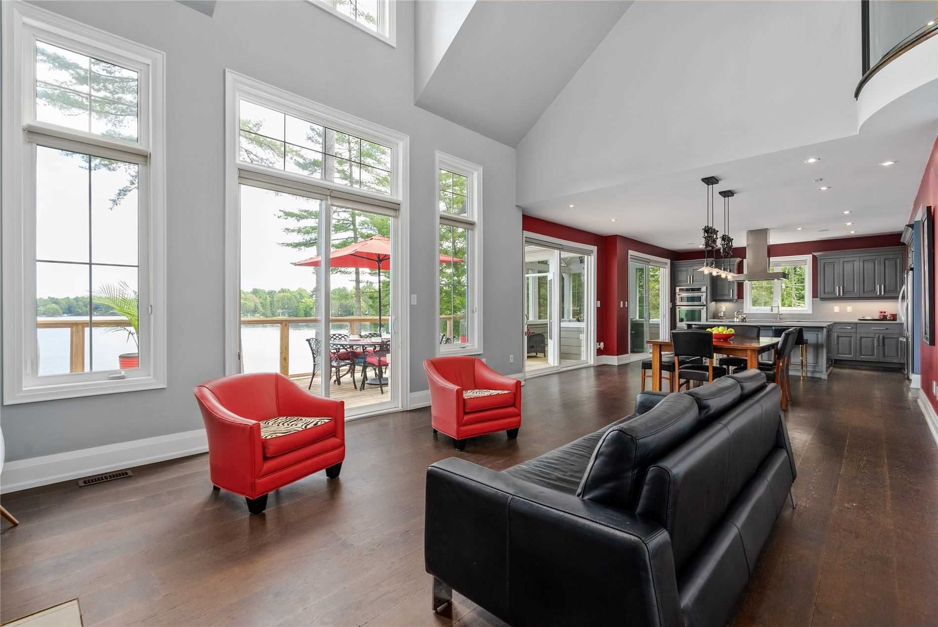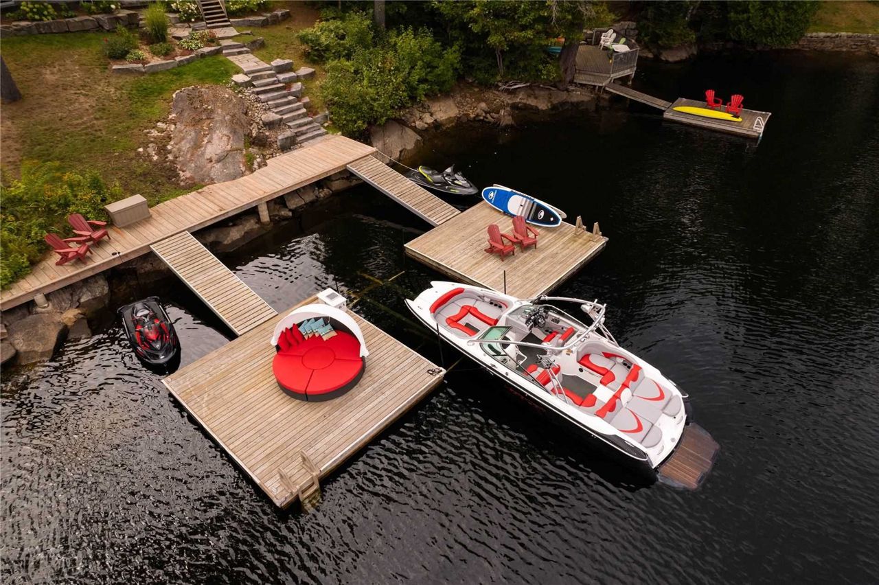 Modern Sophistication Set Among Towering White Pines Invites You To Optimize Every Moment. Mist-Covered Sunrises Greet You From Your 200' Of Frontage On Desirable Kushog Lake. The Lake Boasts Almost 10Km Of Navigable Water Top To Bottom And Connects To St. Nora's Lake For Even More Fun And Exploration. Sunny Days Invite You To Delight In Water Activities, Entertain On Your Expansive Dock System, Or Savour The Lush Serenity Of Lakeside Relaxation Against A Backdrop Of Gorgeous Canadian Shield. A Spectacular Chef's Kitchen, Vaulted Ceilings, Heated Floors Throughout, Four Baths, And Six Generous Bedrooms Complement This 4500 Sf Of Custom Designed Space. Grand Windows Allow Natural Light To Spill Into Every Space, Gracing The Indoors With That Special Outdoor Cottage Appeal. Your Priceless Memories Are Waiting To Be Made At 1043 Fortune's Trail.