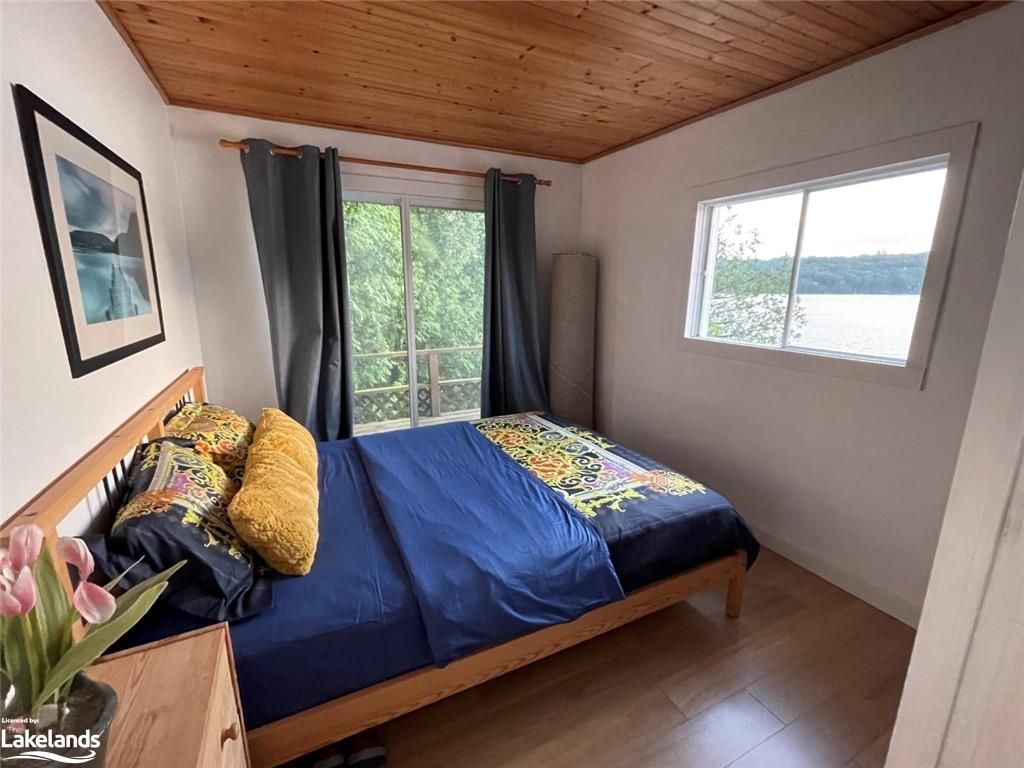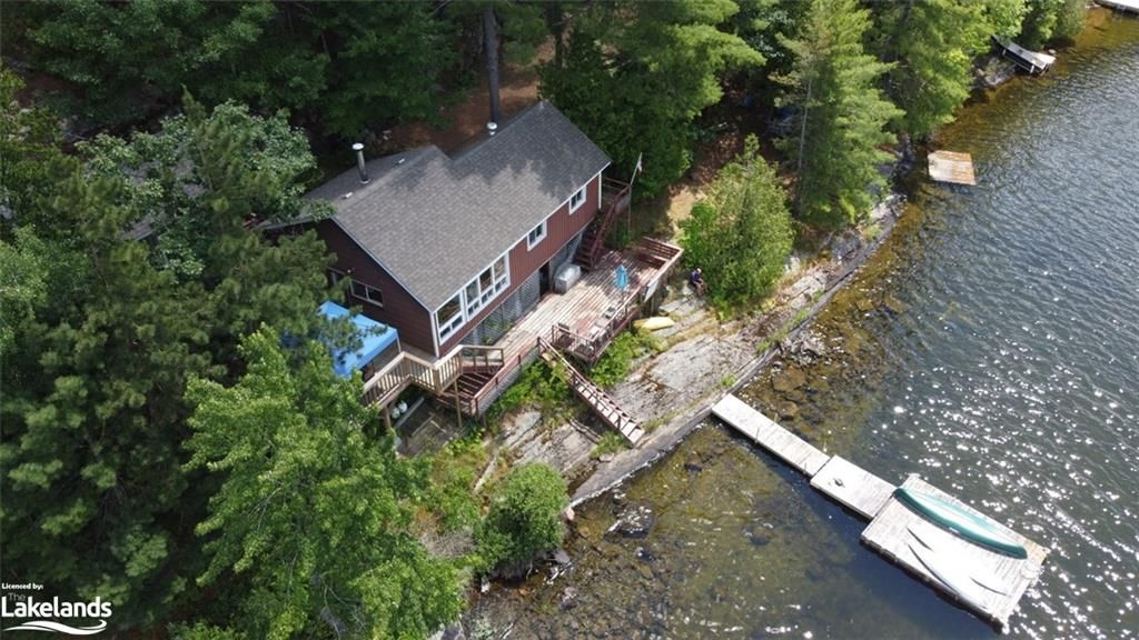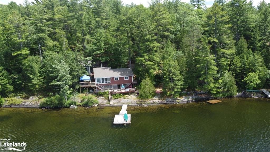 Discover your dream retreat on a stunning 1-acre double lot with 202 ft of frontage on the pristine, crystal-clear waters of Gull Lake. Surrounded by majestic trees, this property offers a breathtaking west-facing view, providing picturesque sunsets and a serene atmosphere perfect for creating lasting memories. Conveniently located just 2 hours from the GTA, this tranquil oasis ensures easy, year-round access, while being only a short drive from the charming Minden Village with its wide array of amenities. Ideal for future development, the property offers a rare grandfathered building location right at the water’s edge, delivering unmatched panoramic views. The existing open-concept 2-bedroom cottage is bright and airy, featuring cathedral wood ceilings, large picture windows, and an expansive deck and dock, and brand new 4 bedroom 20 unit septic system strategically sized and located to accommodate future development, inviting you to fully embrace lakeside living. For added guest accommodation, a charming 14' X 12' bunkie with a bedroom, loft, 3 pc bathroom and composting toilet ensures comfort and privacy. Offered turnkey and ready to enjoy, this slice of paradise comes with the shore road allowance already purchased, ensuring maximum privacy. Whether you choose to savor the peaceful surroundings or develop your vision, this lakeside haven offers endless potential and a lifetime of cherished memories. Don't miss this rare opportunity to own a piece of Gull Lake's prestigious waterfront!