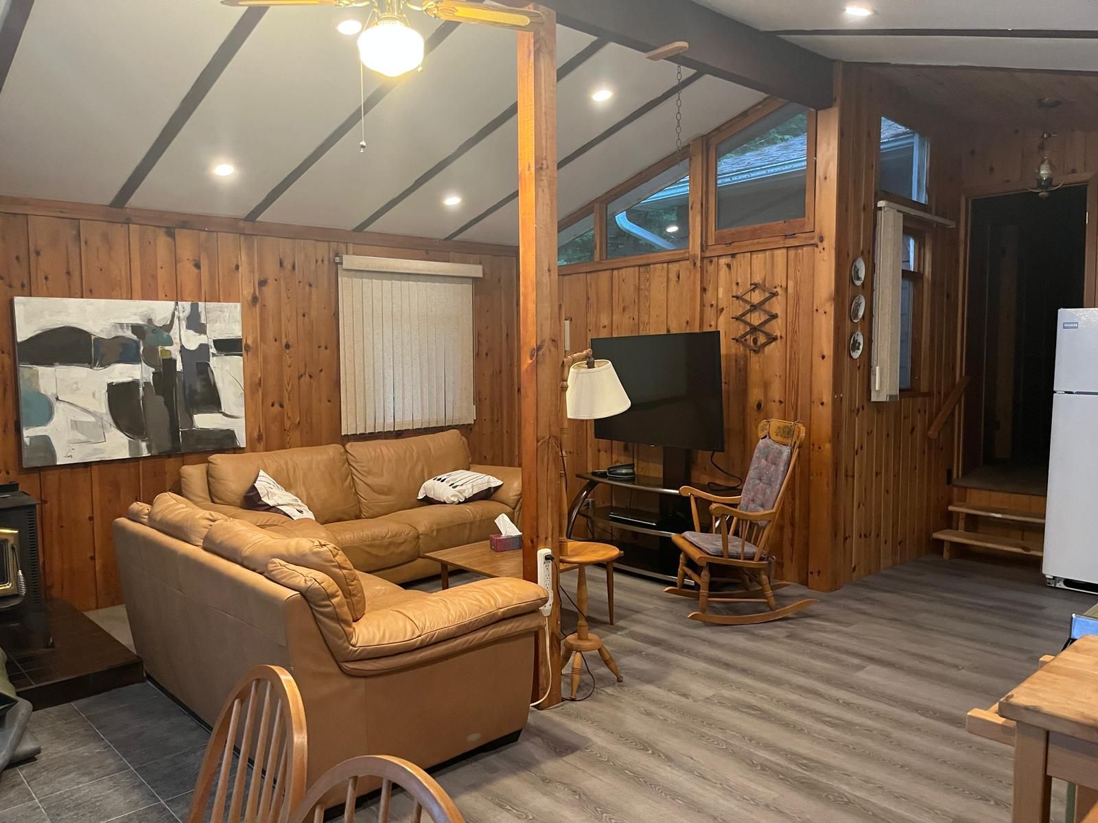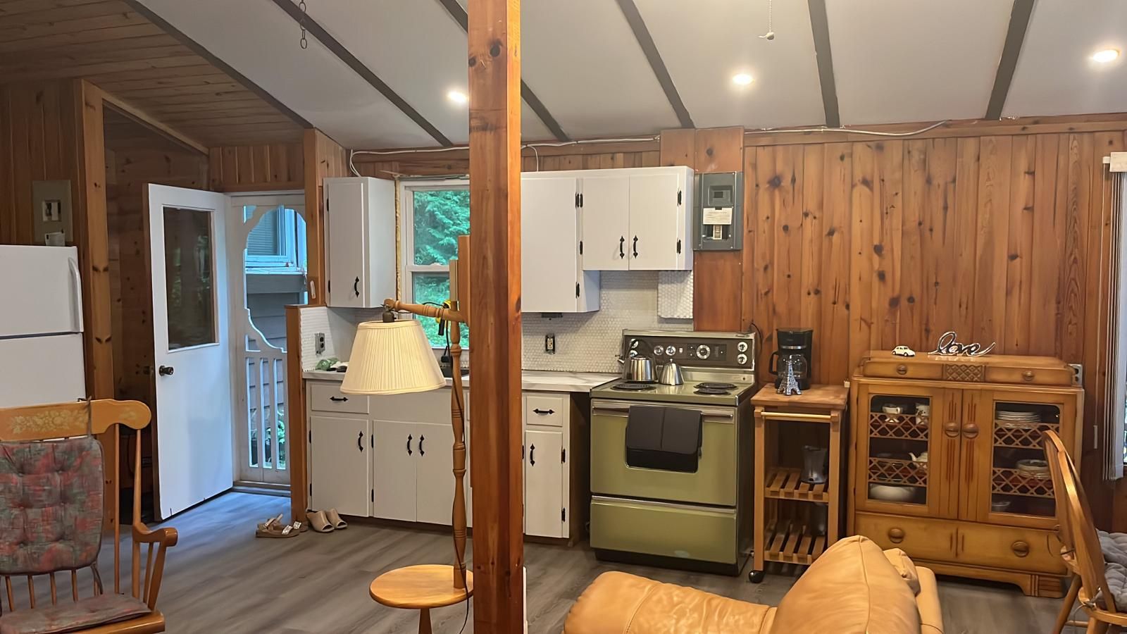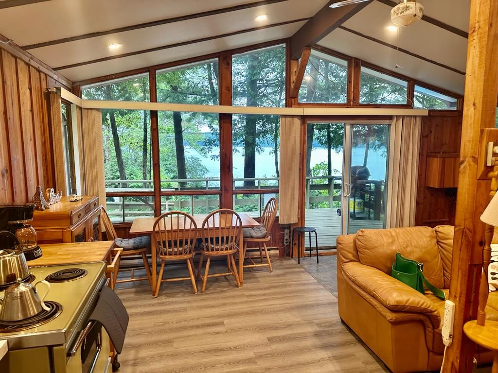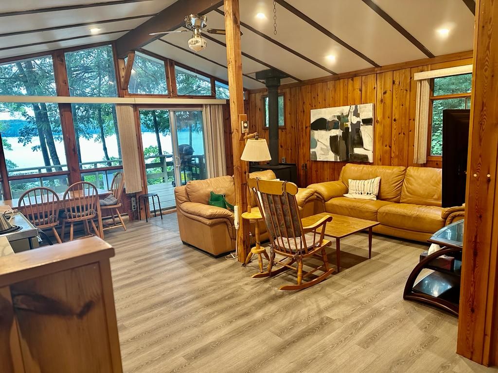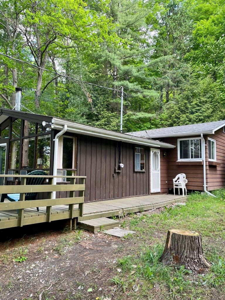 Nestled amidst the tranquil beauty of nature, Water, enchanting cottage showcases charm & idyllic surroundings. rests on the shores of a serene bay spans 115 ft X 382.84 ft, providing ample space for both relaxation & potential expansion. offering a retreat from the hustle and bustle of everyday life. harmonious blend of classic cottage elements & contemporary amenities. Recent updates include a brand-new water heater, a fresh toilet, a modern sink and faucet, new vinyl flooring. newly installed ceiling w insulation & pot lights. 3 inviting br promises a cozy stay for friends & family. Open Concept Living Area W Fireplace & Wood Paneled Walls. Kit w vintage charm. Dining area With sliding door leading to expansive deck, overlooking the bay, invites you to take in the breathtaking scenery. The property backs onto pristine woodlands, inviting you to hike and explore the untouched natural beauty. 3 Season Cottage- Summer, Spring & Fall. Spring Water.Minden township has a range of facilities 5 mins away including Tim Horton’s, banks, Canadian Tire, gas stations, beer store, LCBO, tranquil Gull Lake becomes your canvas for summer fun