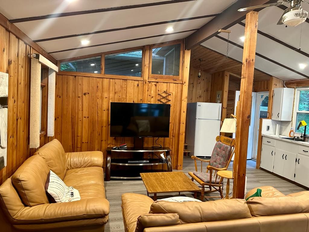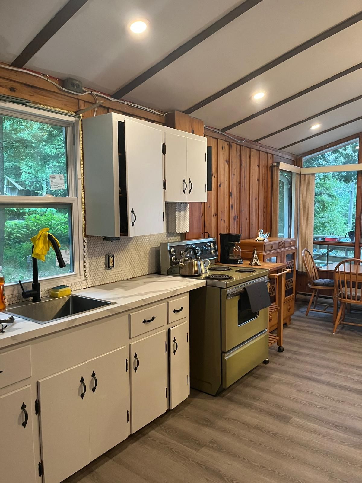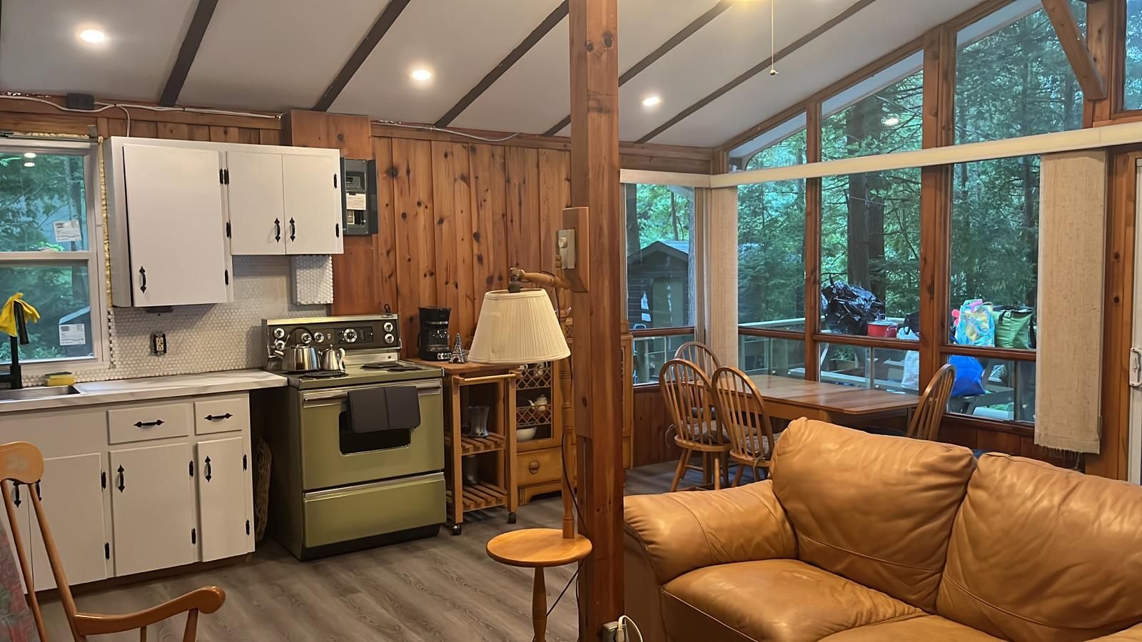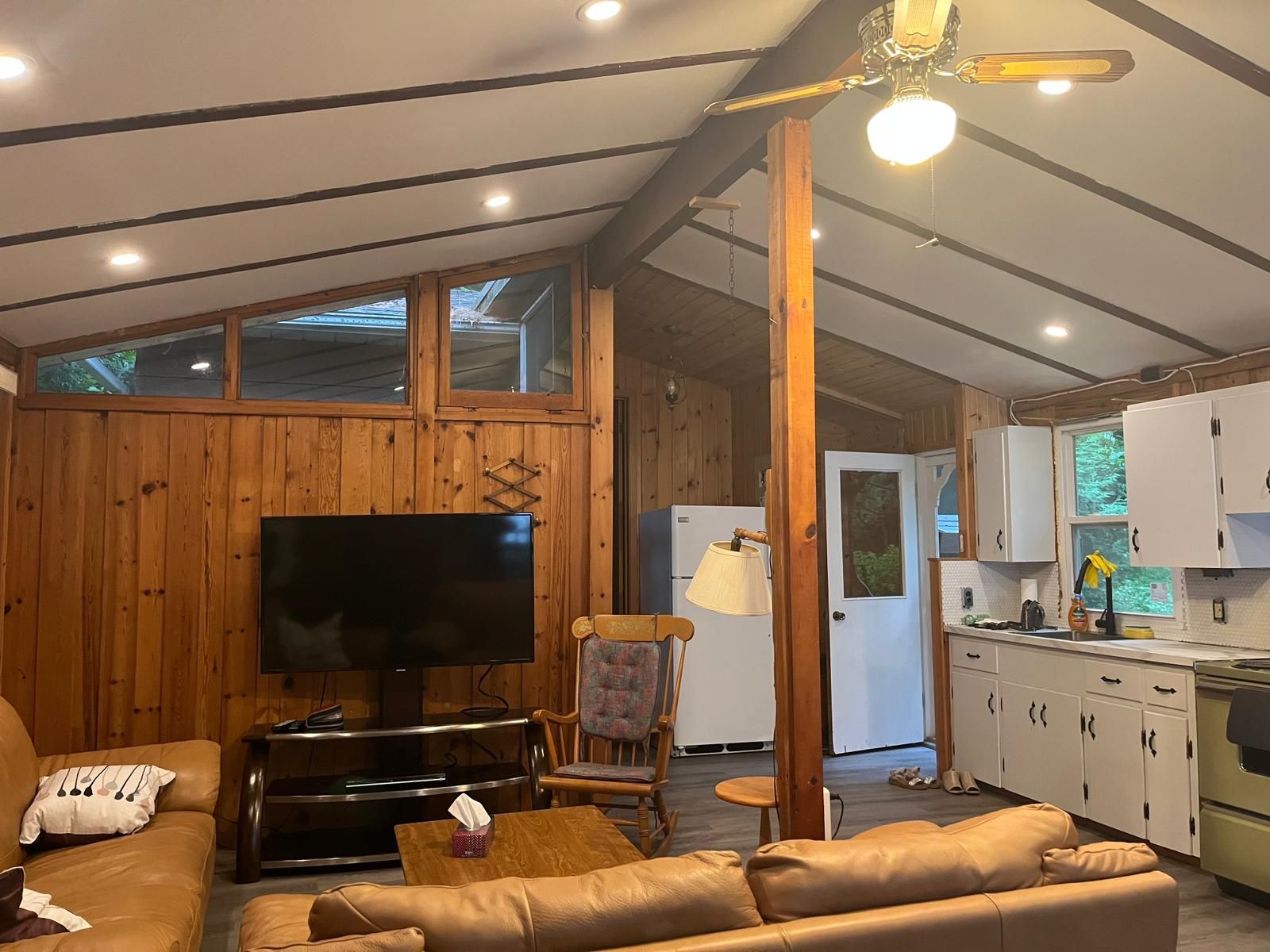 Nestled amidst the tranquil beauty of nature, Water, enchanting cottage showcases charm & idyllic surroundings. rests on the shores of a serene bay spans 115 ft X 382.84 ft, providing ample space for both relaxation & potential expansion. offering a retreat from the hustle and bustle of everyday life. harmonious blend of classic cottage elements & contemporary amenities. Recent updates include a brand-new water heater, a fresh toilet, a modern sink and faucet, new vinyl flooring. newly installed ceiling w insulation & pot lights. 3 inviting br promises a cozy stay for friends & family. Open Concept Living Area W Fireplace & Wood Paneled Walls. Kit w vintage charm. Dining area With sliding door leading to expansive deck, overlooking the bay, invites you to take in the breathtaking scenery. The property backs onto pristine woodlands, inviting you to hike and explore the untouched natural beauty. 3 Season Cottage- Summer, Spring & Fall. Spring Water.Minden township has a range of facilities 5 mins away including Tim Horton’s, banks, Canadian Tire, gas stations, beer store, LCBO, tranquil Gull Lake becomes your canvas for summer fun