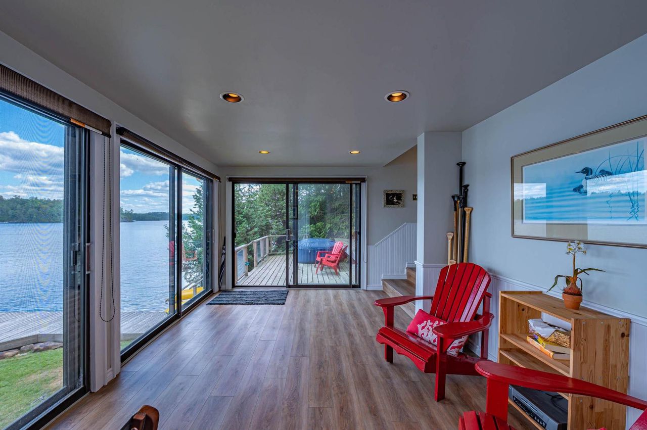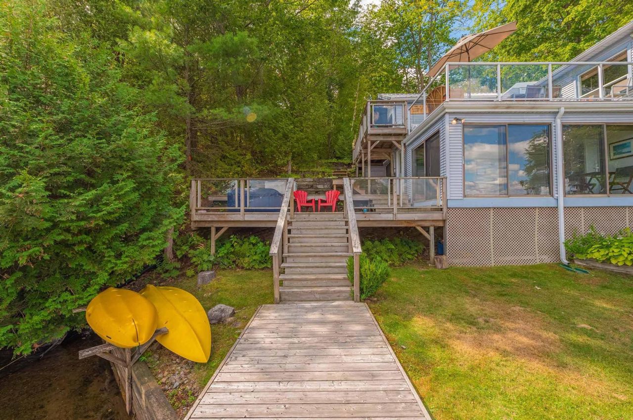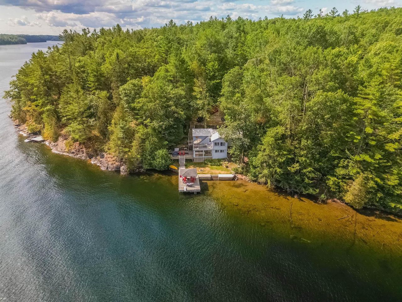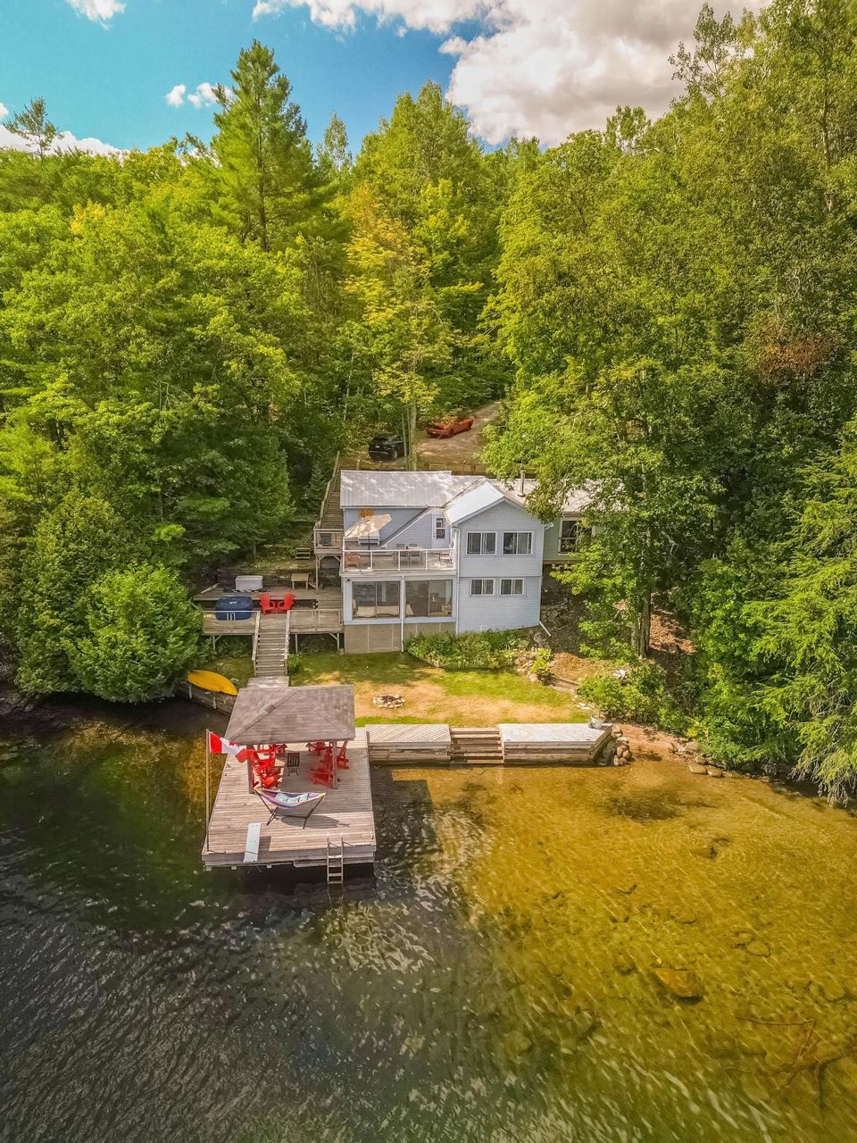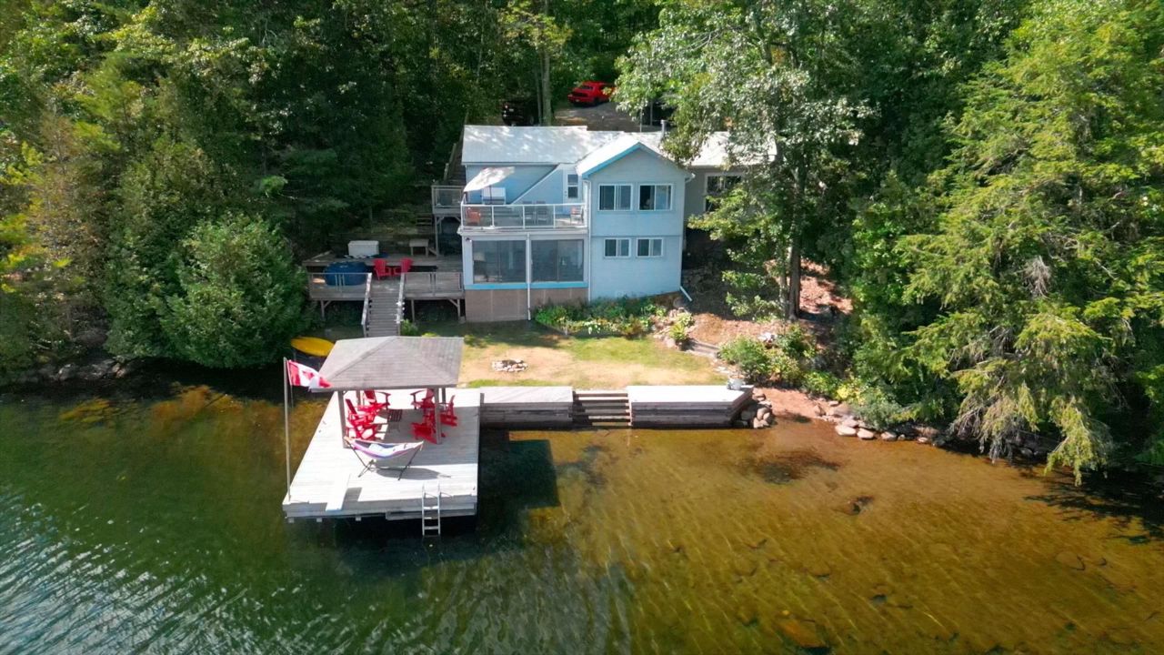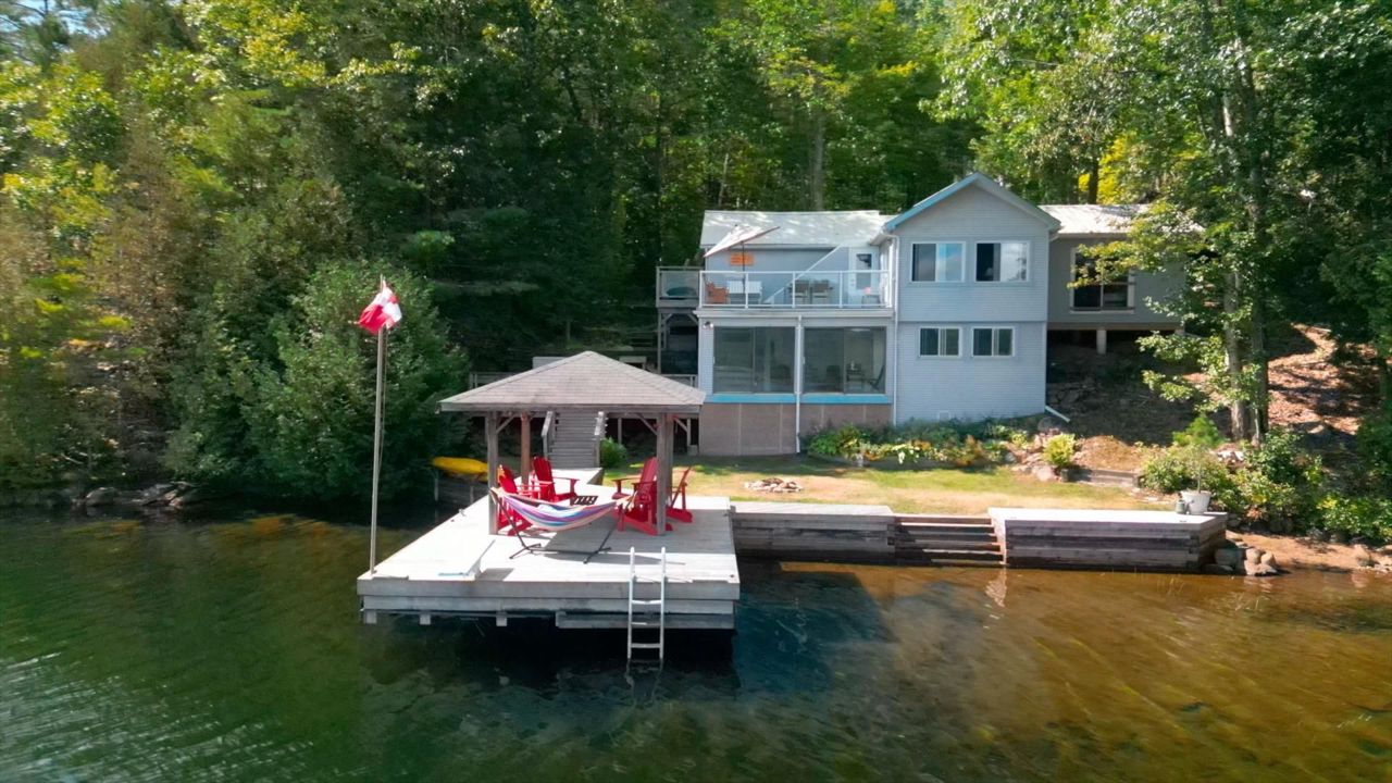 Gull Lake Three Bedroom Cottage offers awesome views across Deep Bay, Turn right and look across the tip of Sugar Island! This cottage has been enjoyed for many years with multiple upgrades along the way. Many will spend their day at the dock! A permanent Gazebo allows for shade seating with lighting and the balance of the dock is open. Dive off the end of the dock into 17' deep clear water or wander into the lake from the sand entry off to the left of the dock. Level playing space with room for games and a firepit. There are two decks for entertaining and enjoying the outdoors. The BBQ deck and Outdoor Dining is off the main level and the Hot Tub is on the lever deck. Lots of toy storage here as well. The Cottage has Year Round heat with Elec wall heaters and Woodstove. Vaulted Ceilings with a great lake view, Updated Kitchen is modern and offers space for help! Two Large Bedrooms upstairs. The Primary Bedroom has a three piece ensuite and Sliding Doors for a great lake view. The Lower Level offers a spacious family room with great lake views and a walk out to a Hot Tub deck. Third Bedroom completes the package. The steps up to the parking area behind the cottage is terraced with natural gardens. Heat Line has not been test with these owners. Some insulation in the floor joists needed for year round enjoyment. Other improvements: Primary Bedroom with 3 pc ensuite, Dock with Bubbler in winter No Dock Removal!, Mostly Furnished, 2025 New Steel Roof and Eavestrough on lake side, Gutter Guards. Road is currently seasonal use. Book an appointment to visit this property. Google Maps does not recognize Grierson Road. This is three roads south of Deep Bay on Gull Lake or one road north of Shaeffers Road off Deep Bay Road.