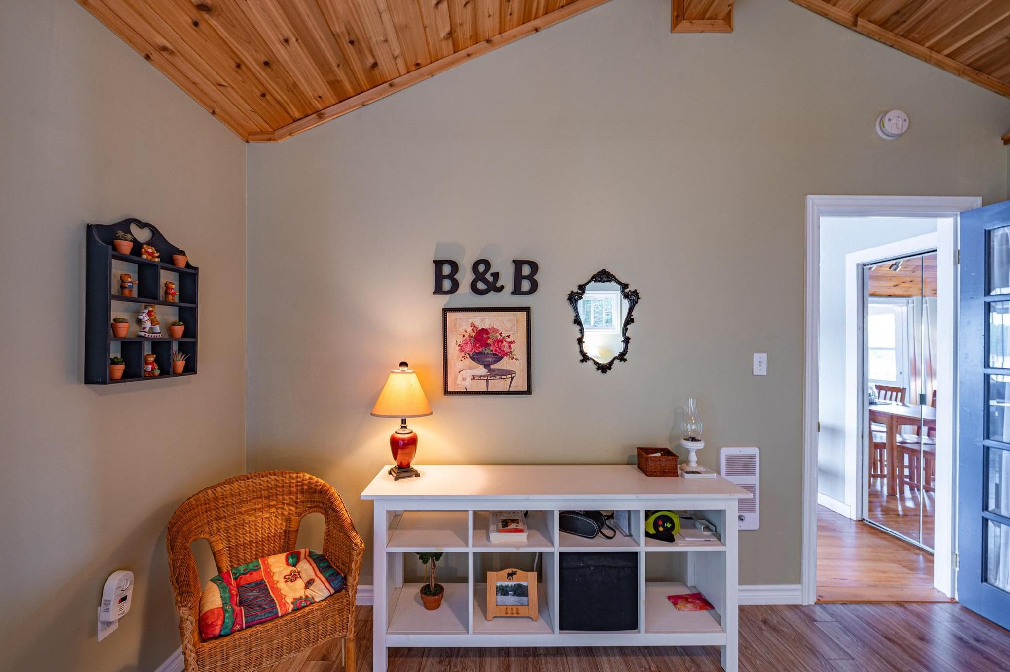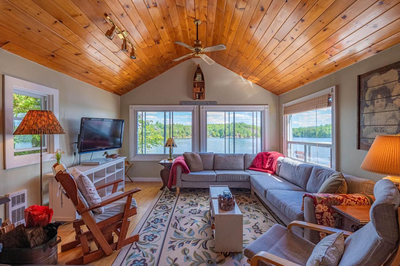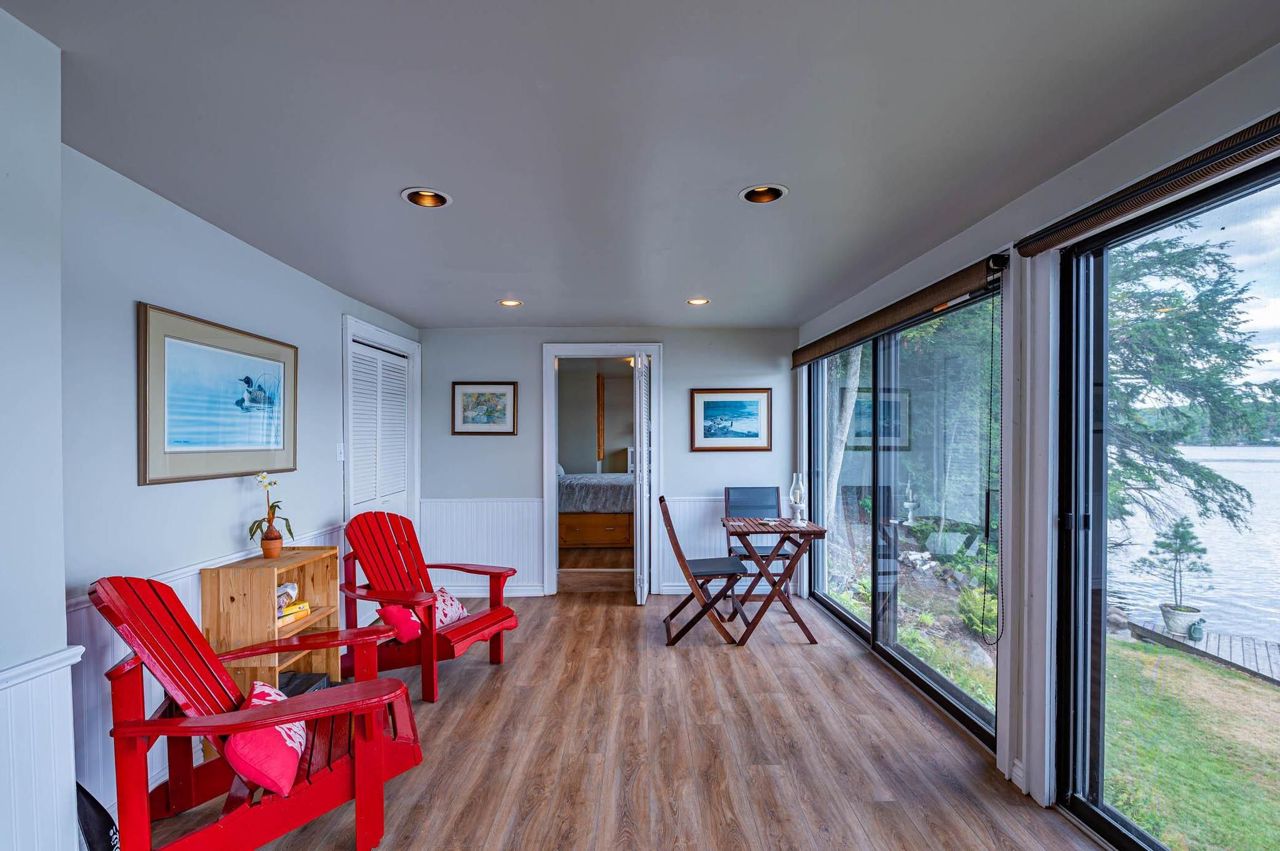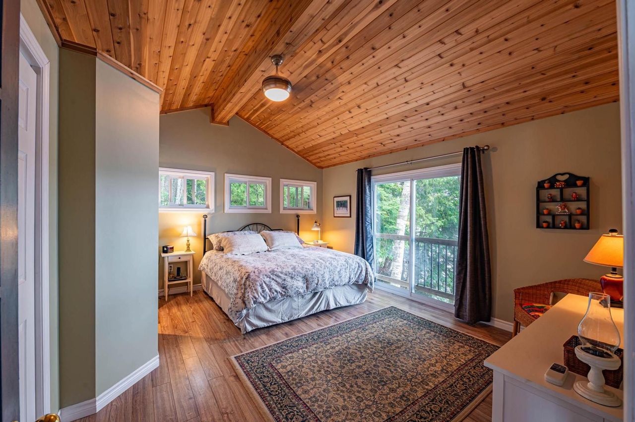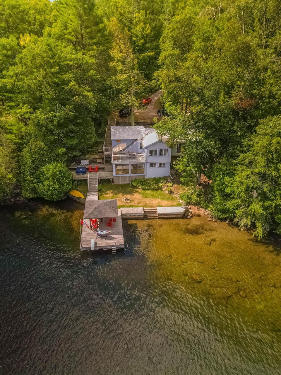 Gull Lake Three Bedroom Cottage offers awesome views across Deep Bay, Turn right and look across the tip of Sugar Island! This cottage has been enjoyed for many years with multiple upgrades along the way. Many will spend their day at the dock! A permanent Gazebo allows for shade seating with lighting and the balance of the dock is open. Dive off the end of the dock into 17' deep clear water or wander into the lake from the sand entry off to the left of the dock. Level playing space with room for games and a firepit. There are two decks for entertaining and enjoying the outdoors. The BBQ deck and Outdoor Dining is off the main level and the Hot Tub is on the lever deck. Lots of toy storage here as well. The Cottage has Year Round heat with Elec wall heaters and Woodstove. Vaulted Ceilings with a great lake view, Updated Kitchen is modern and offers space for help! Two Large Bedrooms upstairs. The Primary Bedroom has a three piece ensuite and Sliding Doors for a great lake view. The Lower Level offers a spacious family room with great lake views and a walk out to a Hot Tub deck. Third Bedroom completes the package. The steps up to the parking area behind the cottage is terraced with natural gardens. Heat Line has not been test with these owners. Some insulation in the floor joists needed for year round enjoyment. Other improvements: Primary Bedroom with 3 pc ensuite, Dock with Bubbler in winter No Dock Removal!, Mostly Furnished, 2025 New Steel Roof and Eavestrough on lake side, Gutter Guards. Road is currently seasonal use. Book an appointment to visit this property. Google Maps does not recognize Grierson Road. This is three roads south of Deep Bay on Gull Lake or one road north of Shaeffers Road off Deep Bay Road.