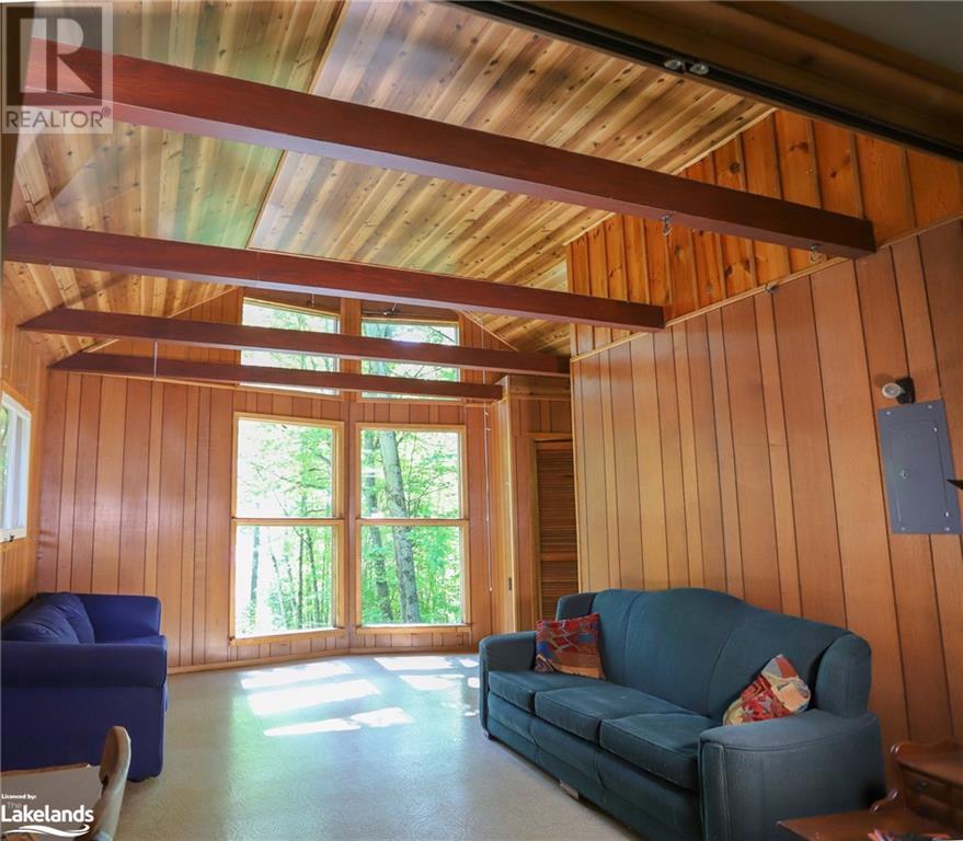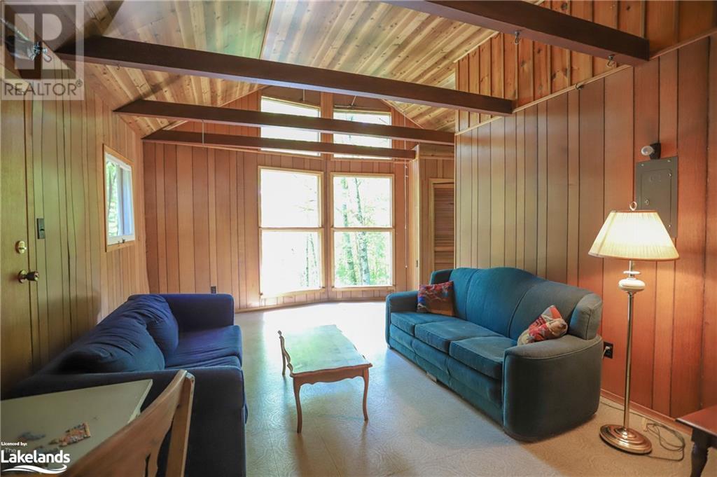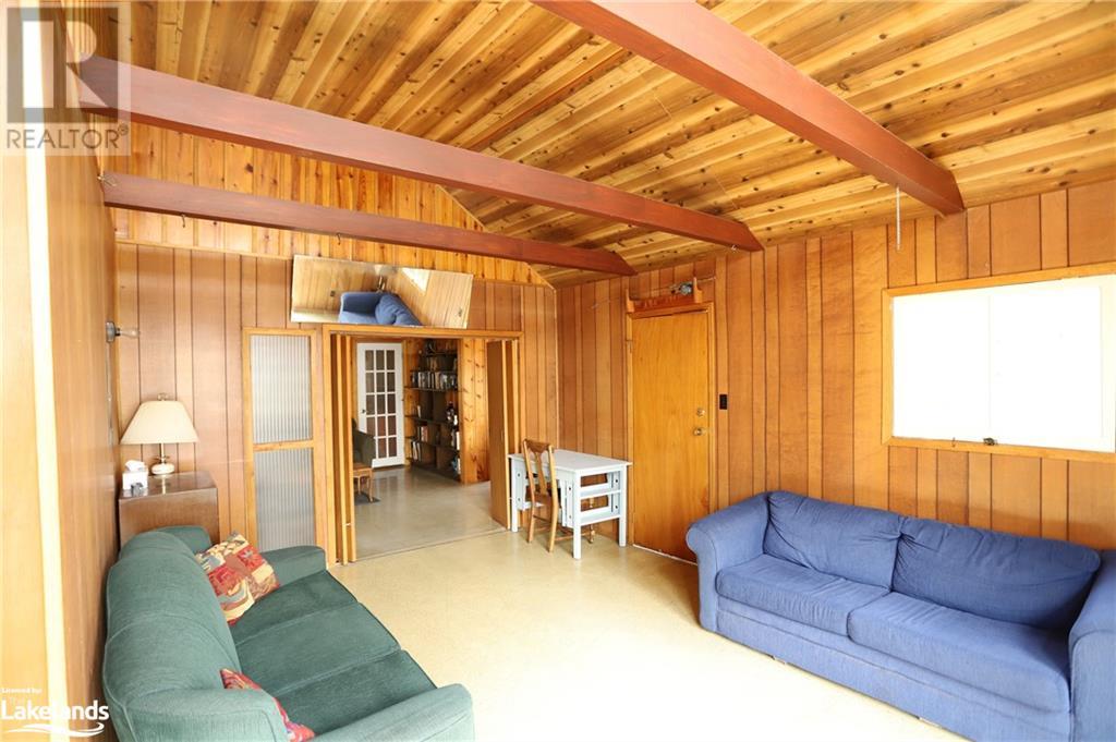 Get ready to enjoy cottage life on a 1 acre large lot with long lake views, deep clear swimming, premium boating, and a cute lakeside bunkhouse. Offered for the first time since pioneering days, this seasonal cottage blends within the large granite outcropping for natural privacy. You'll find generous space for outdoor games, dining, parking, and storage. Inside, you'll find the great room with 11ft ceilings and tall windows to keep you connected to nature, or cozy up in the living room with a book or games while a woodstove warms you in the spring and fall. A gentle slope takes you to Canning Lake with some of the longest uninterrupted views available. Savour your morning coffee at either lake-side seating area, take a swim with the granite entry to the lake, or dive deep from the dock into 25ft+ depths. Dry off in the sun or inside the bunkie at the water's edge with updated plumbing, electrics, and space to relax. Connected to Kashagawigamog, Soyers, Grass, & Head Lakes, Haliburton's unbeatable Five Lake chain offers ~60km of boating, 2 marinas, public docking in Haliburton village, restaurants & lodges. Only 12 minutes away from Minden and Highway 35, makes for easy shopping and a convenient commute to your peaceful retreat. Ready to enjoy as a turnkey offering. (id:22211)